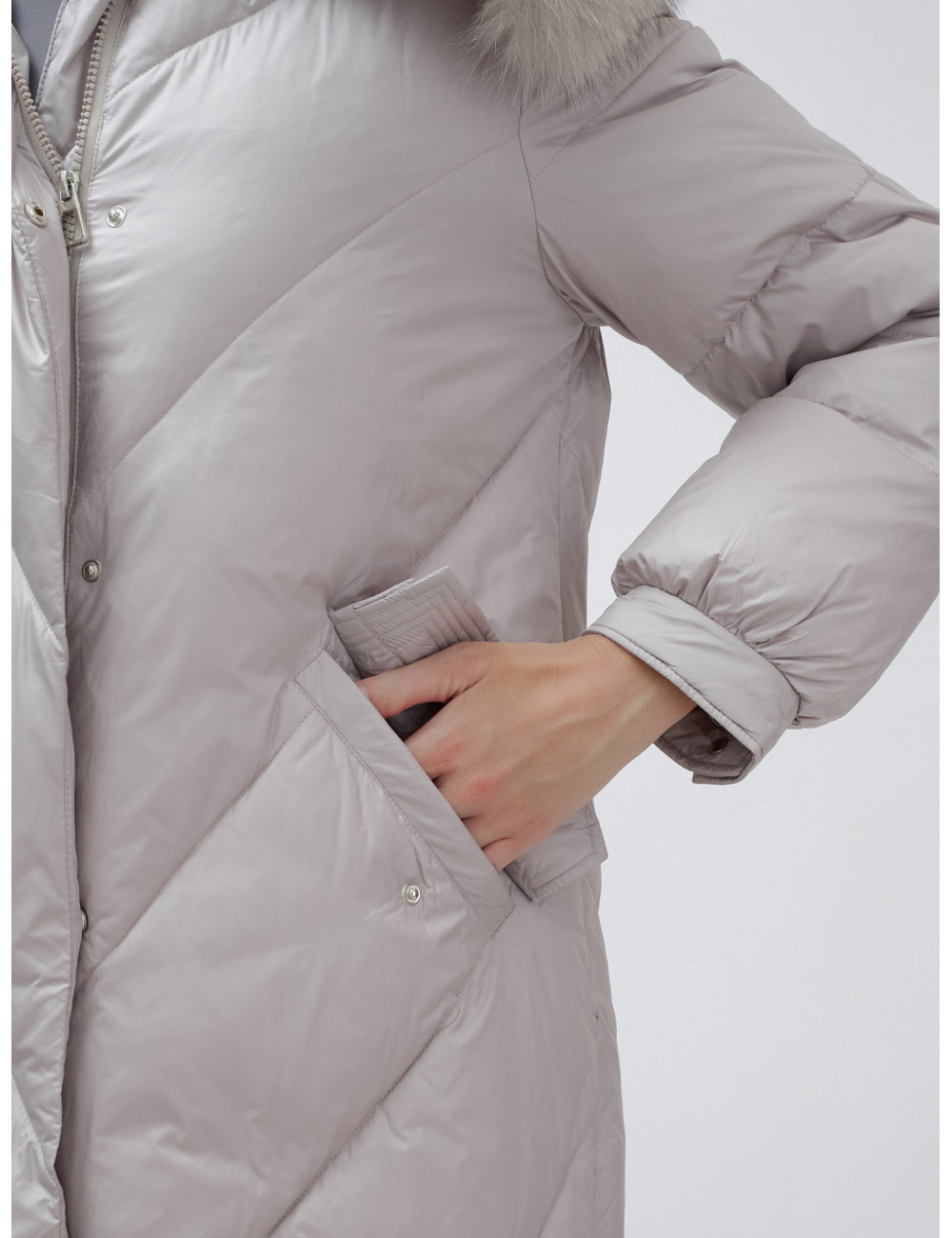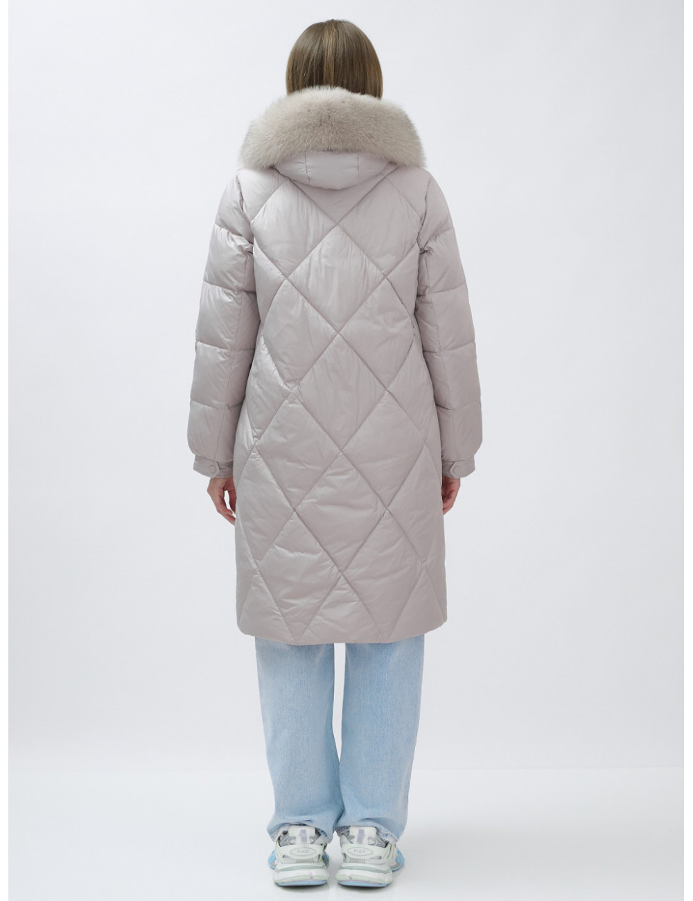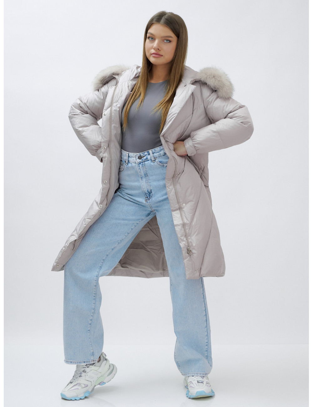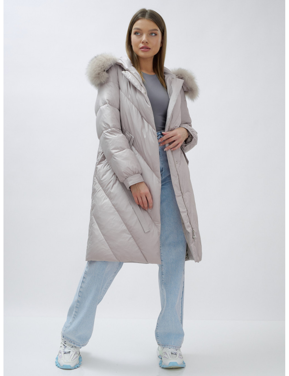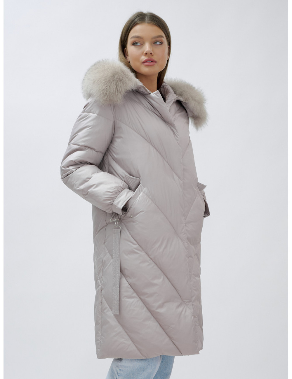 Купить за 26489 ₽ в Москве Пуховик-пальто женское зимнее с мехом песца, бежевый, люкс класса Женское зимнее пуховик-пальто с натуральным мехом песца