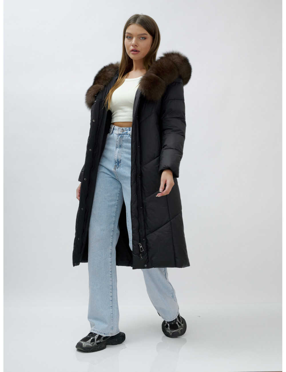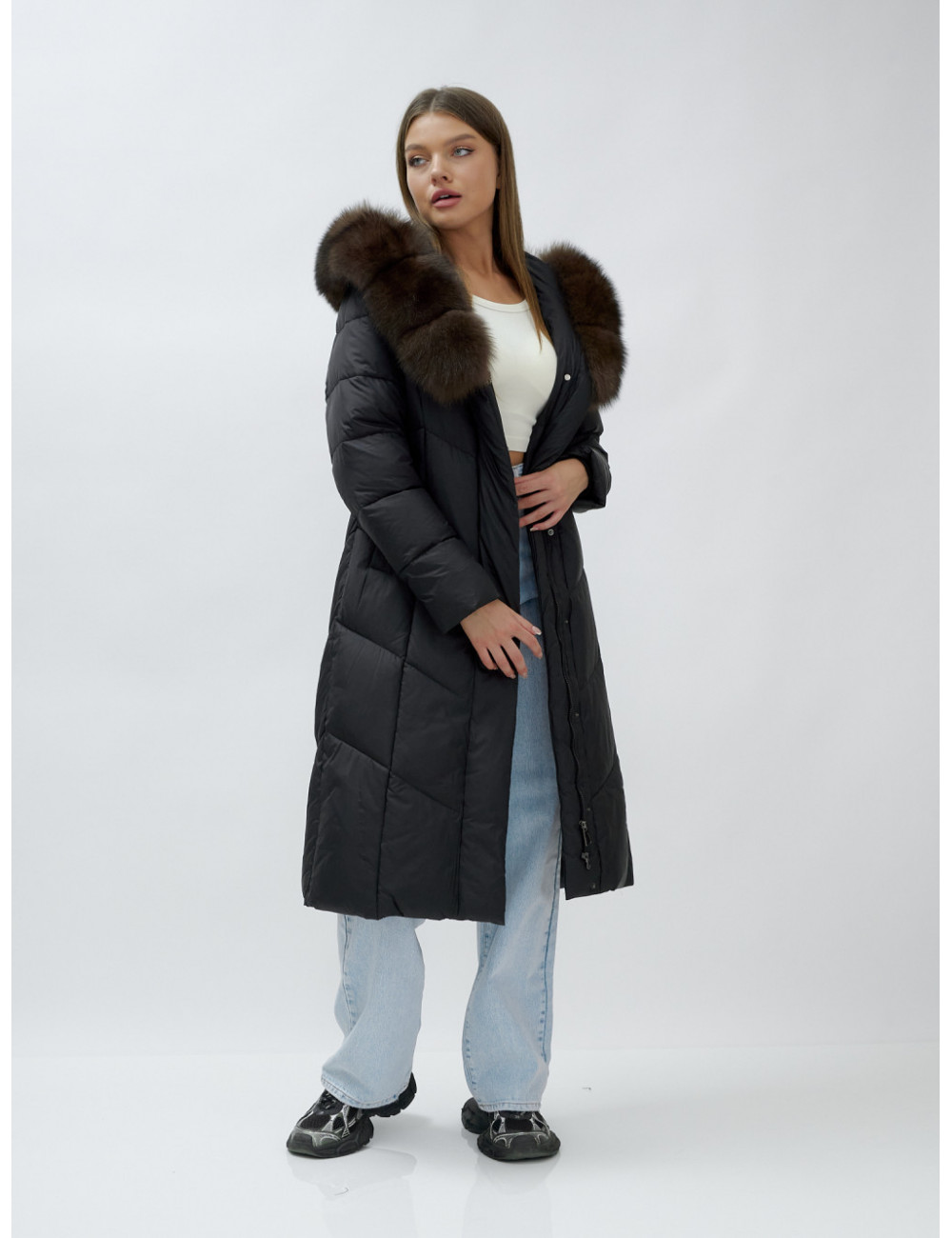 Не бойтесь экспериментировать с образами. Пуховик-пальто отлично сочетается с различными аксессуарами, такими как шарфы, шапки и перчатки. Создавайте свой неповторимый стиль и наслаждайтесь каждым моментом зимы! Доставка по Москве и Московской области Пуховик-пальто женское зимнее с мехом песца чёрного цвета, люкс класс