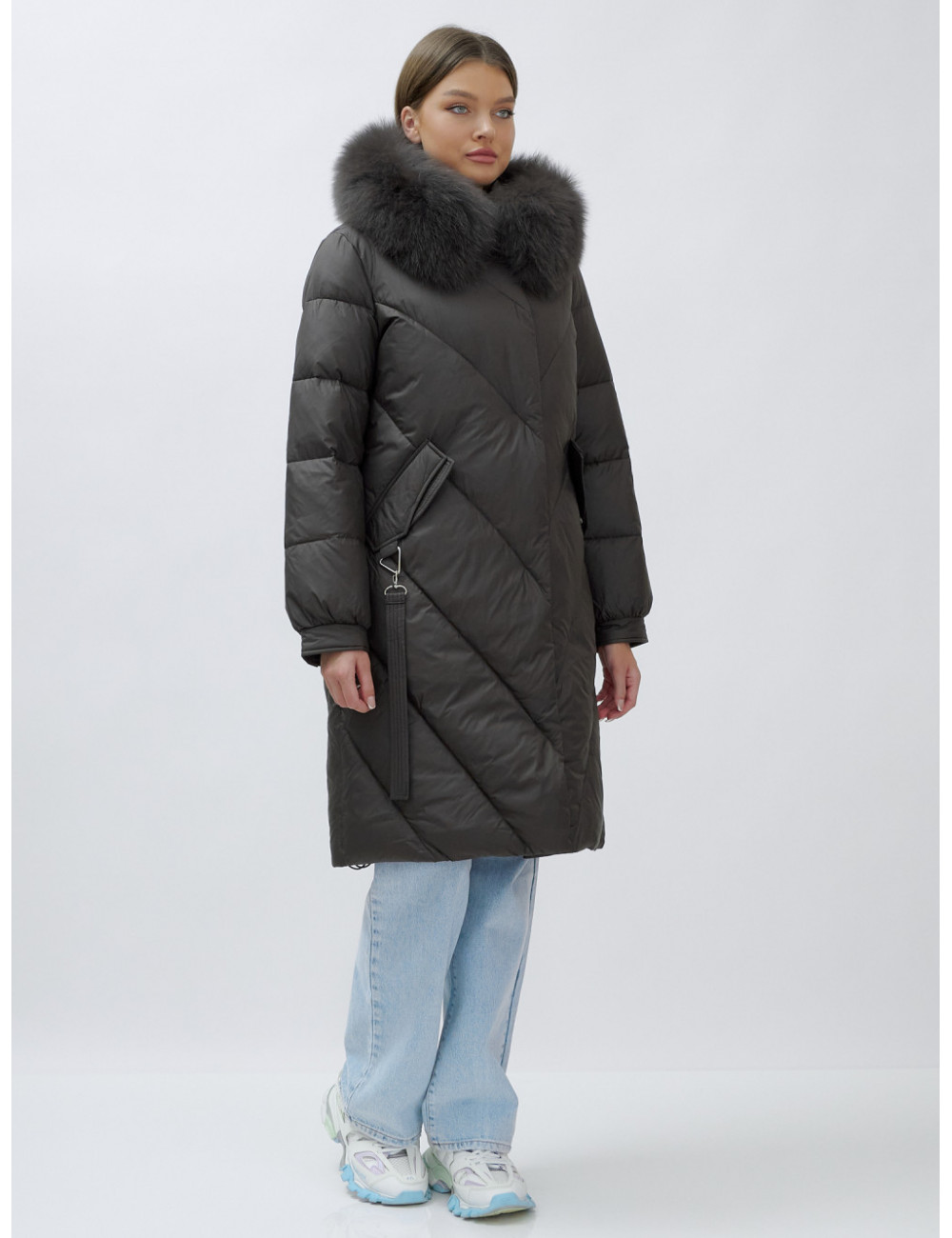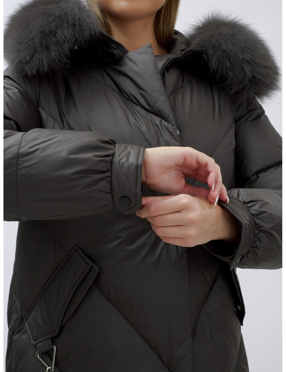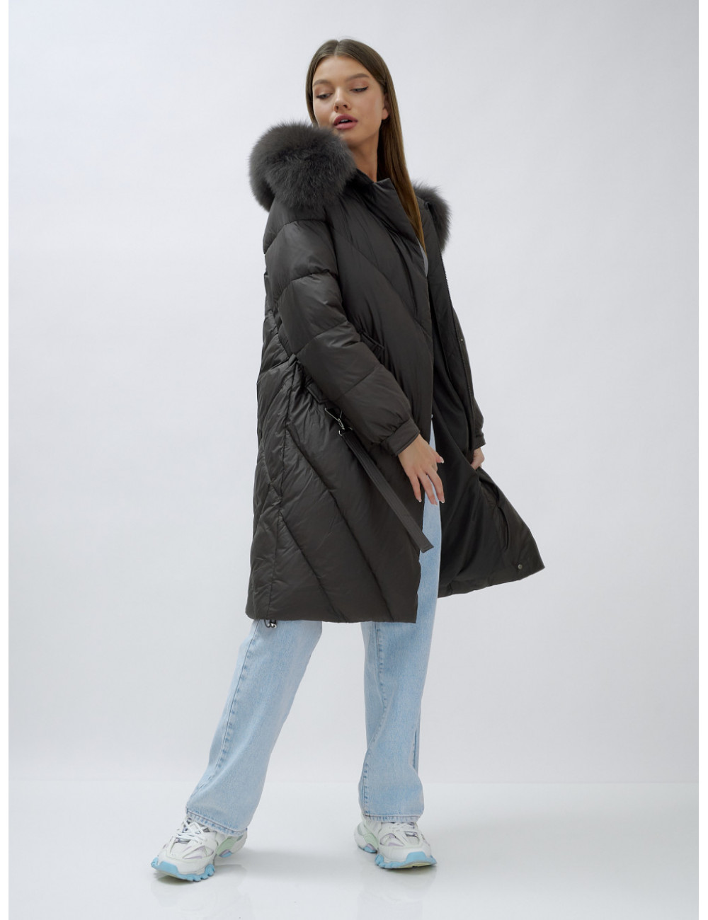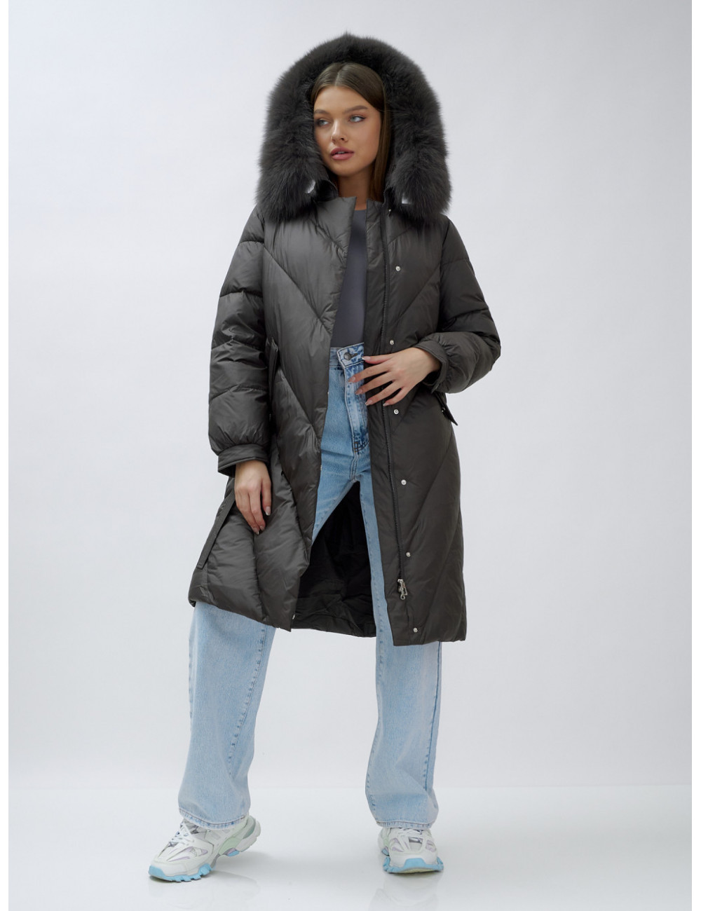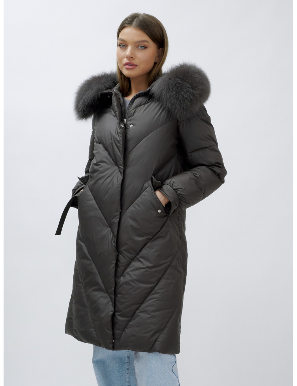 Подчеркните свою индивидуальность и создайте образ, который будет вдохновлять вас на новые достижения! Доставка по Москве и Московской области Пуховик-пальто женское зимнее с мехом песца люкс класса, тёмно-серый