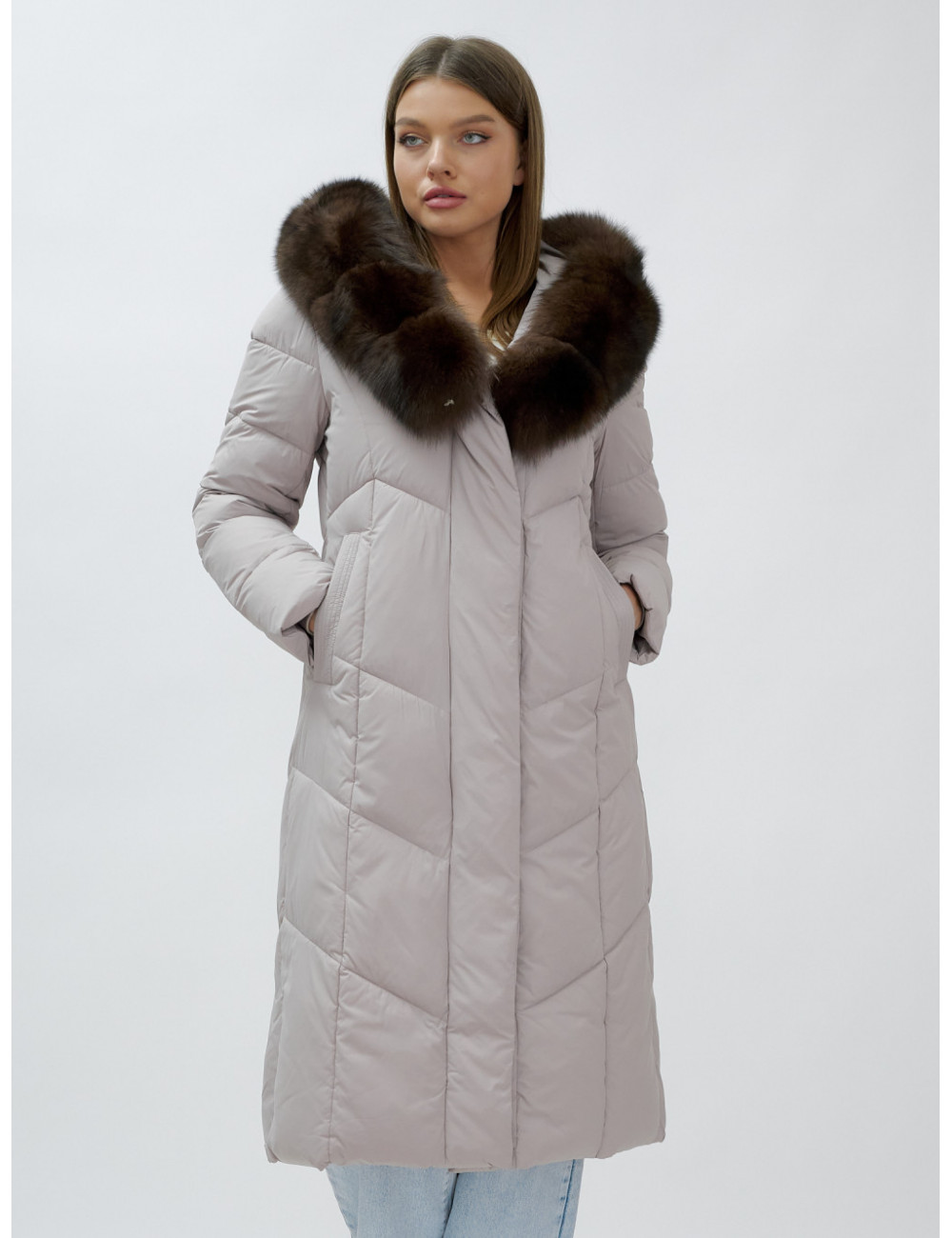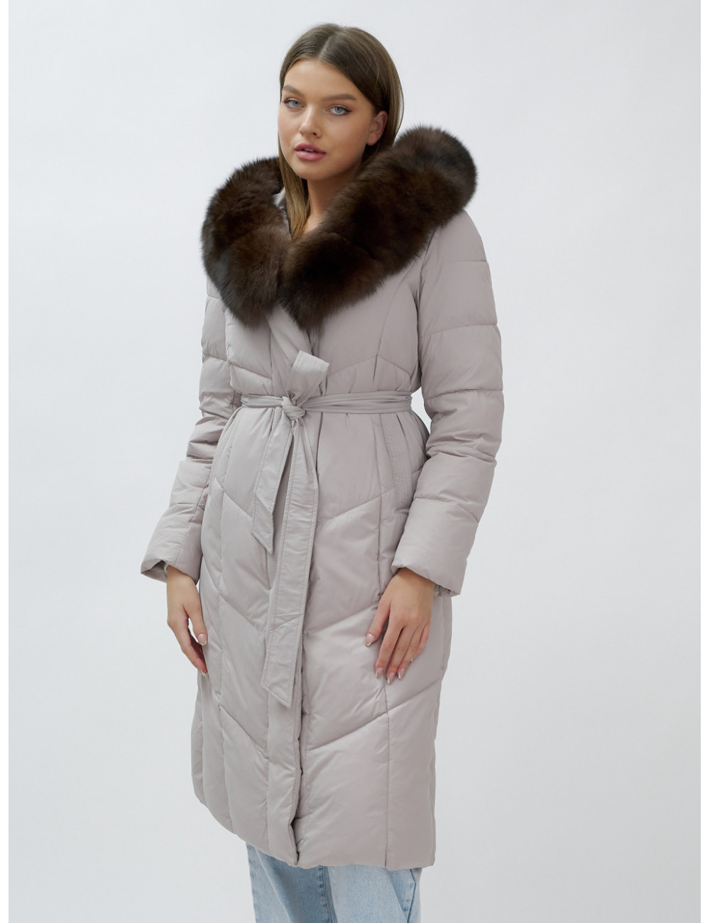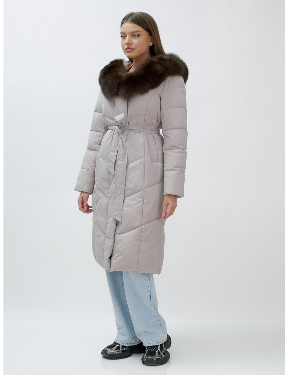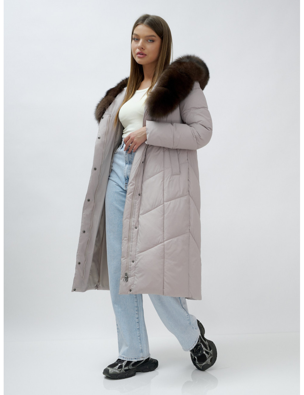 Позвольте себе быть в центре внимания и наслаждайтесь каждым моментом зимы в стильном и тёплом пуховике-пальто премиум-класса! Доставка по Москве и Московской области Пуховик-пальто женское зимнее с мехом песца люкс класса, бежевый.
