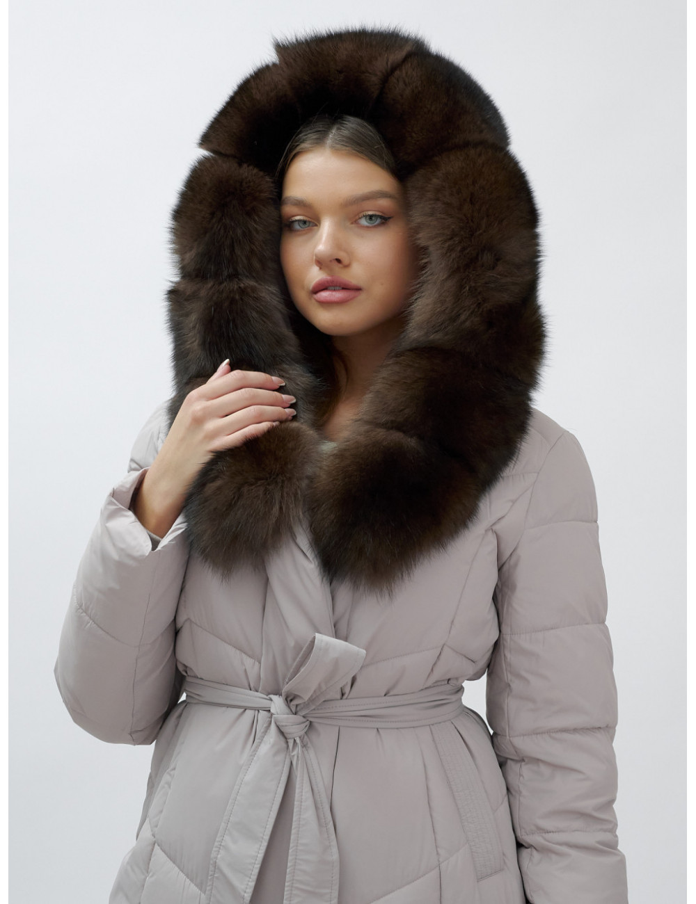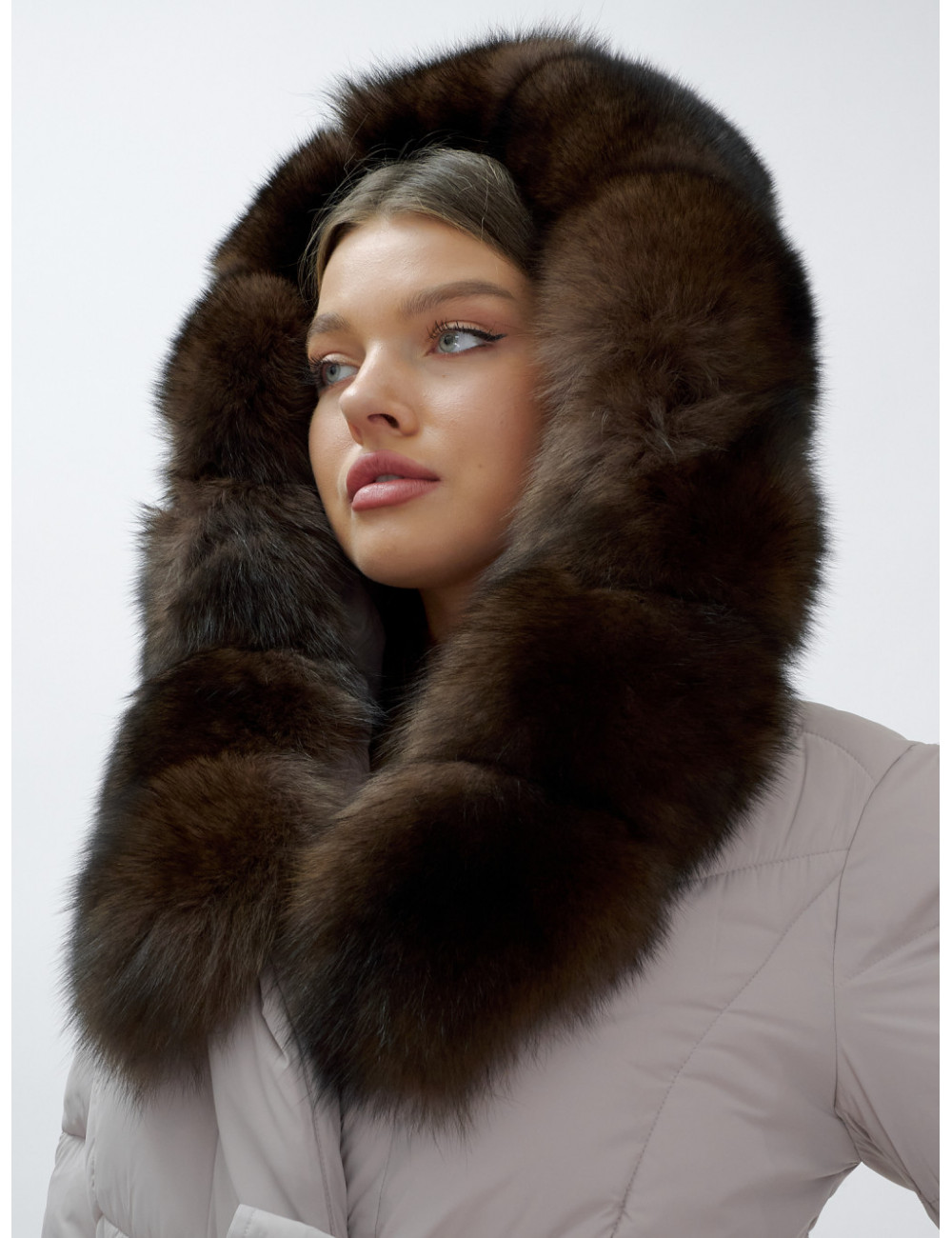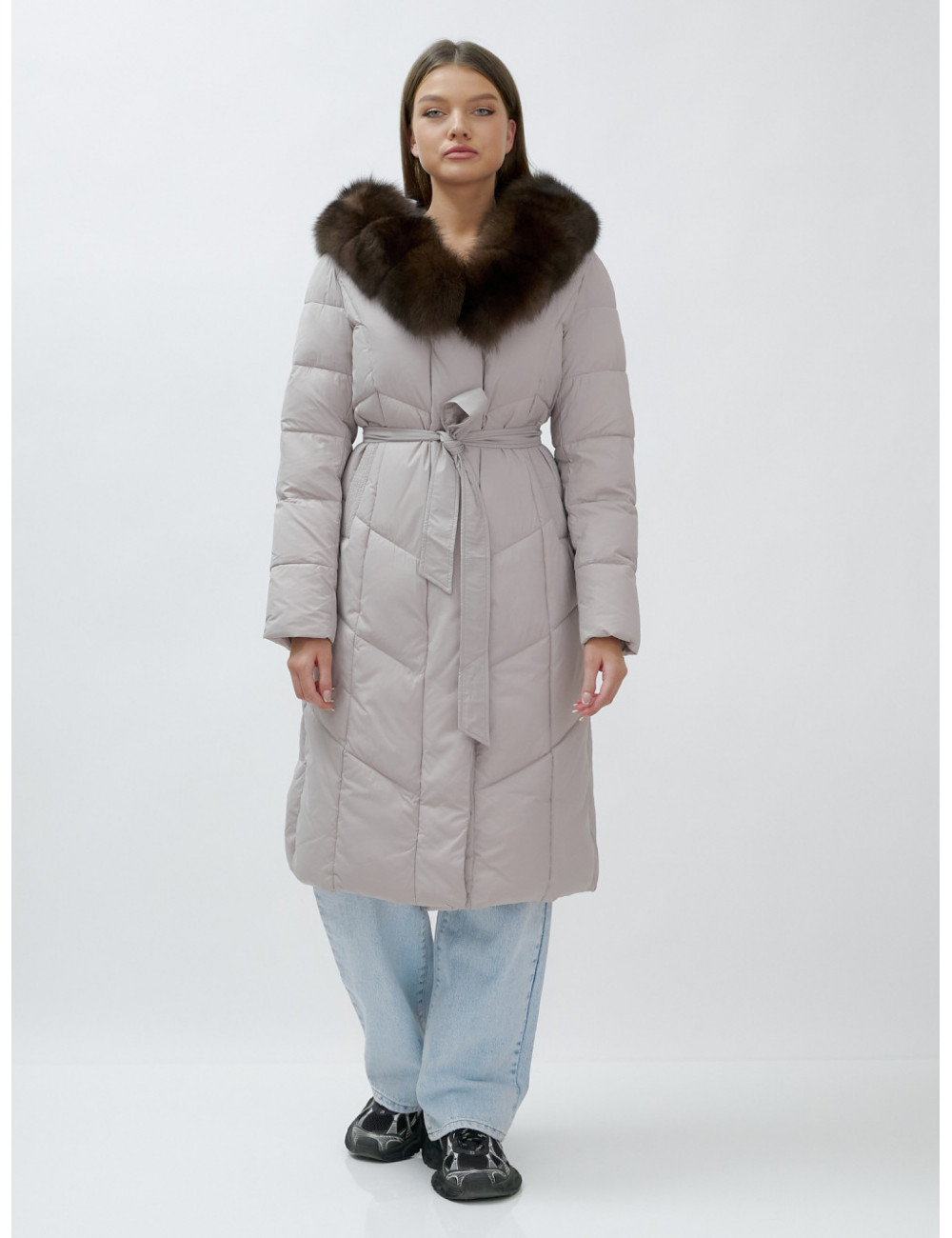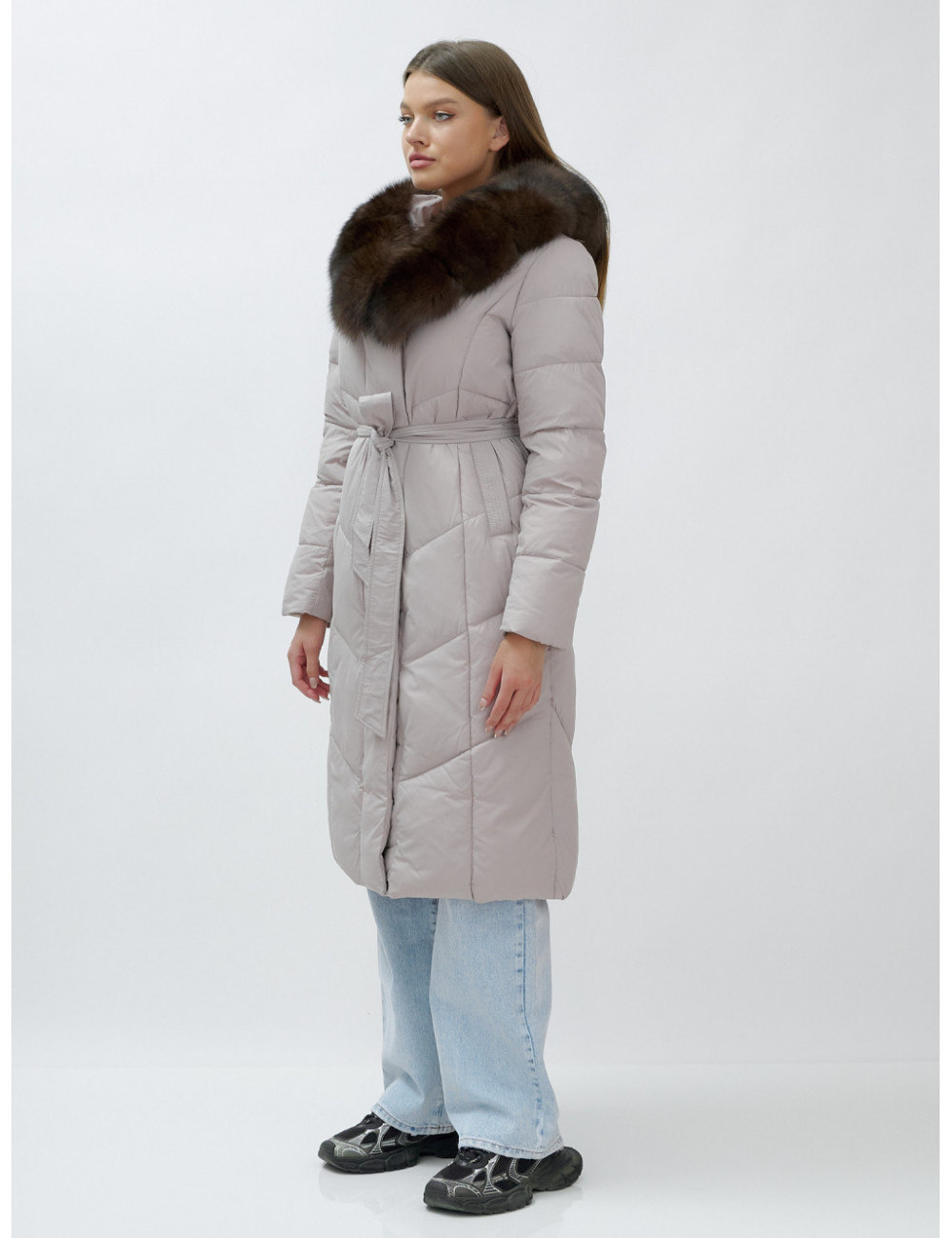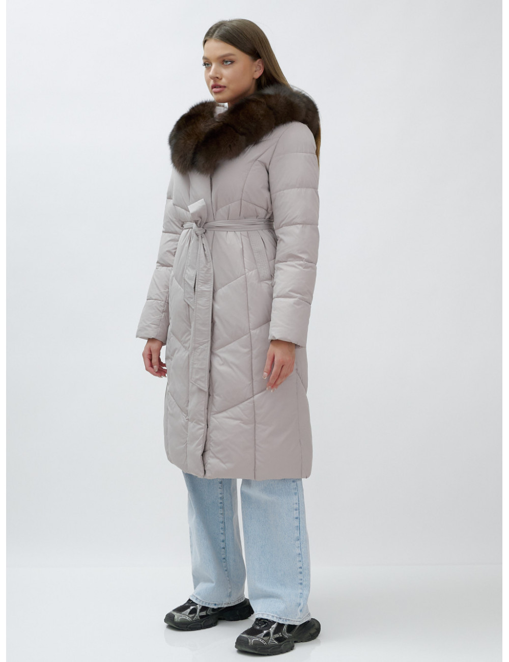 Позвольте себе быть в центре внимания и наслаждайтесь каждым моментом зимы в стильном и тёплом пуховике-пальто премиум-класса! Доставка по Москве и Московской области Пуховик-пальто женское зимнее с мехом песца люкс класса, бежевый.