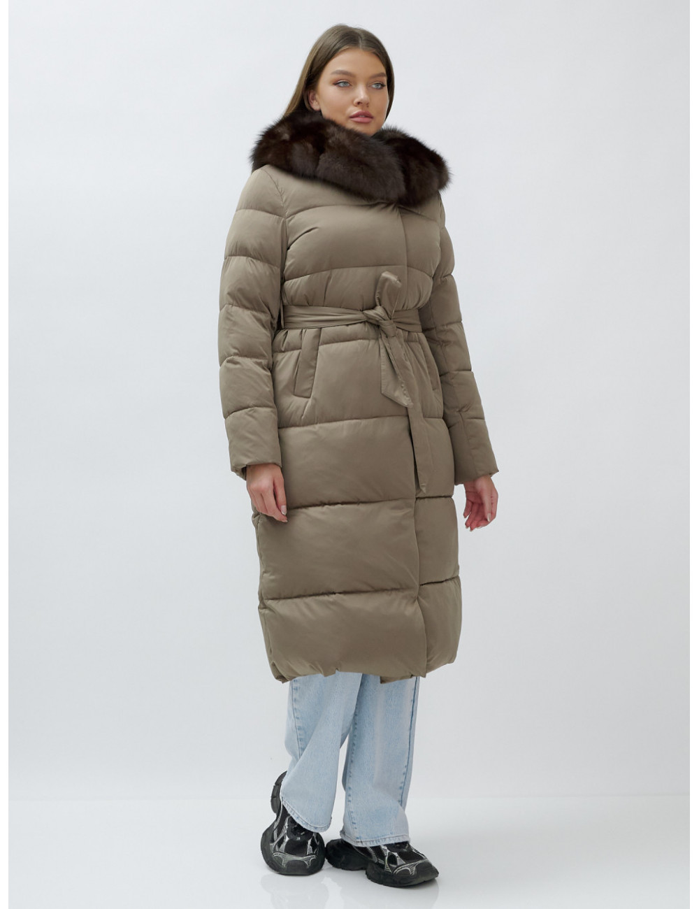 Купить за 31194 ₽ в Москве Пуховик-пальто женское зимний с мехом песца коричневого цвета.