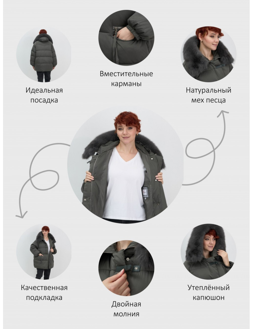| Декоративные элементы | Капюшон, Манжеты, Карманы, Мех |