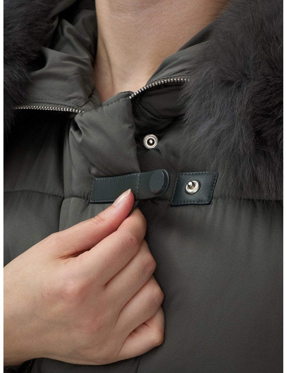 Окутайте себя теплом и роскошью с пуховиком от Ketsi! Станьте обладательницей этой модели прямо сейчас и позвольте себе быть неотразимой в любой ситуации. Доставка по Москве и Московской области Женский зимний пуховик с мехом и капюшоном, тёмно-зелёный.