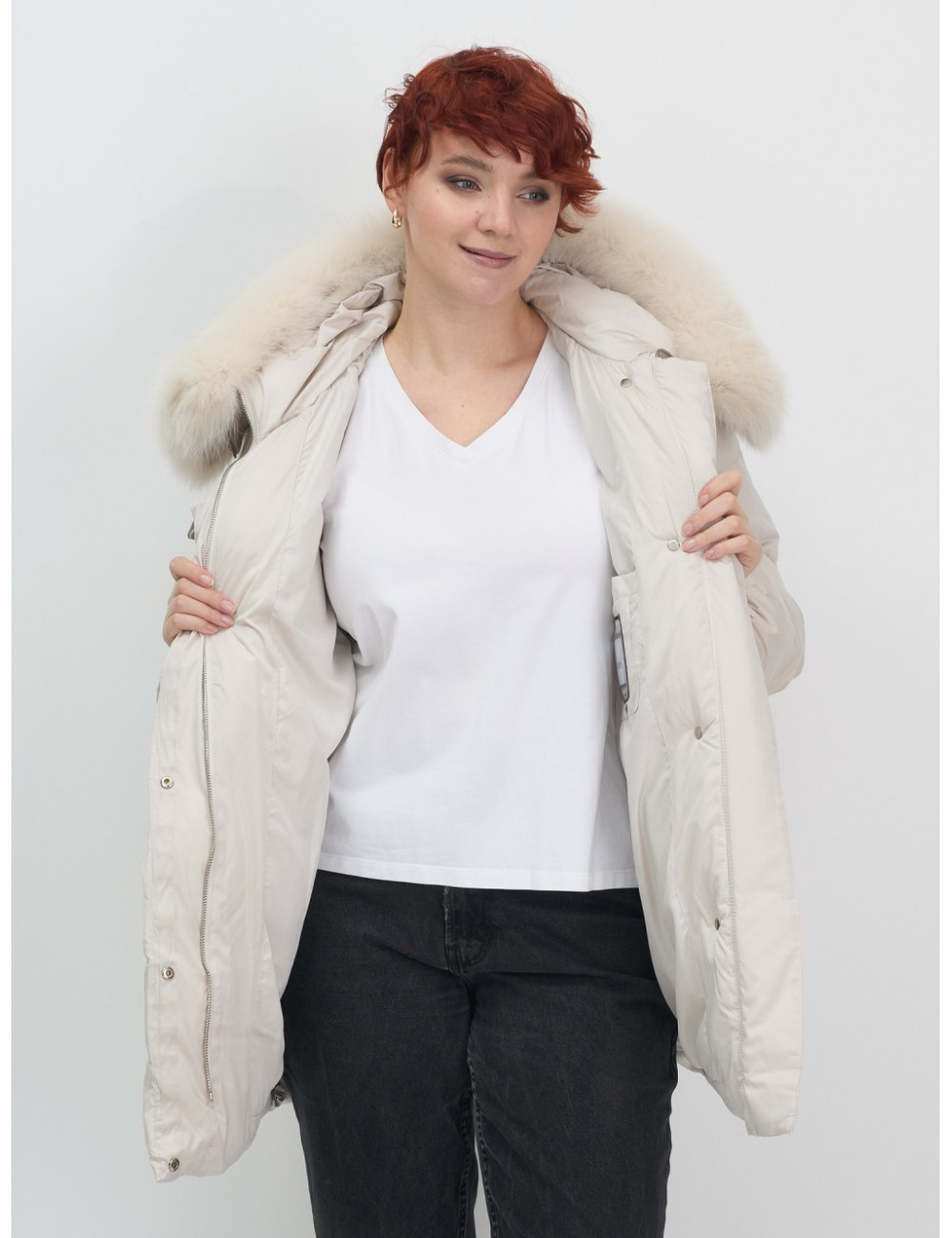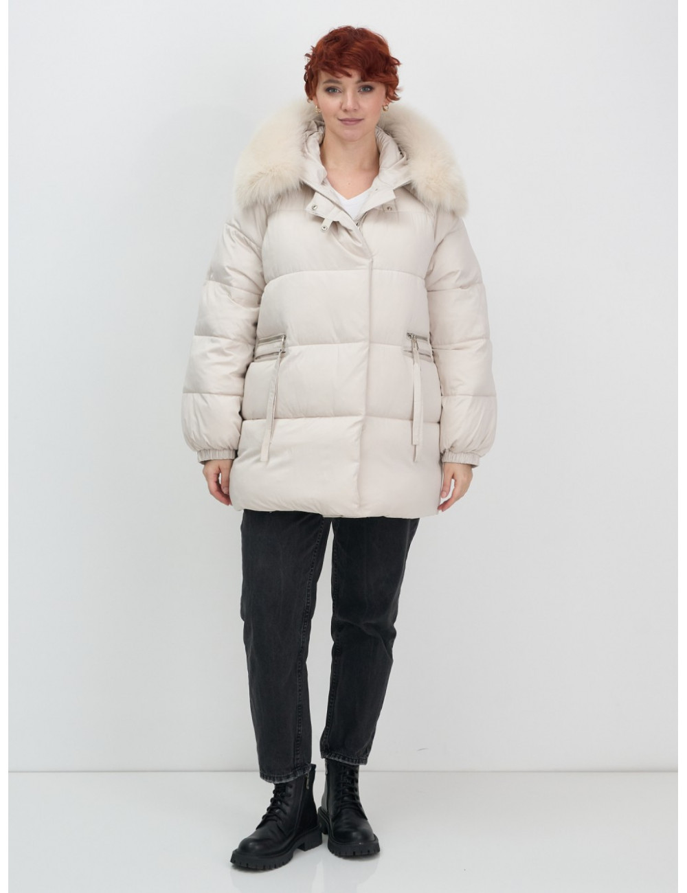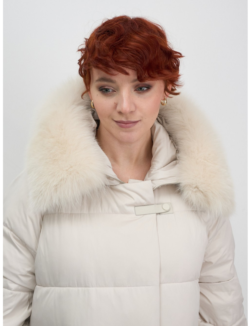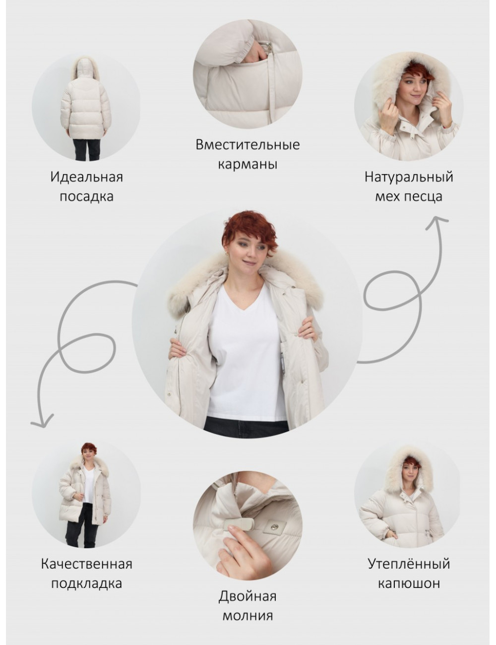 - Натуральный мех песца: создаёт неповторимый ореол изысканности и притягивает восхищённые взгляды. Съёмная опушка позволяет менять образ от делового до casual-шика.