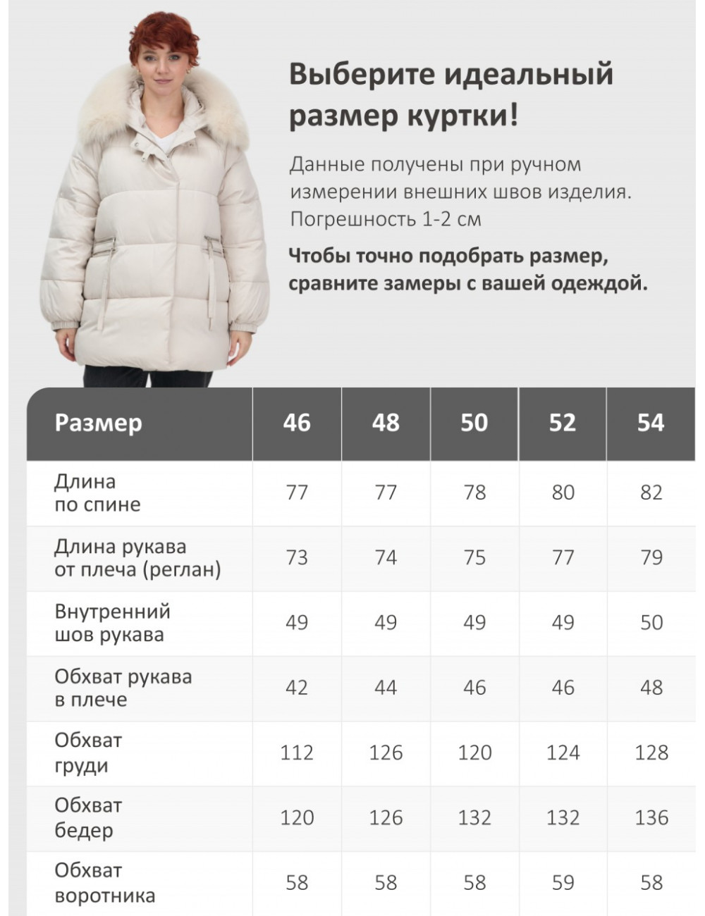 | Комплектация | Куртка/Капюшон/Мех песец натуральный |