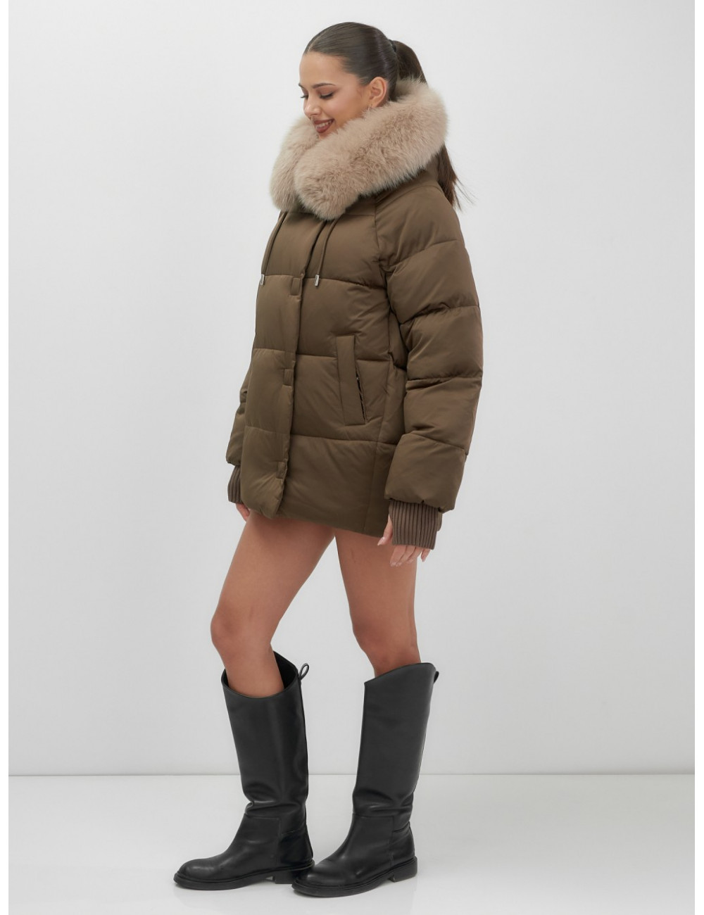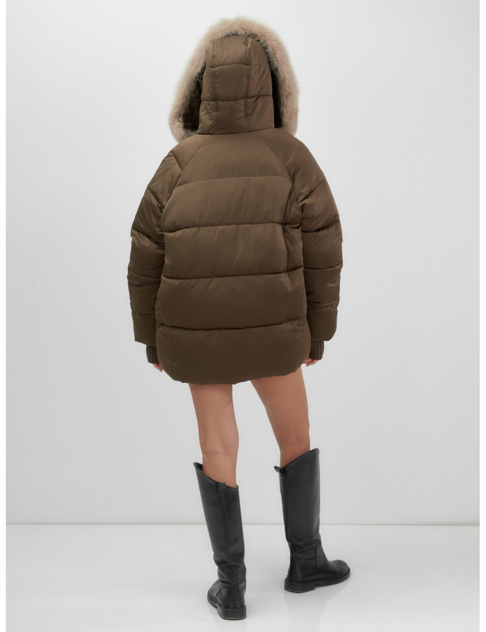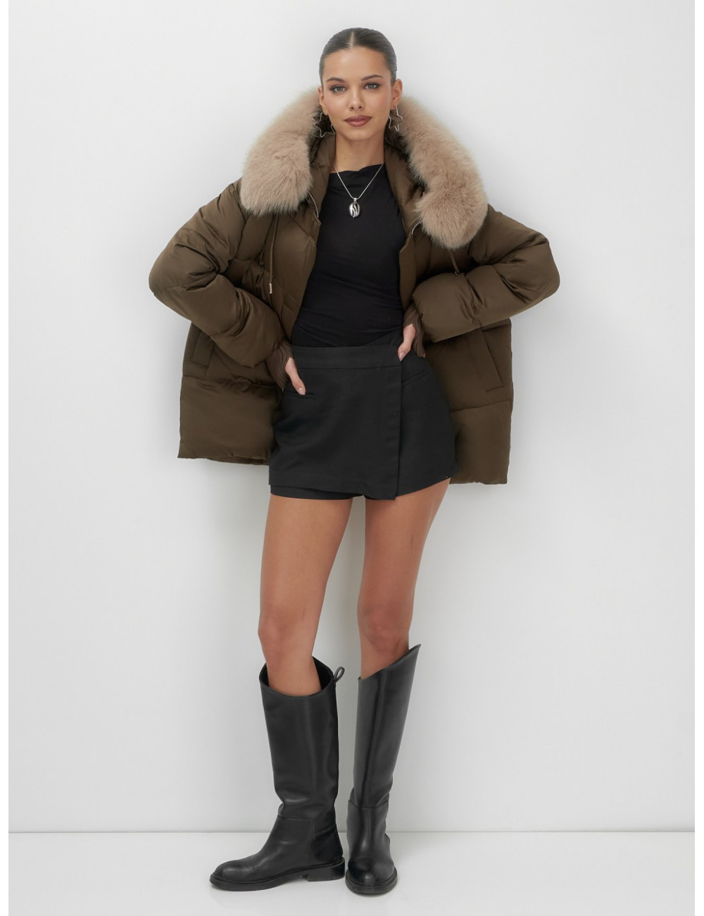 - Съёмная опушка из натурального песца позволяет менять образ по настроению.