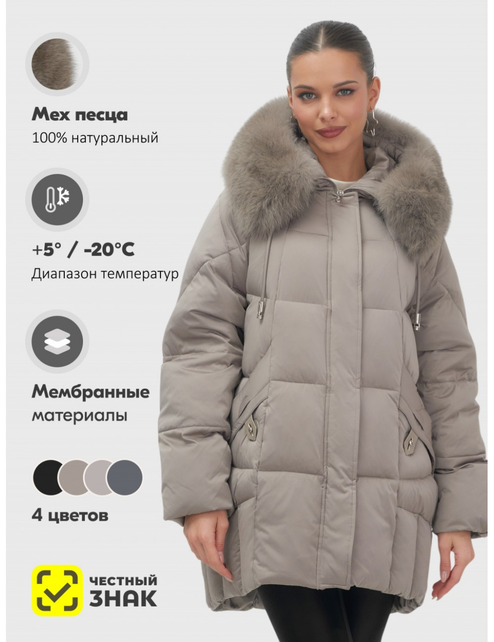 Съёмная опушка из натурального песца позволяет создавать различные образы — от статусного делового до элегантного повседневного. Удлиненный силуэт и продуманный крой создают безупречные пропорции. Изысканная цветовая палитра включает благородный чёрный, глубокий коричневый, утончённый светло-коричневый и аристократичный тёмно-серый.