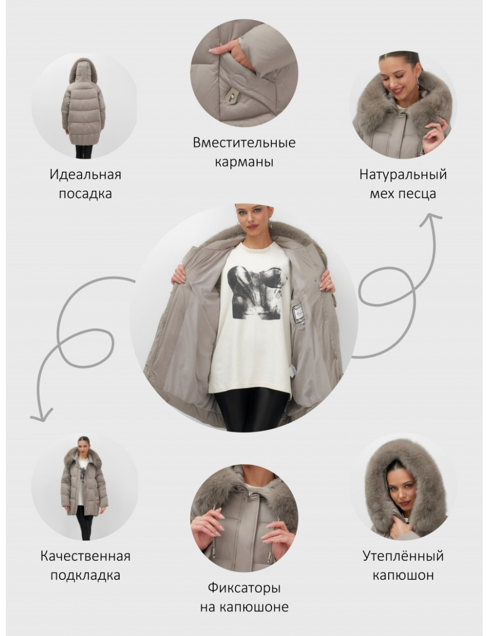 | Материал подкладки капюшона | Мех песец/Полиэстер |
