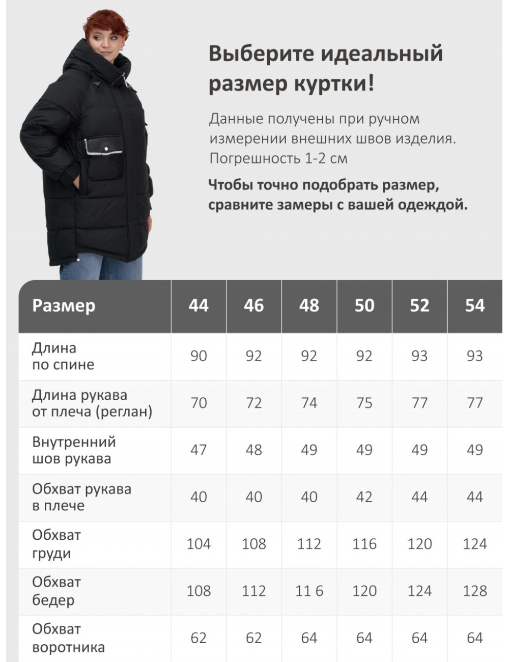 Пуховик «Тренд» доступен в размерах от 44 до 54.