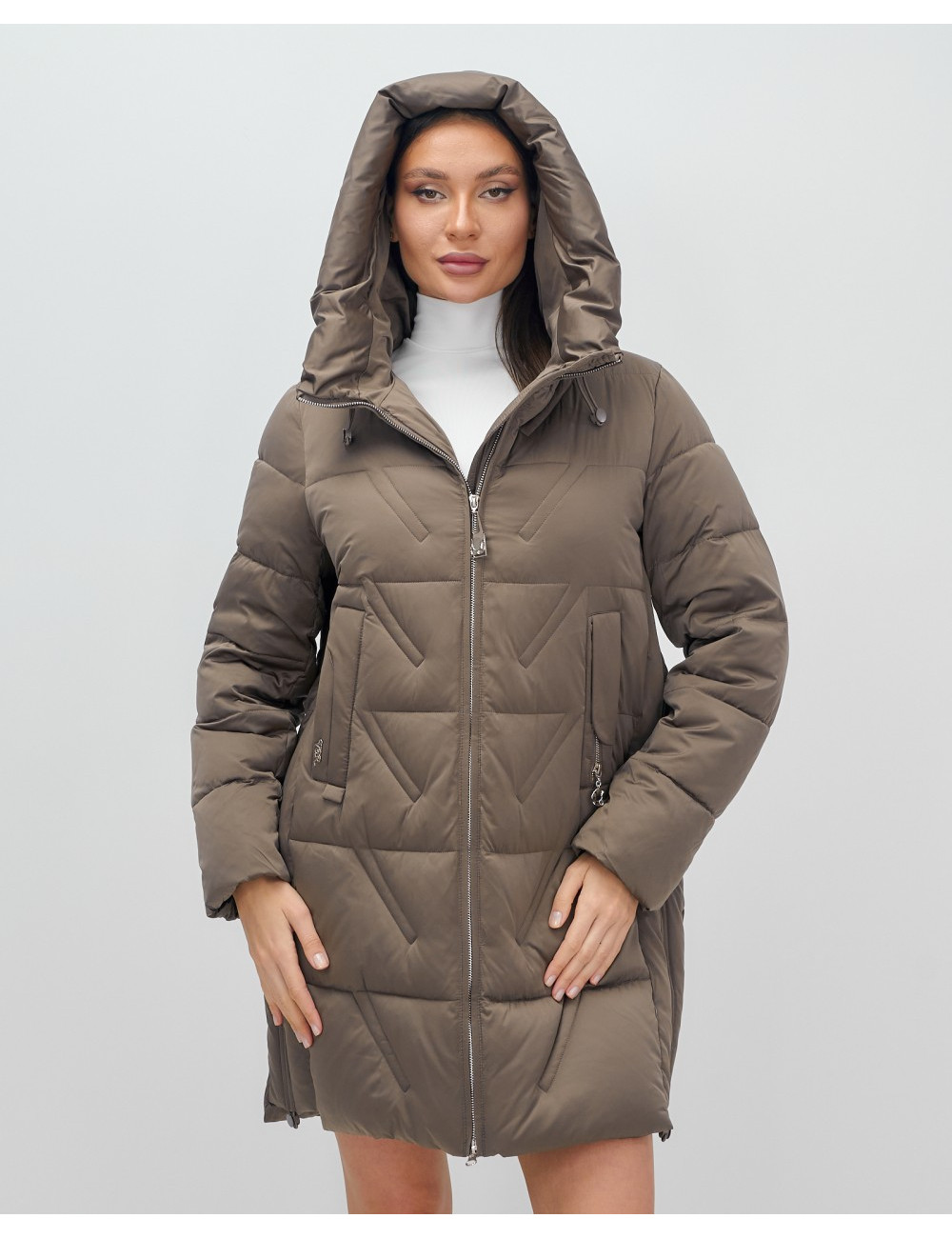 Купить за 22512 ₽ в Москве Пуховик женский зимний классический с капюшоном, коричневый Пуховик зимний женский с капюшоном