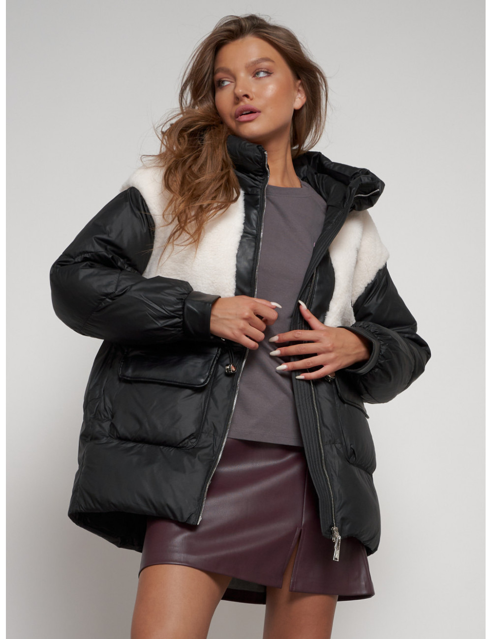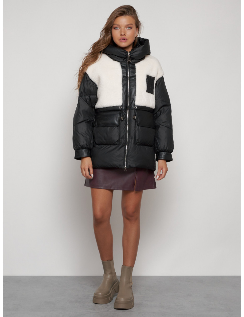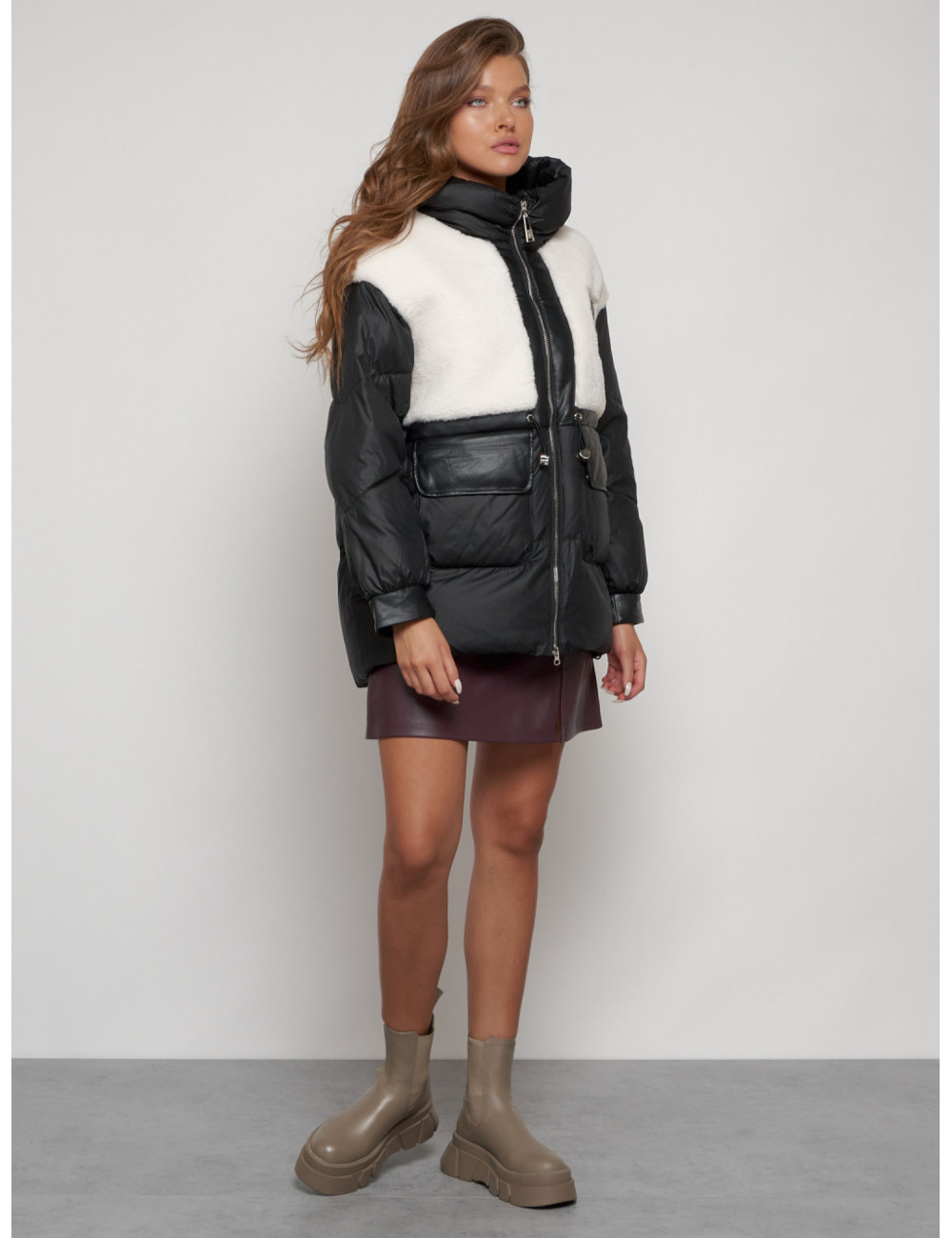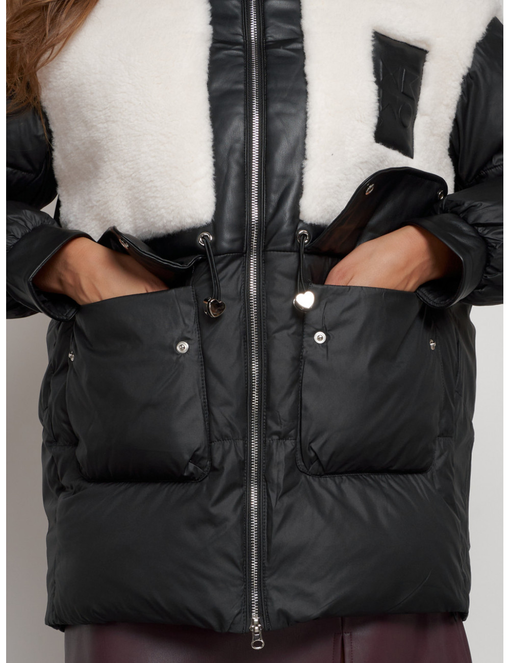 Пуховик выполнен из высококачественных материалов и прослужит вам долгие годы, обеспечивая комфорт и защиту в холодное время года. Доставка по Москве и Московской области Женский модный чёрный пуховик из овчины.