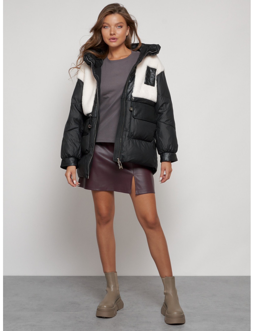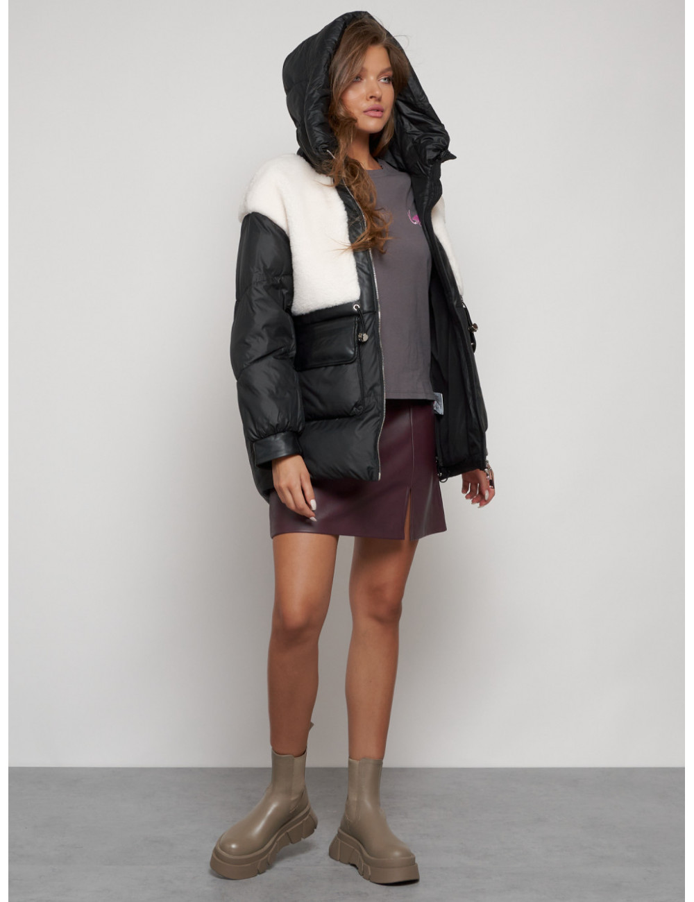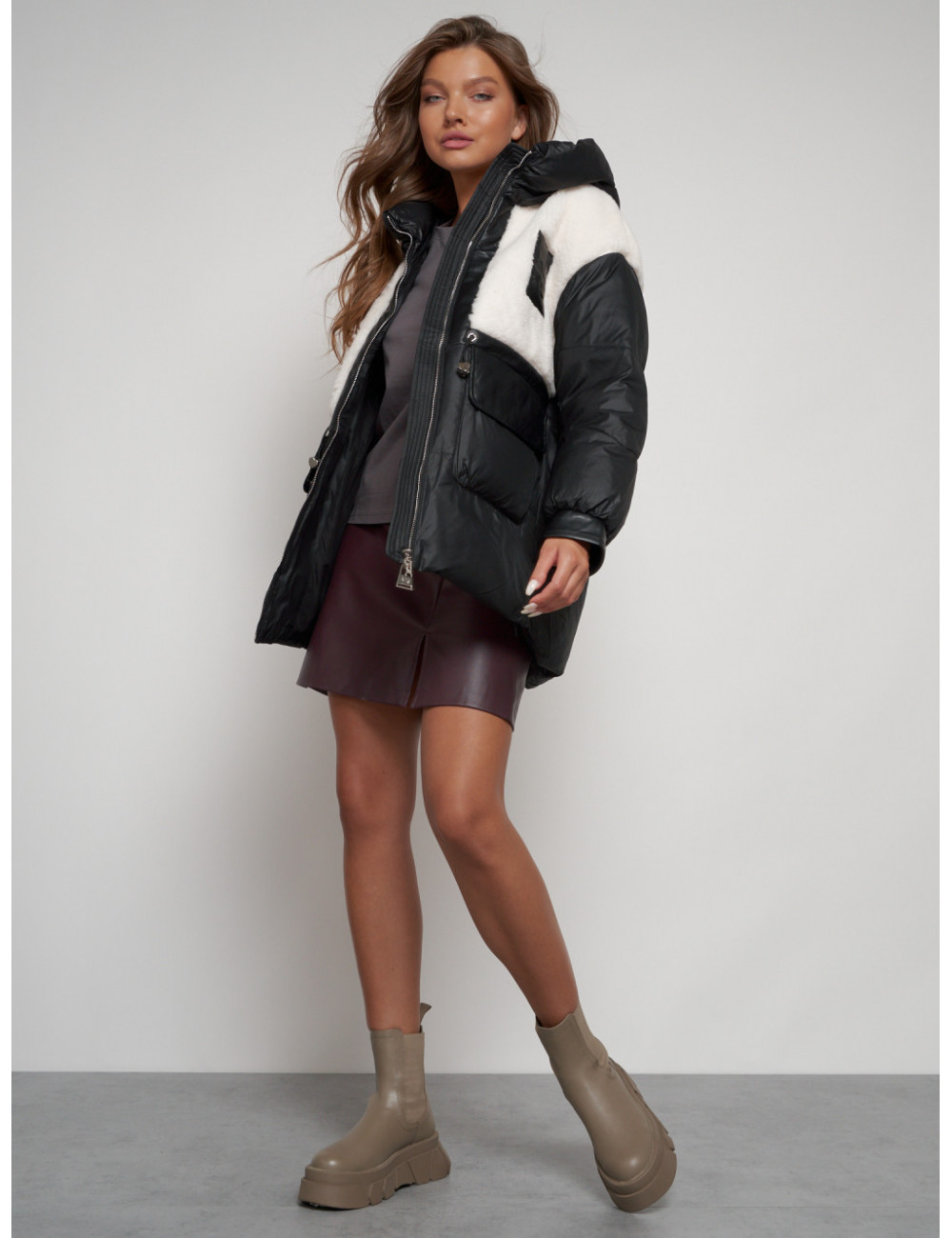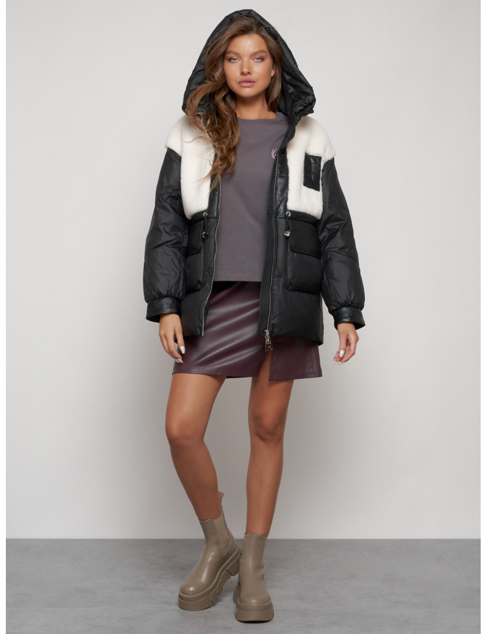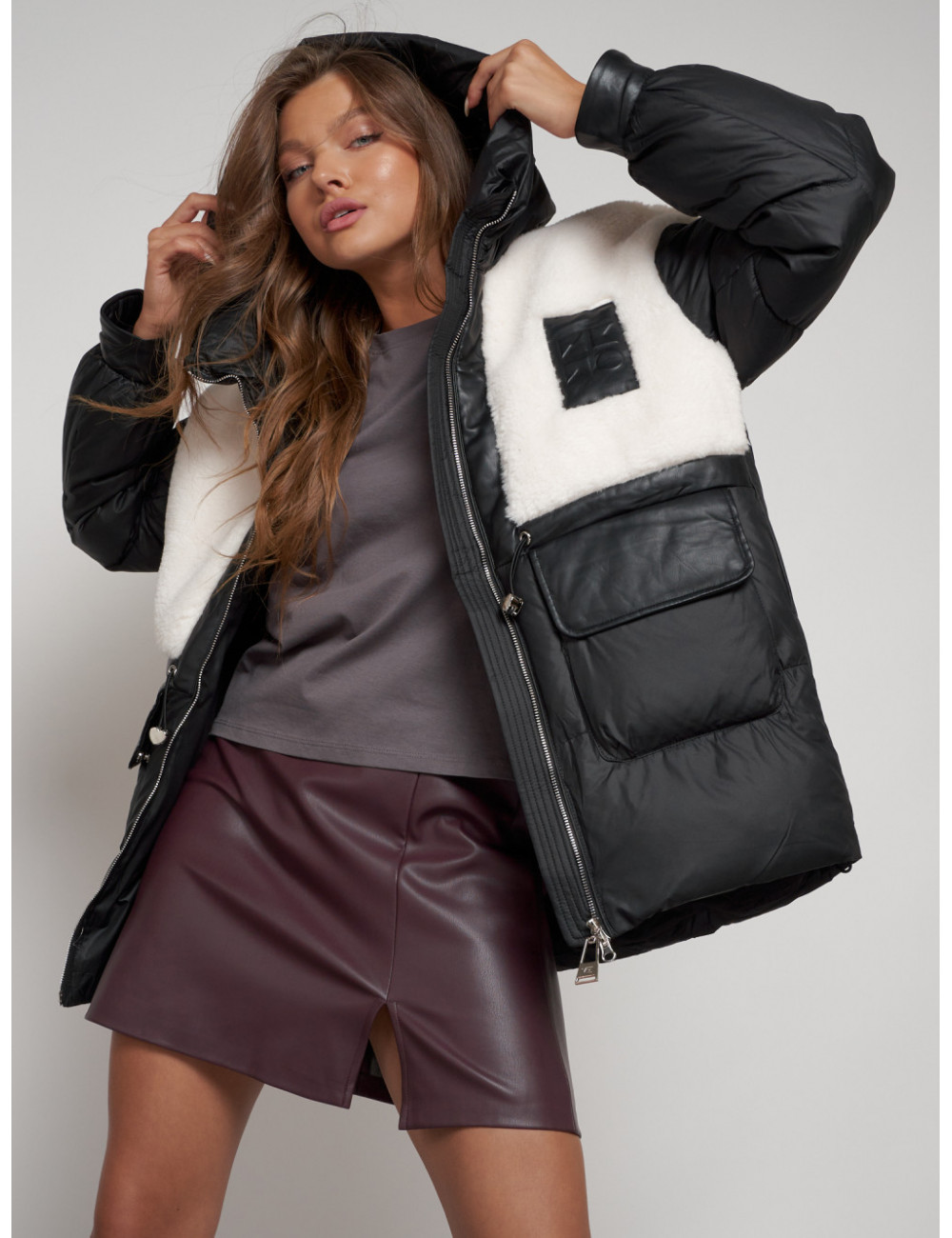 Пуховик выполнен из высококачественных материалов и прослужит вам долгие годы, обеспечивая комфорт и защиту в холодное время года. Доставка по Москве и Московской области Женский модный чёрный пуховик из овчины.