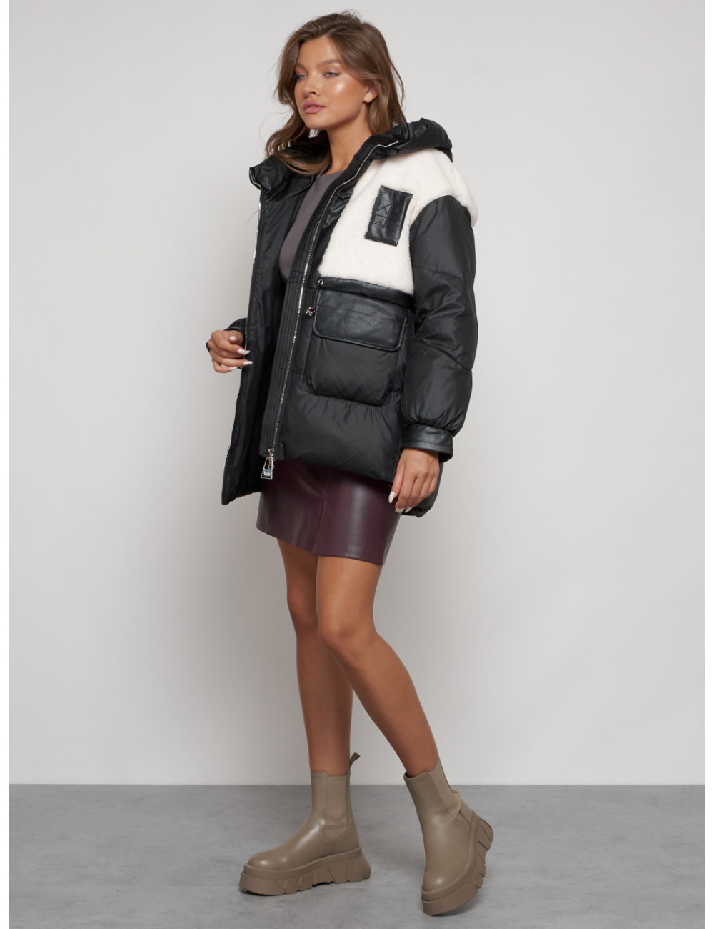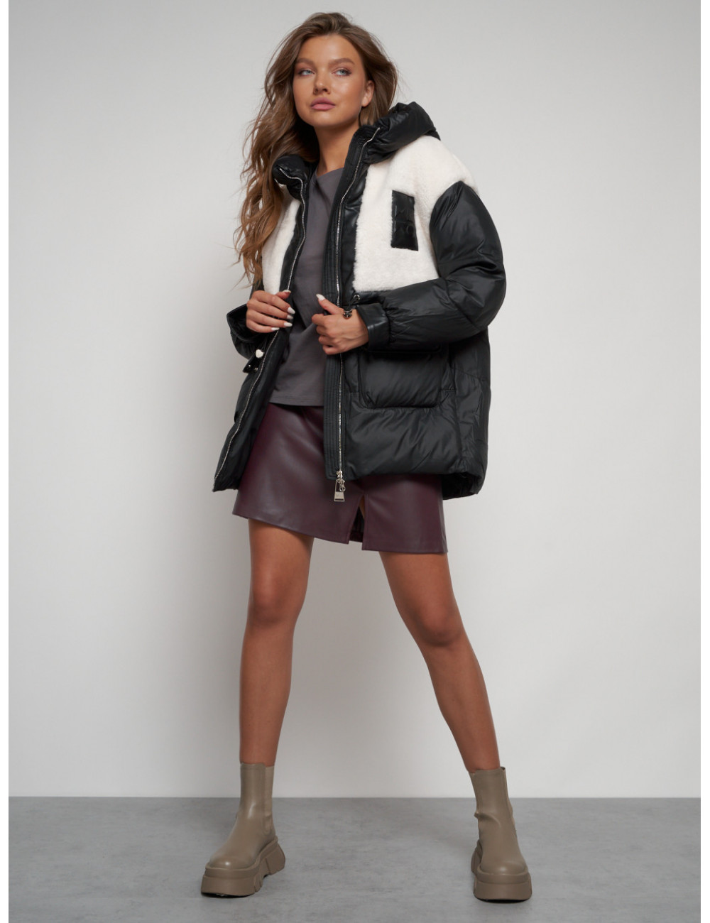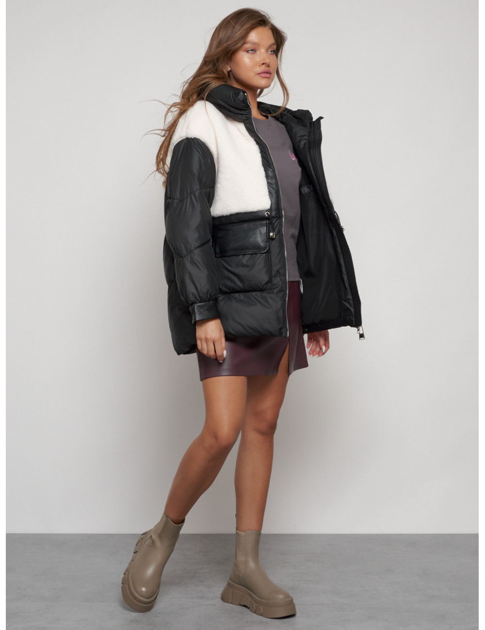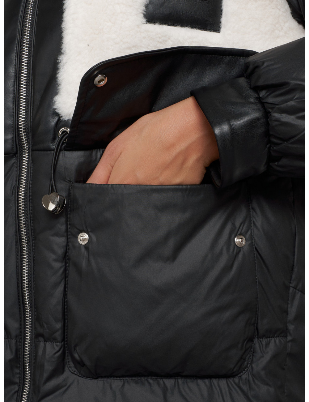 Пуховик выполнен из высококачественных материалов и прослужит вам долгие годы, обеспечивая комфорт и защиту в холодное время года. Доставка по Москве и Московской области Женский модный чёрный пуховик из овчины.