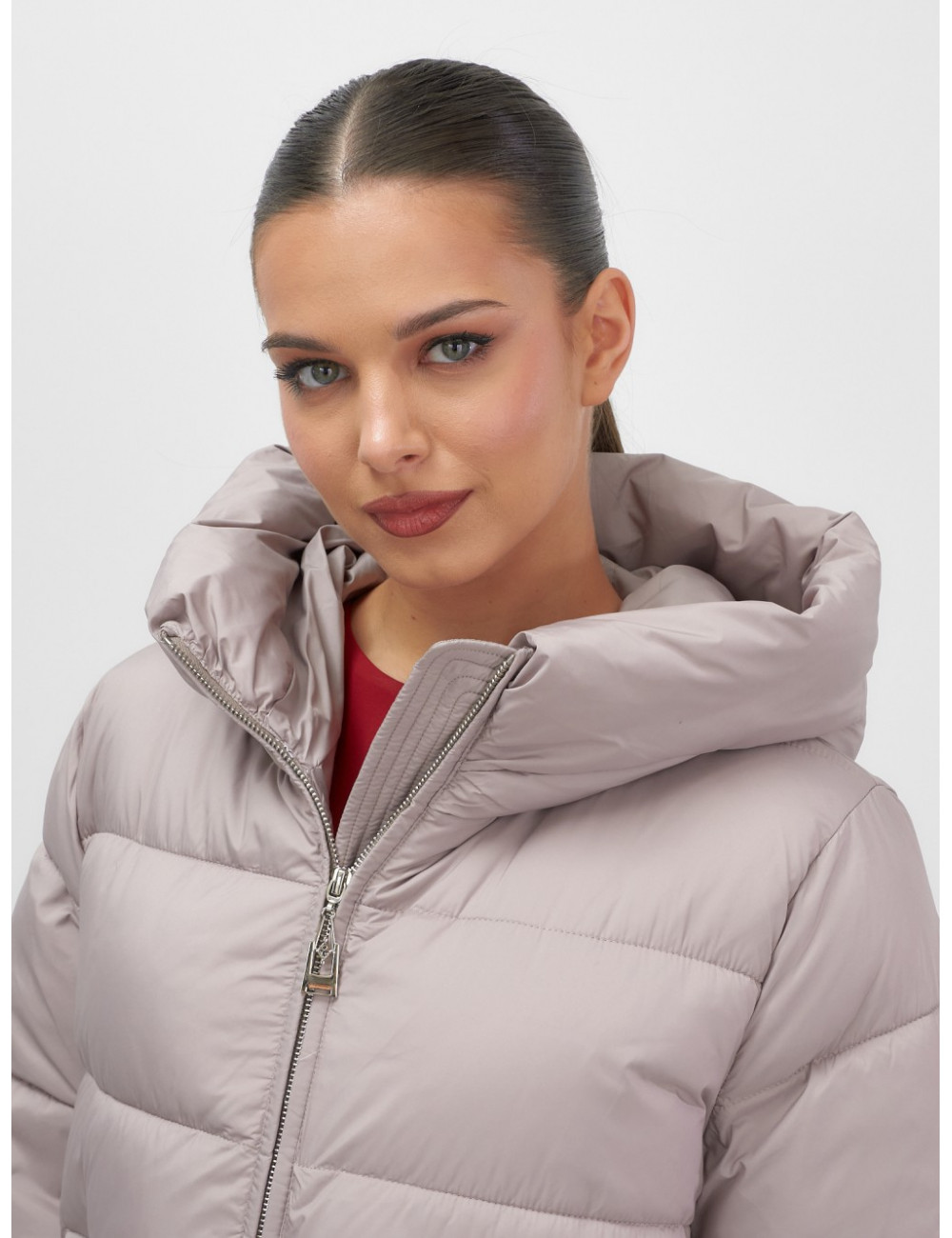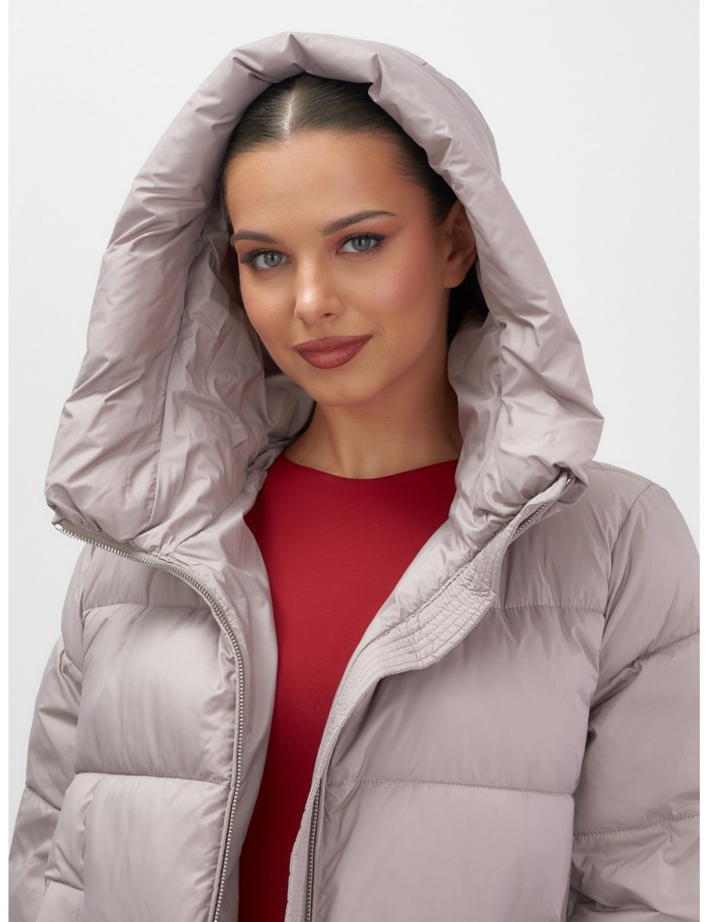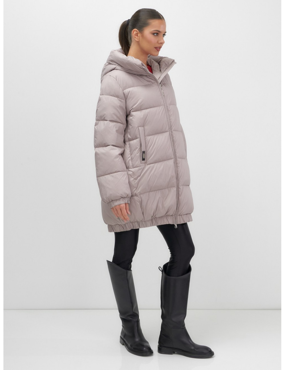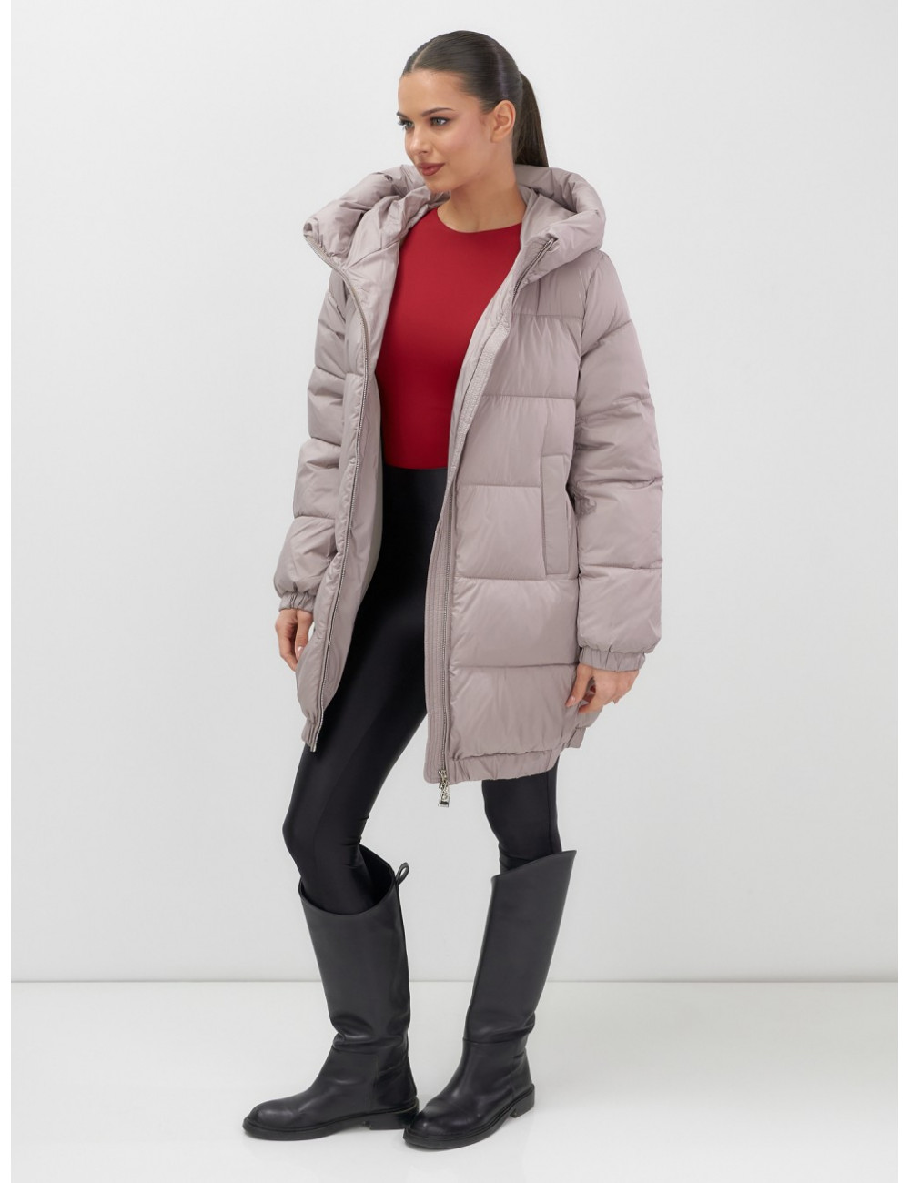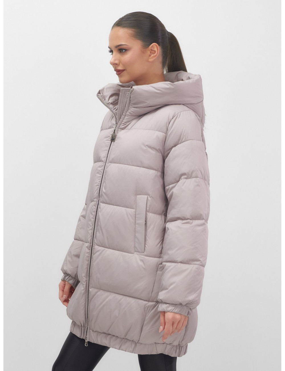 Пуховик с капюшоном на резинке для женщин больших размеров