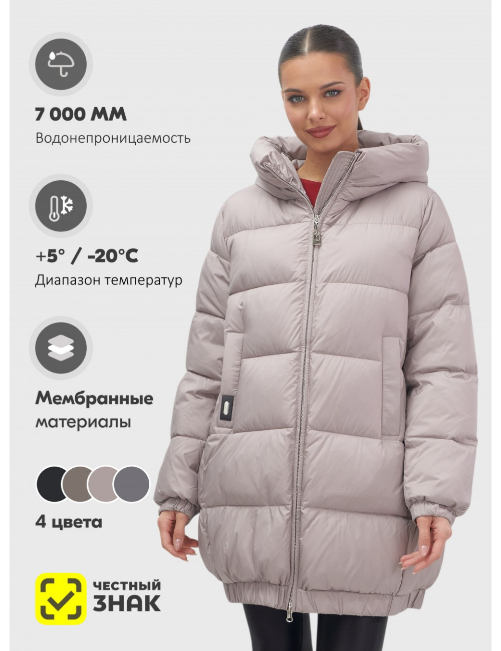 Особенности модели | быстросохнущая, ветрозащита, водоотталкивающий материал, гипоаллергенный материал, дышащий материал, корректирующий эффект |