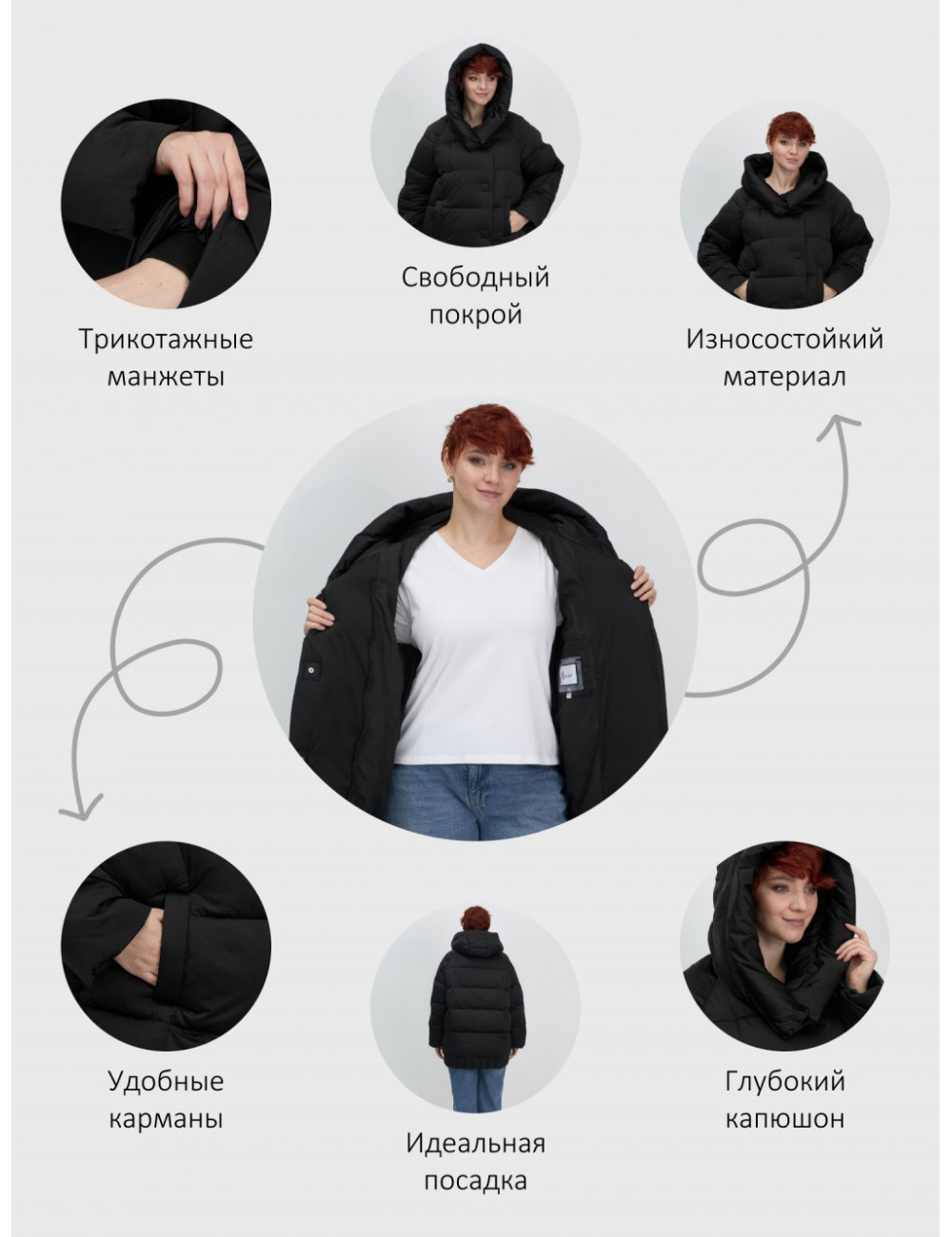 Идеальный выбор для тех, кто ценит элегантность и практичность. Пуховик подходит для любой фигуры и роста (от 155 до 190 см).