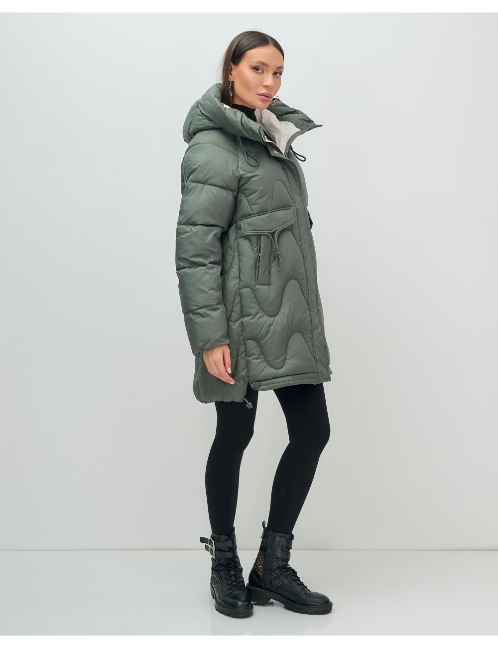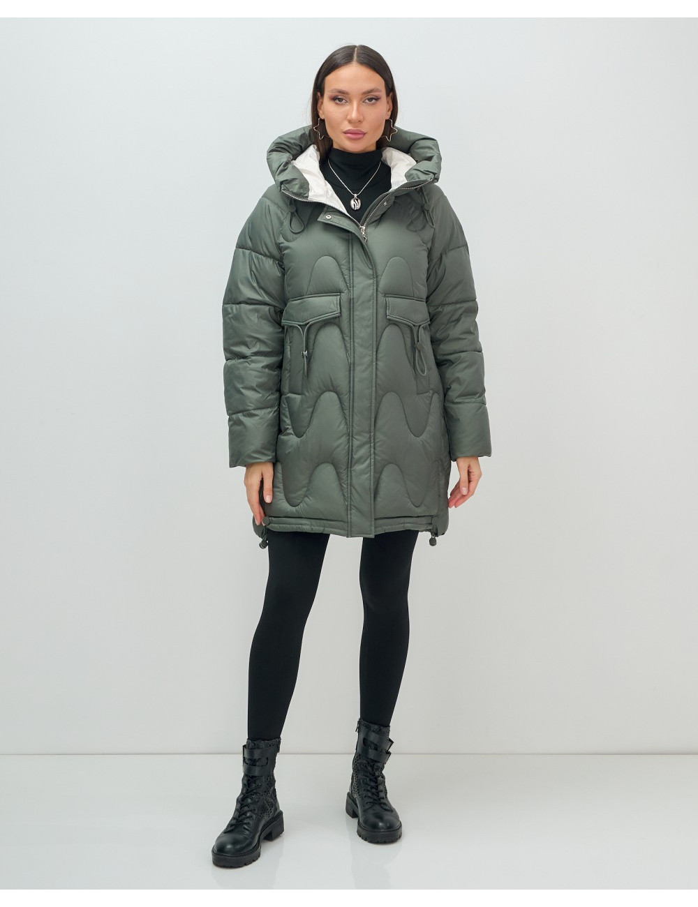 Не упустите возможность добавить этот универсальный и модный пуховик в свой гардероб! Доставка по Москве и Московской области Пуховик зимний женский с капюшоном модным цвета хаки