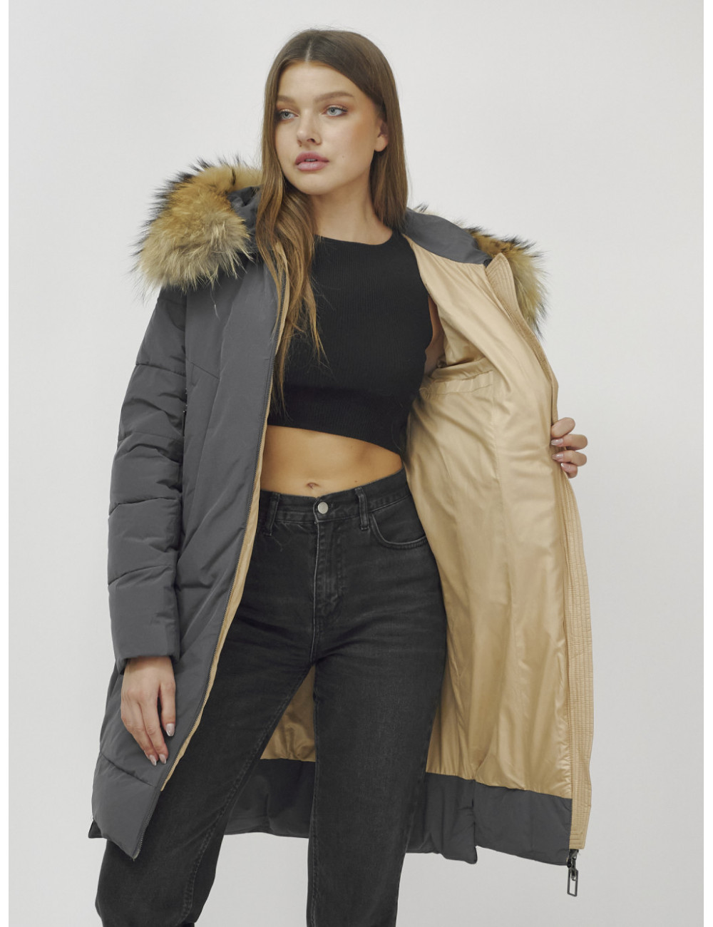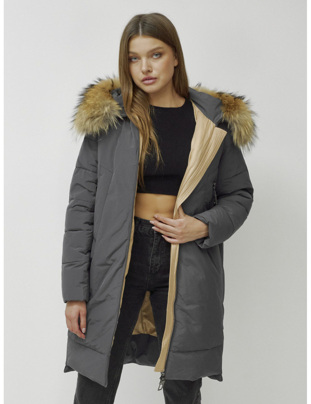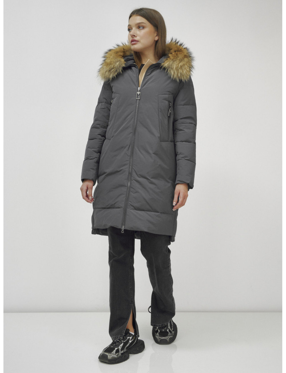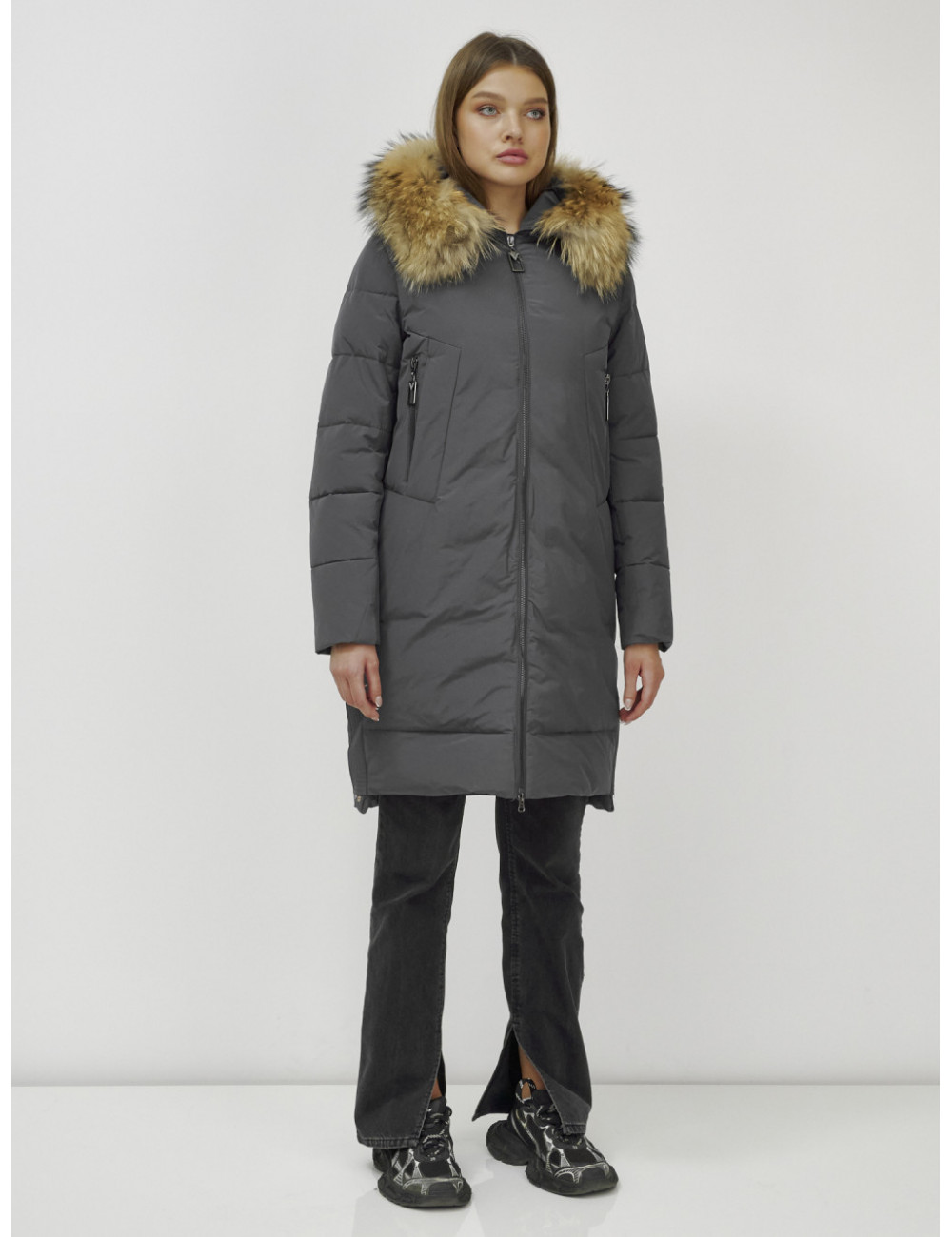 Не упустите возможность стать обладательницей этого великолепного пуховика — он точно станет любимой частью вашего зимнего гардероба. Доставка по Москве и Московской области Пуховик женский зимний с мехом енота большого размера, тёмно-серый