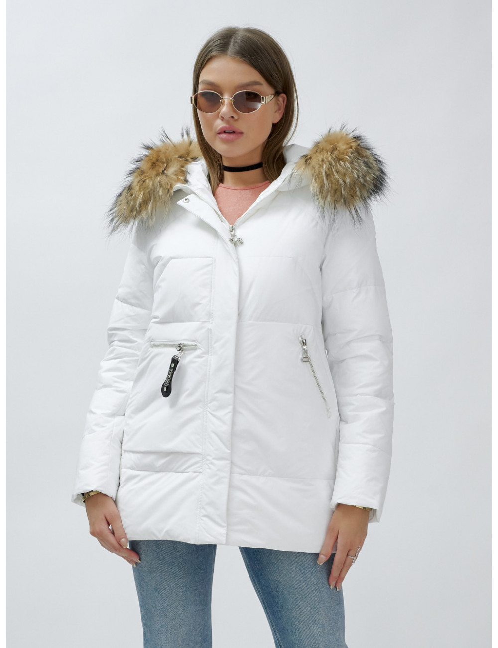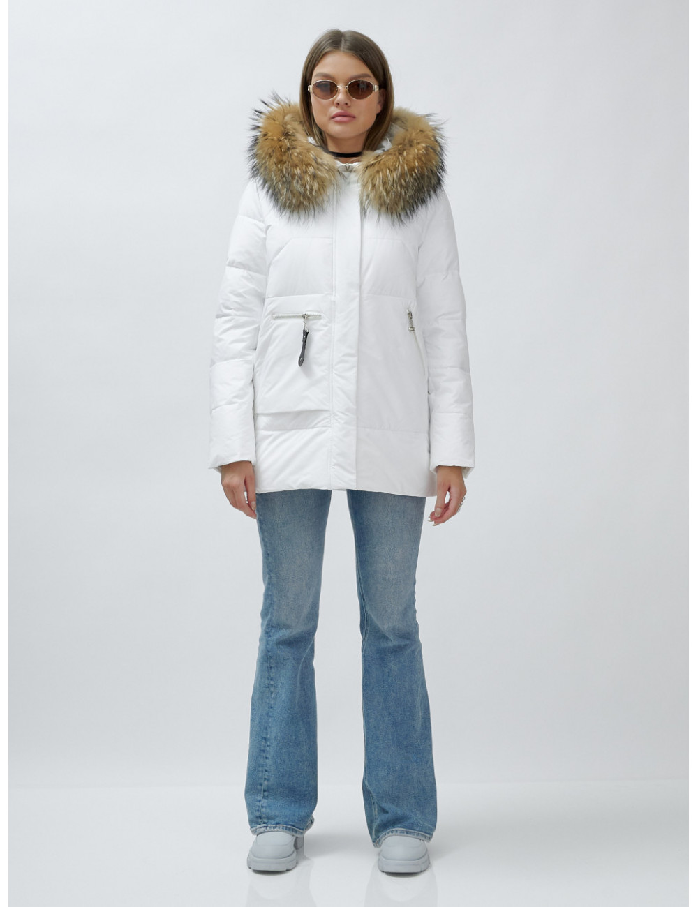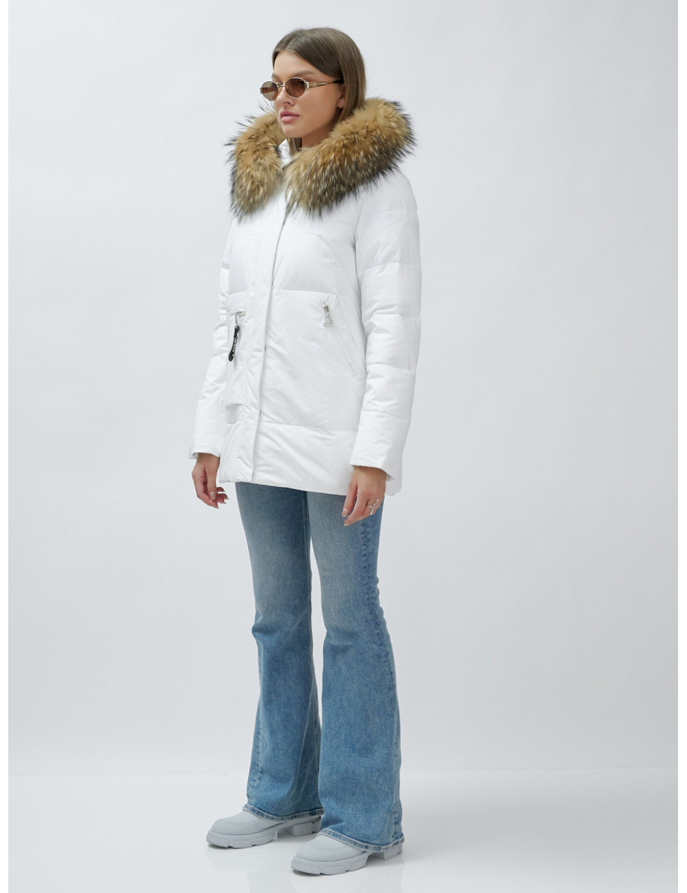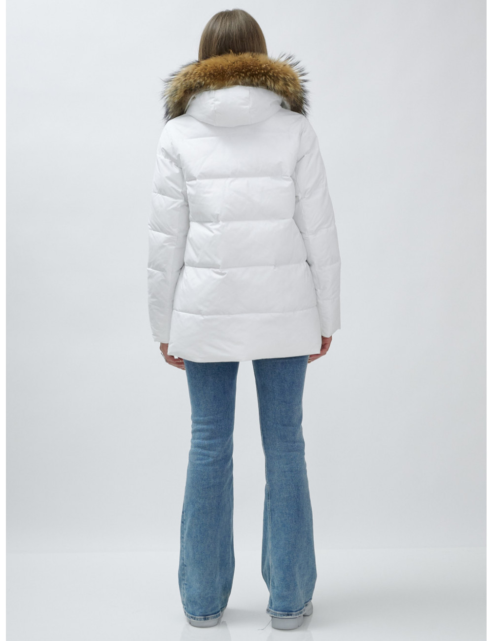 Этот пуховик станет отличным дополнением к повседневному или кэжуал образу. Он гармонично сочетается с джинсами, утеплёнными брюками и ботинками на низком каблуке. Также пуховик можно надеть на вечернюю прогулку или встречу с друзьями. Доставка по Москве и Московской области Пуховик женский зимний с мехом енота премиум-класса белый