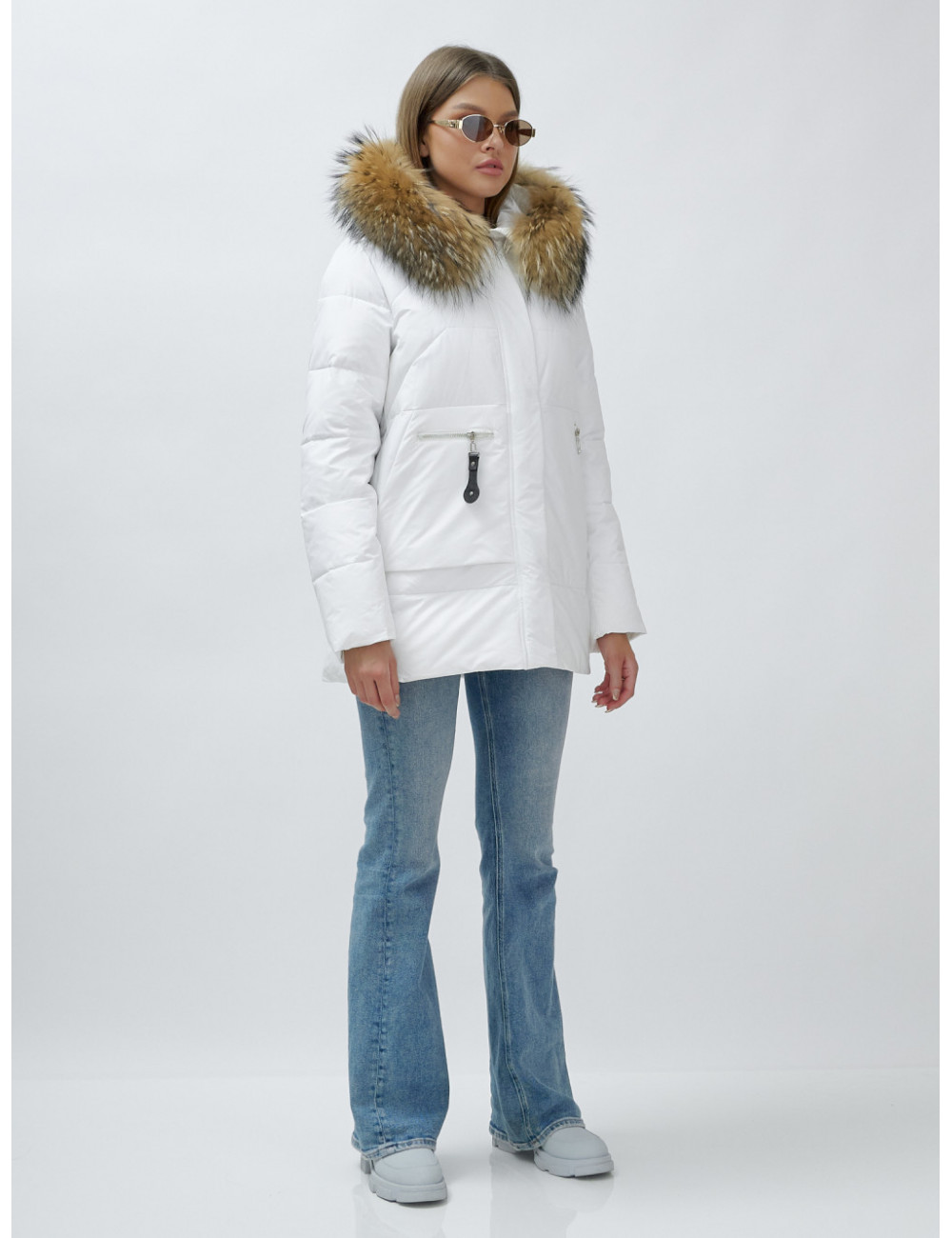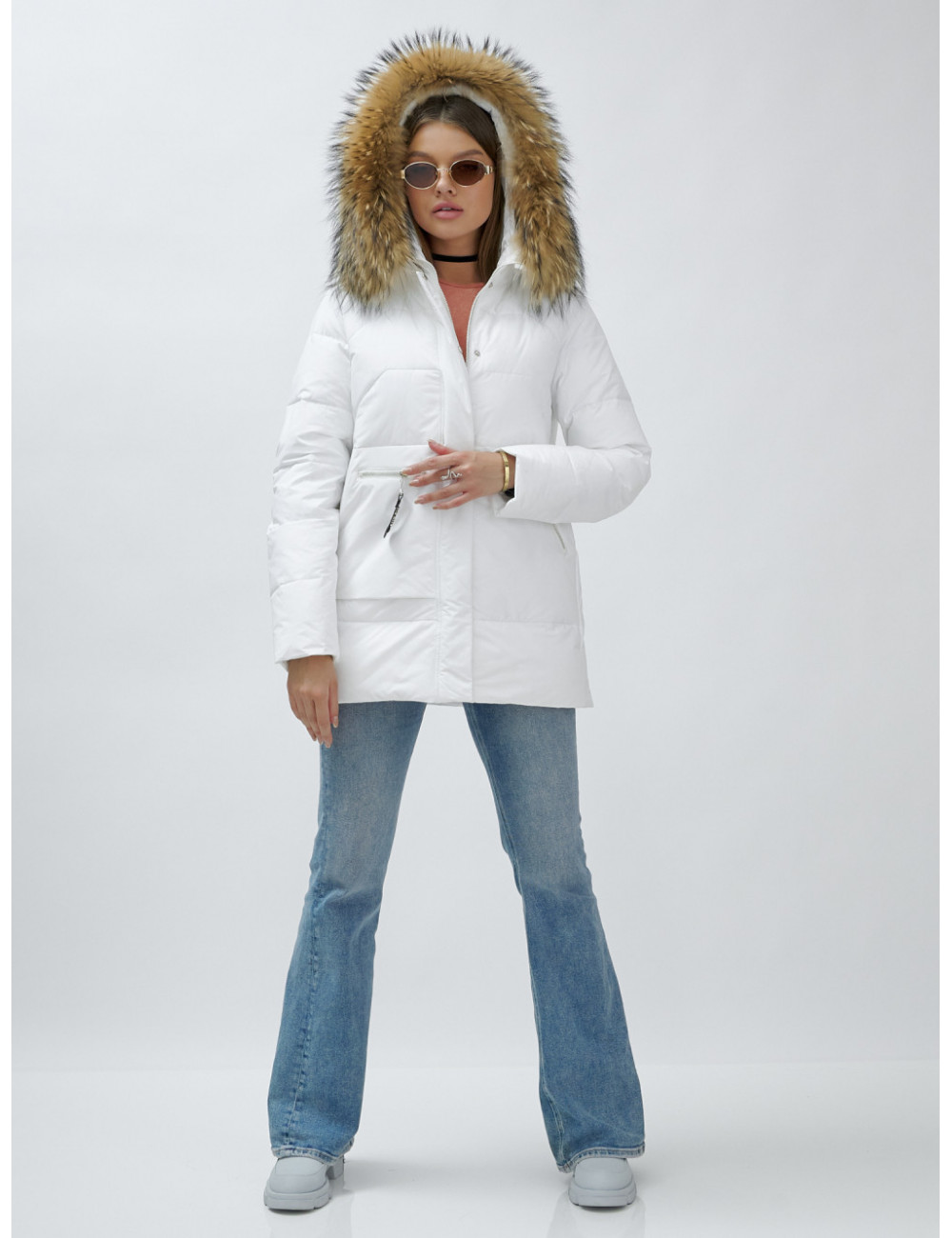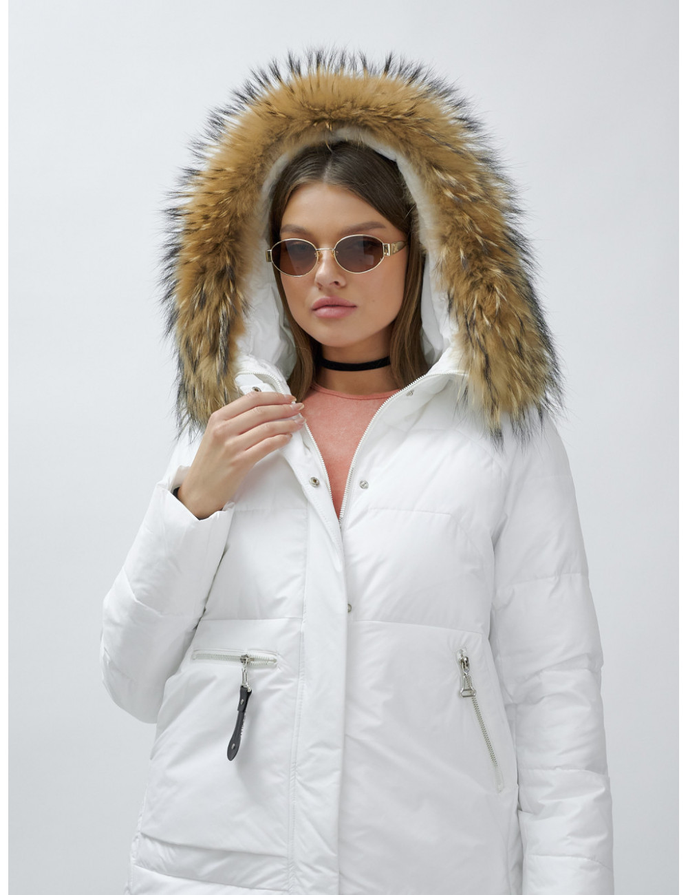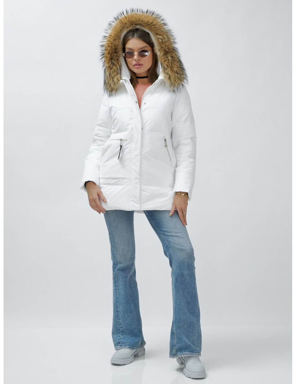 Этот пуховик станет отличным дополнением к повседневному или кэжуал образу. Он гармонично сочетается с джинсами, утеплёнными брюками и ботинками на низком каблуке. Также пуховик можно надеть на вечернюю прогулку или встречу с друзьями. Доставка по Москве и Московской области Пуховик женский зимний с мехом енота премиум-класса белый