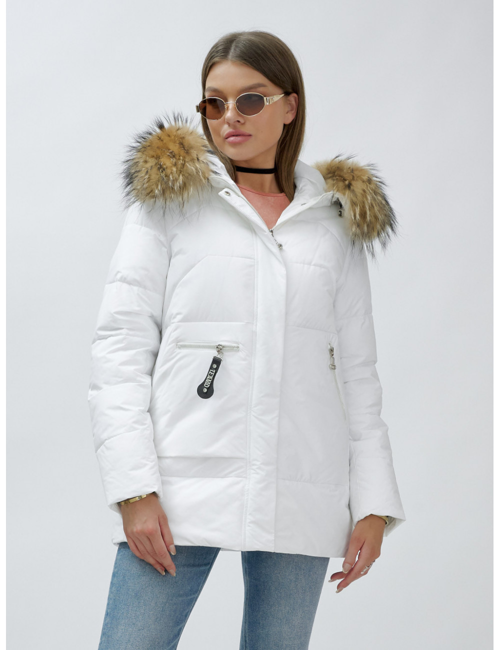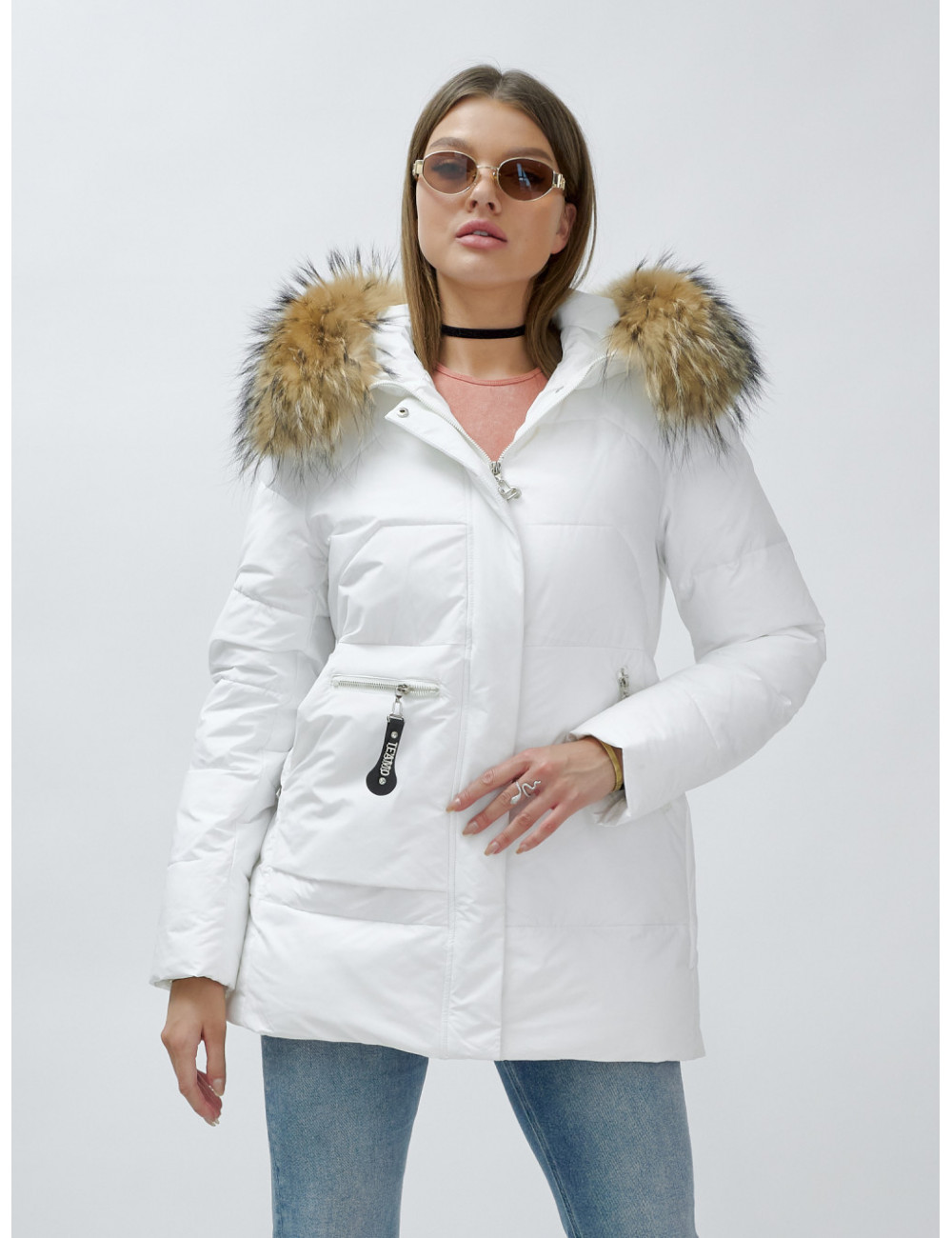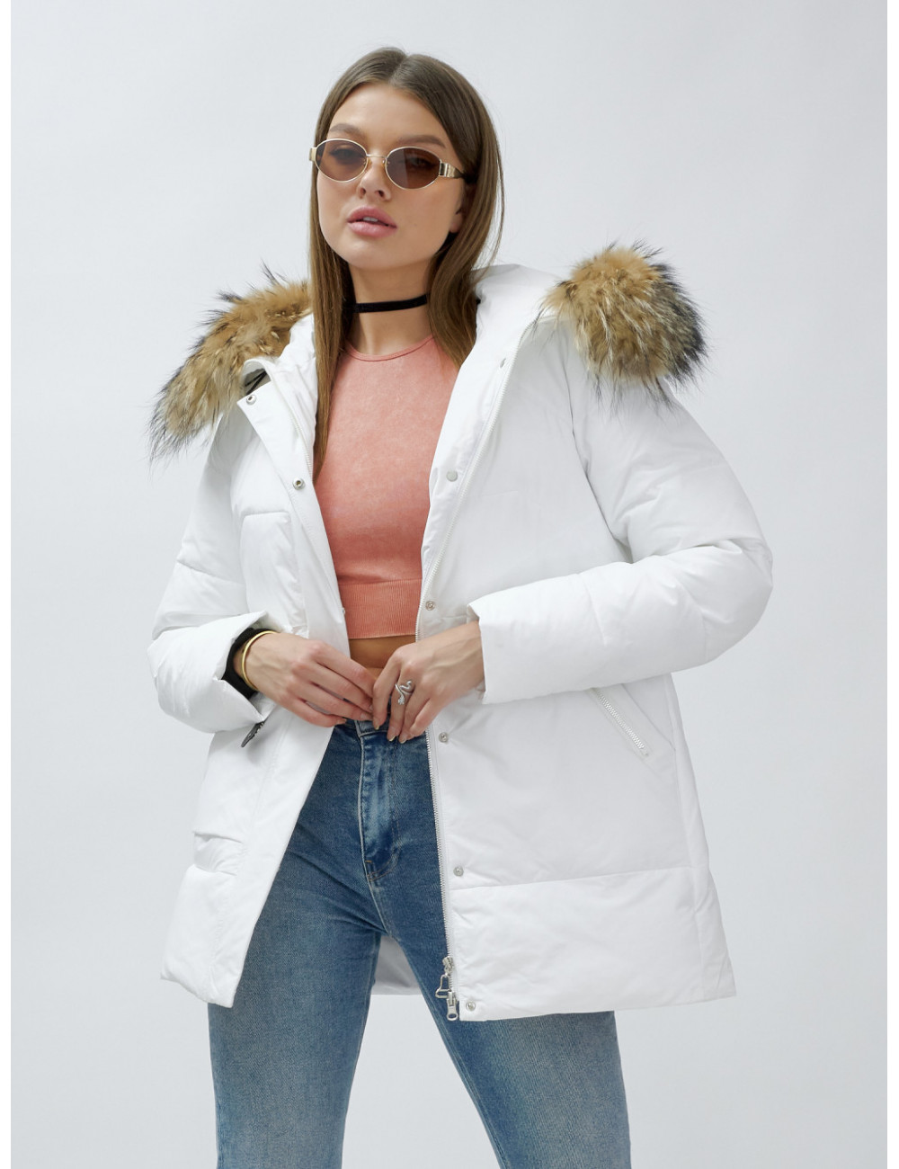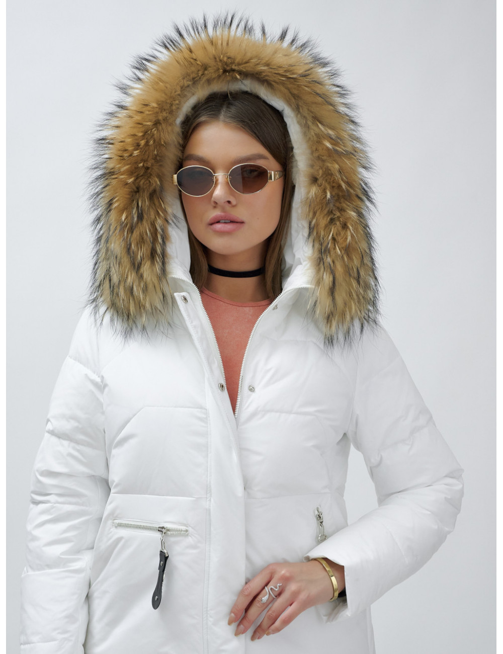 Этот пуховик станет отличным дополнением к повседневному или кэжуал образу. Он гармонично сочетается с джинсами, утеплёнными брюками и ботинками на низком каблуке. Также пуховик можно надеть на вечернюю прогулку или встречу с друзьями. Доставка по Москве и Московской области Пуховик женский зимний с мехом енота премиум-класса белый