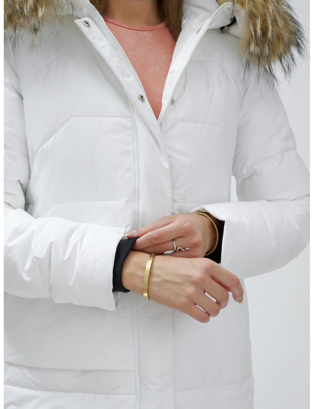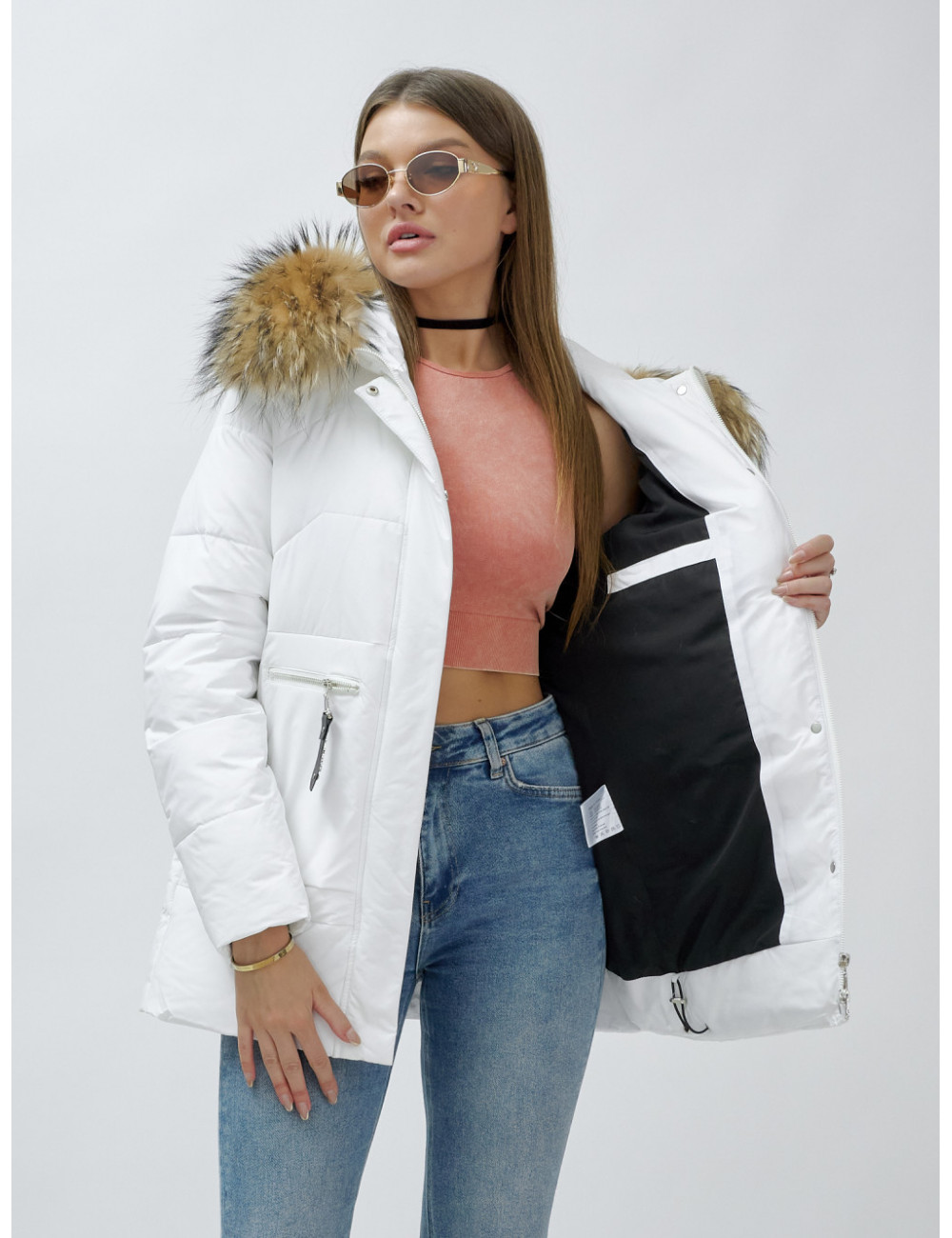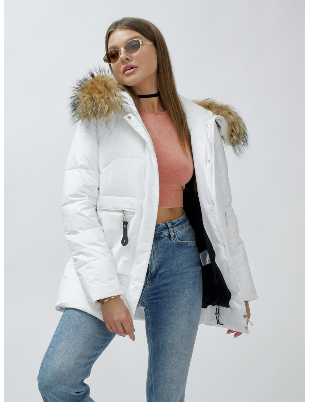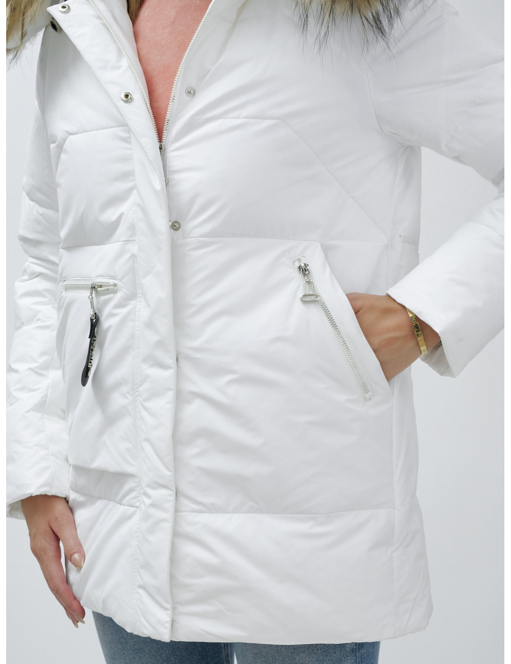 Этот пуховик станет отличным дополнением к повседневному или кэжуал образу. Он гармонично сочетается с джинсами, утеплёнными брюками и ботинками на низком каблуке. Также пуховик можно надеть на вечернюю прогулку или встречу с друзьями. Доставка по Москве и Московской области Пуховик женский зимний с мехом енота премиум-класса белый