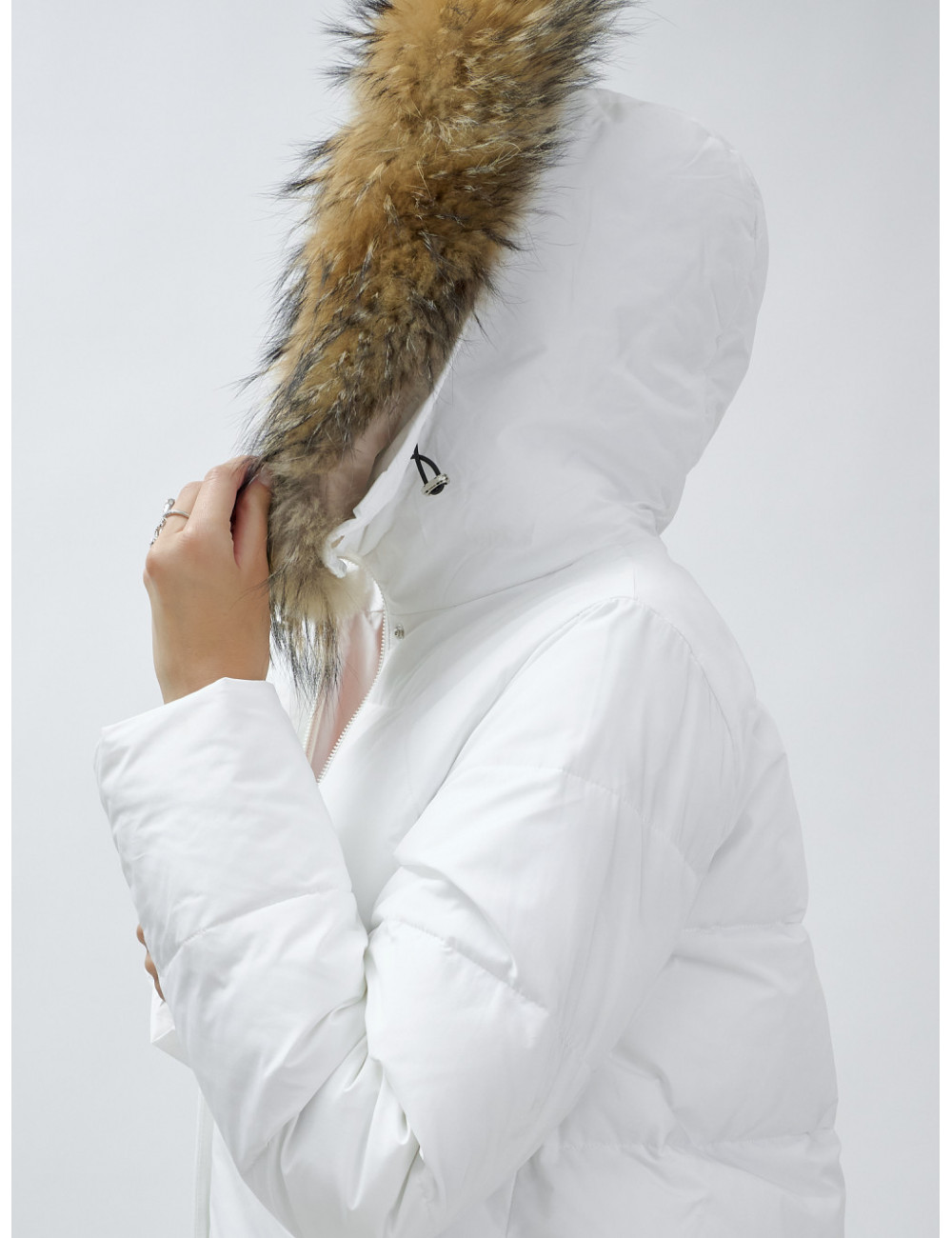 Зимний женский пуховик премиум-класса с натуральной опушкой из меха енота