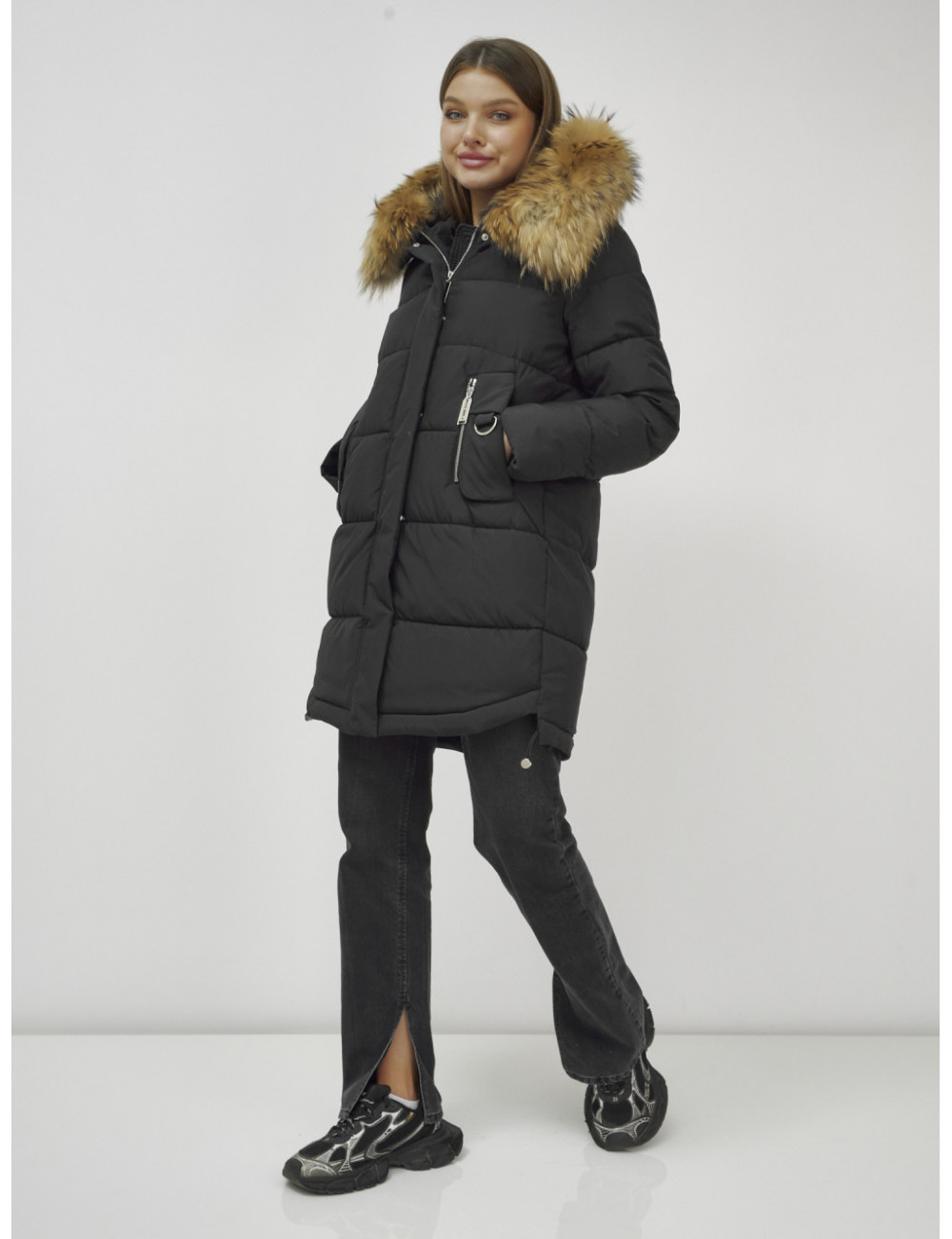 Не упустите возможность стать обладательницей этого стильного и функционального пуховика! Доставка по Москве и Московской области Пуховик женский зимний с мехом енота премиум-класса, чёрный.