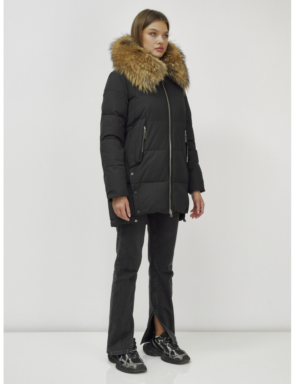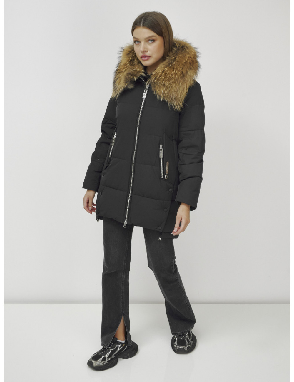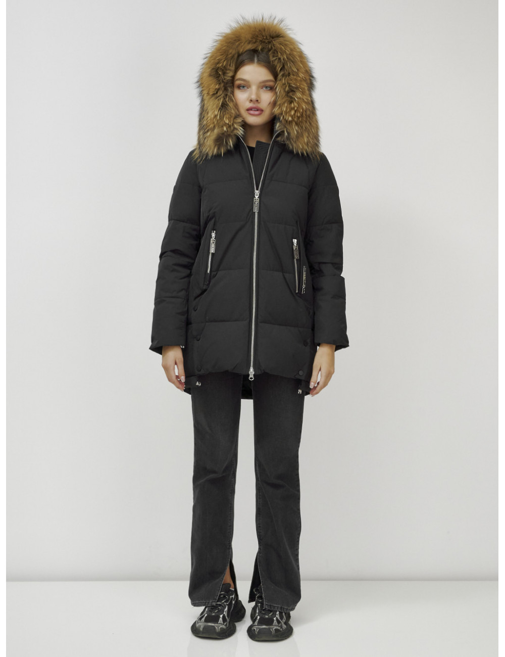 Купить за 23952 ₽ в Москве Пуховик женский зимний с мехом енота премиум-класса, чёрный