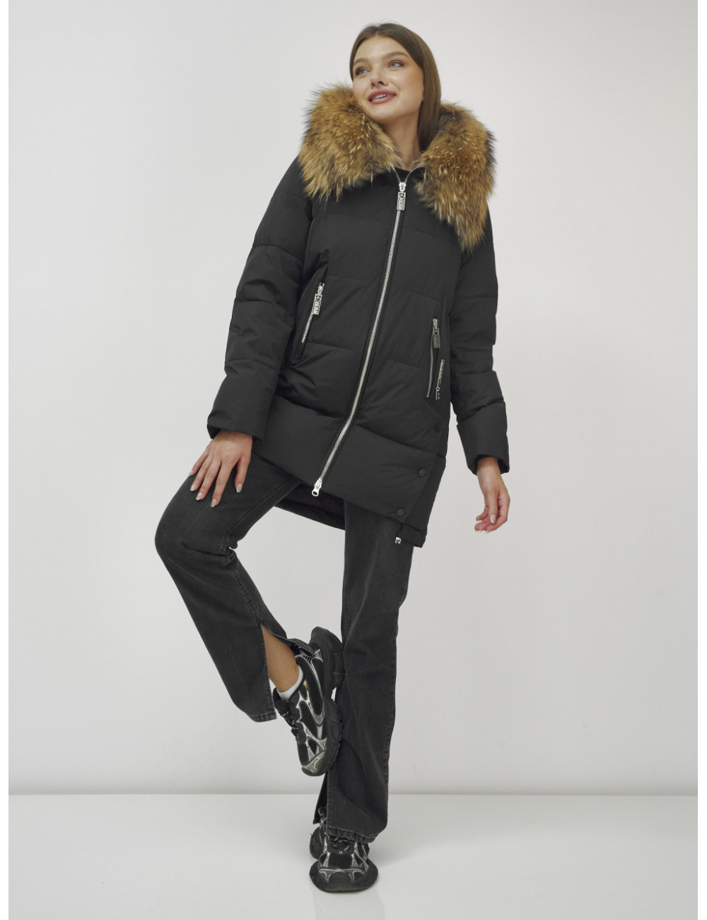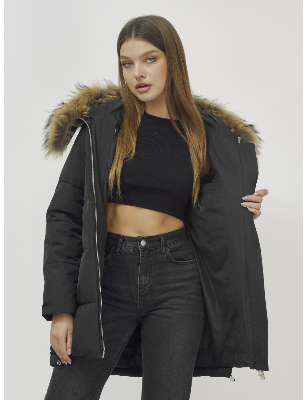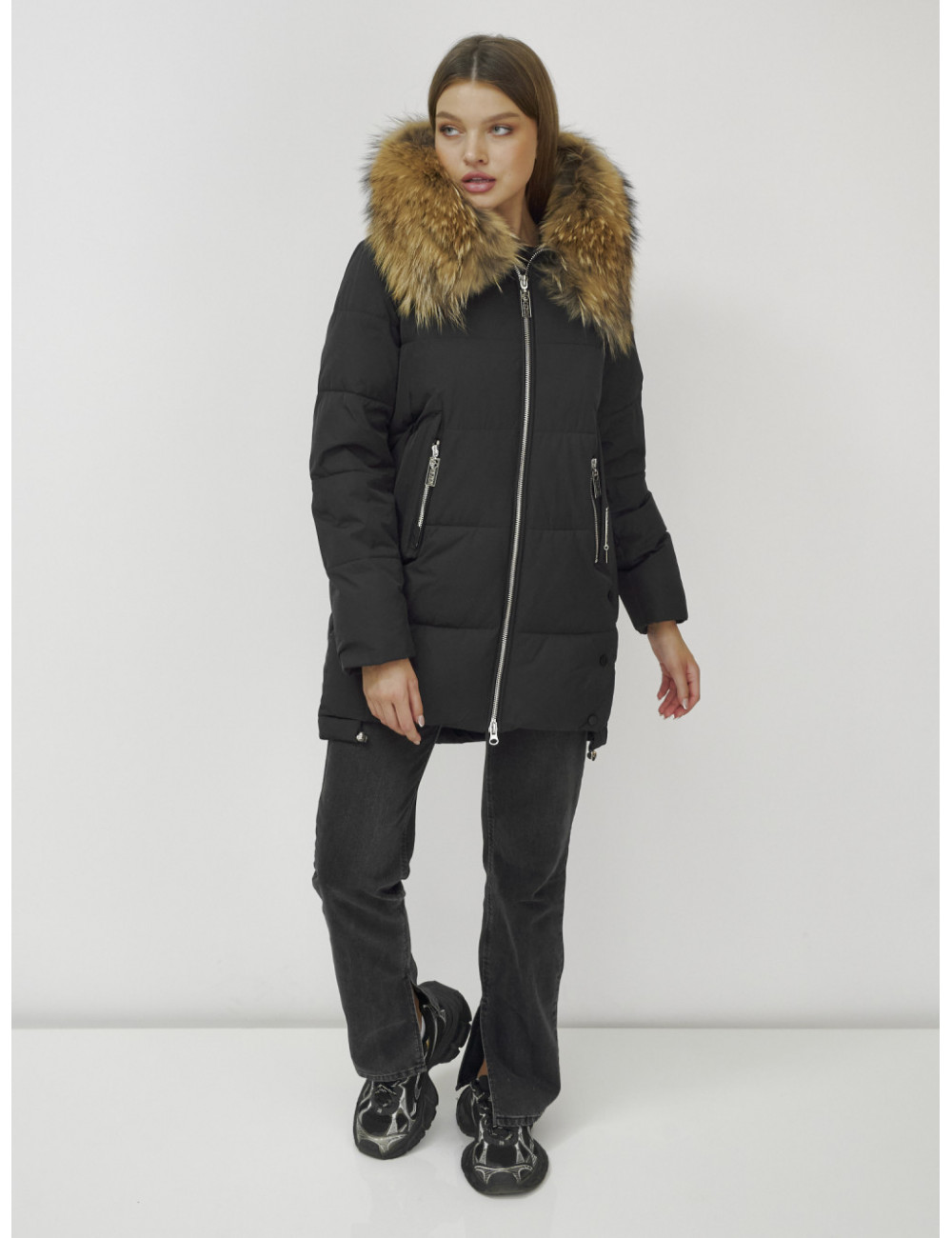 Купить за 23952 ₽ в Москве Пуховик женский зимний с мехом енота премиум-класса, чёрный