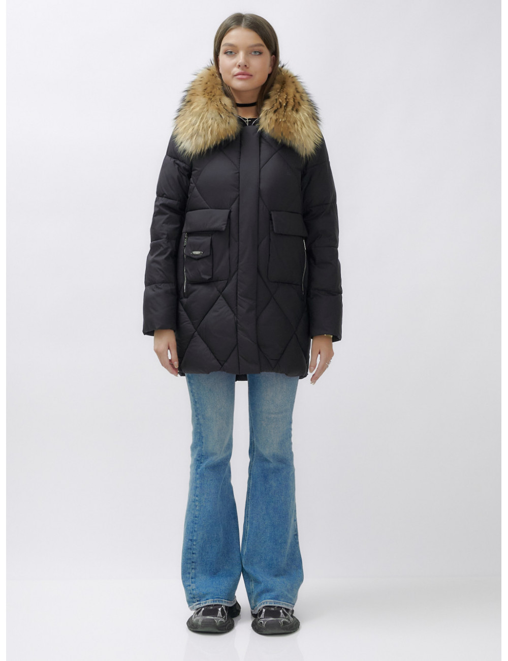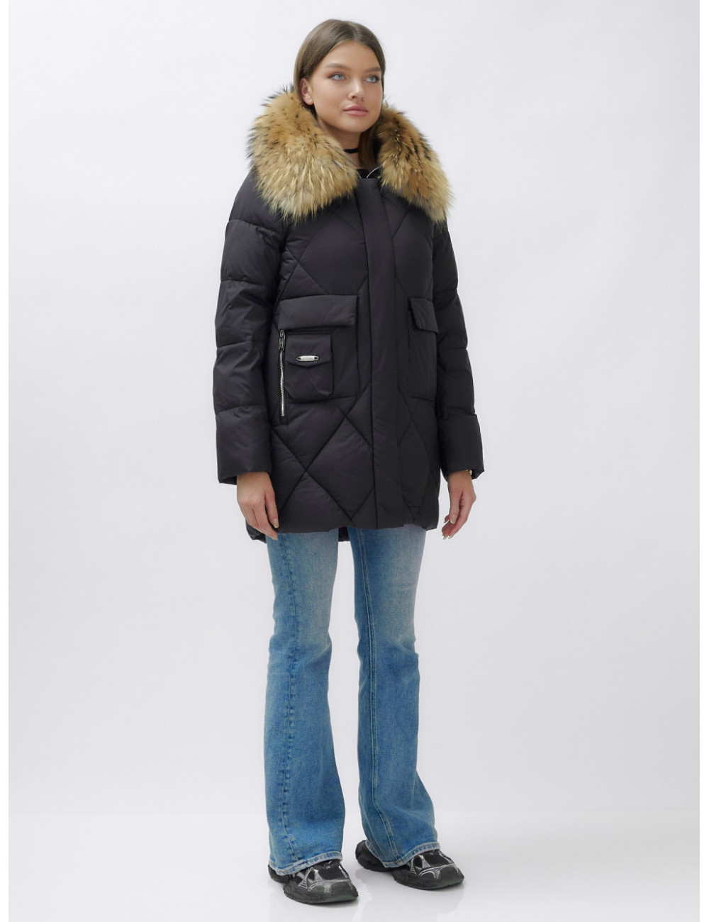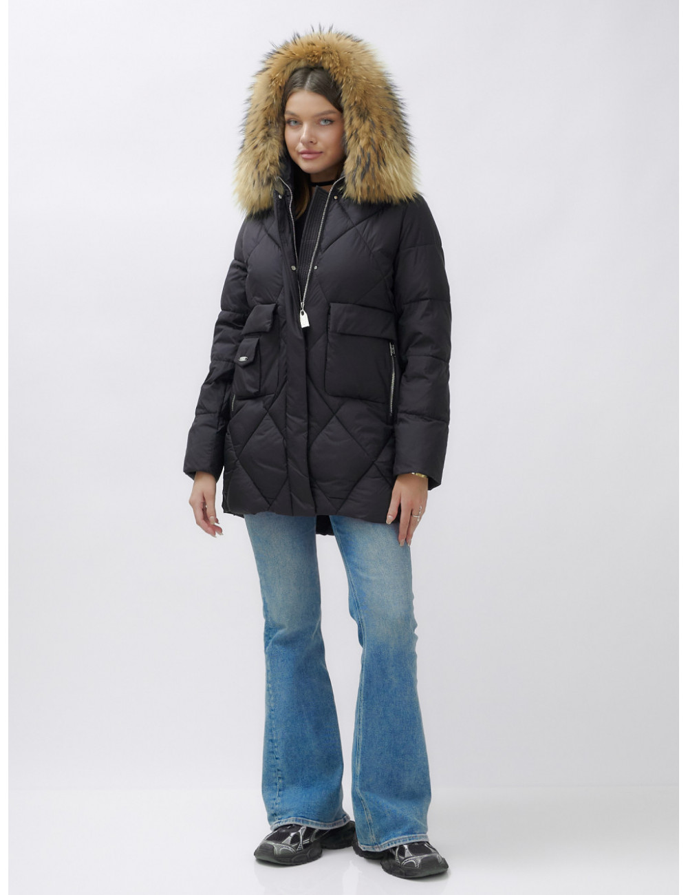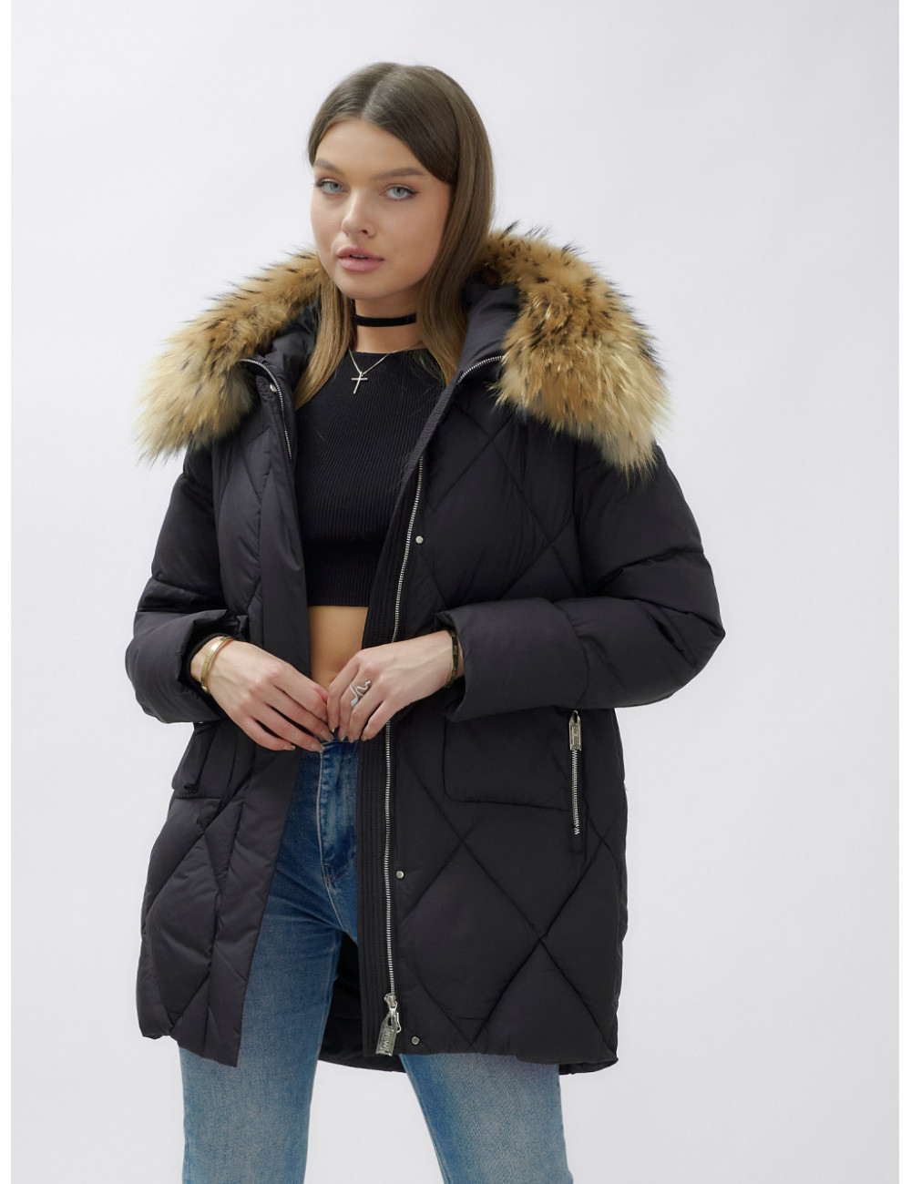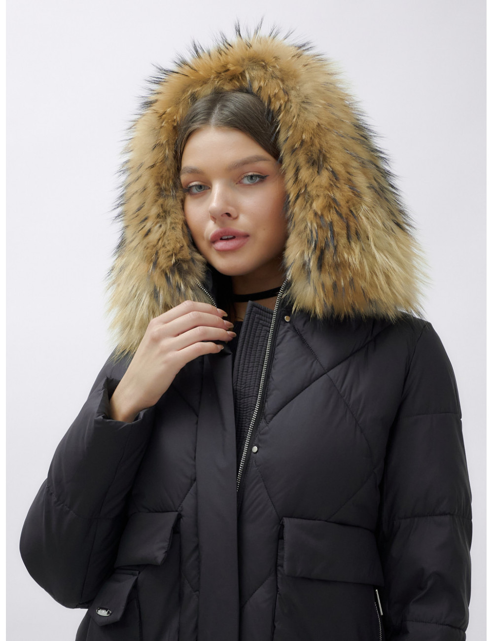 Для сохранения формы и материала пуховика рекомендуется химчистка. При необходимости можно использовать сухую чистку, но обязательно следуйте указаниям на ярлыке. Доставка по Москве и Московской области Пуховик женский зимний с мехом енота премиум-класса, чёрный