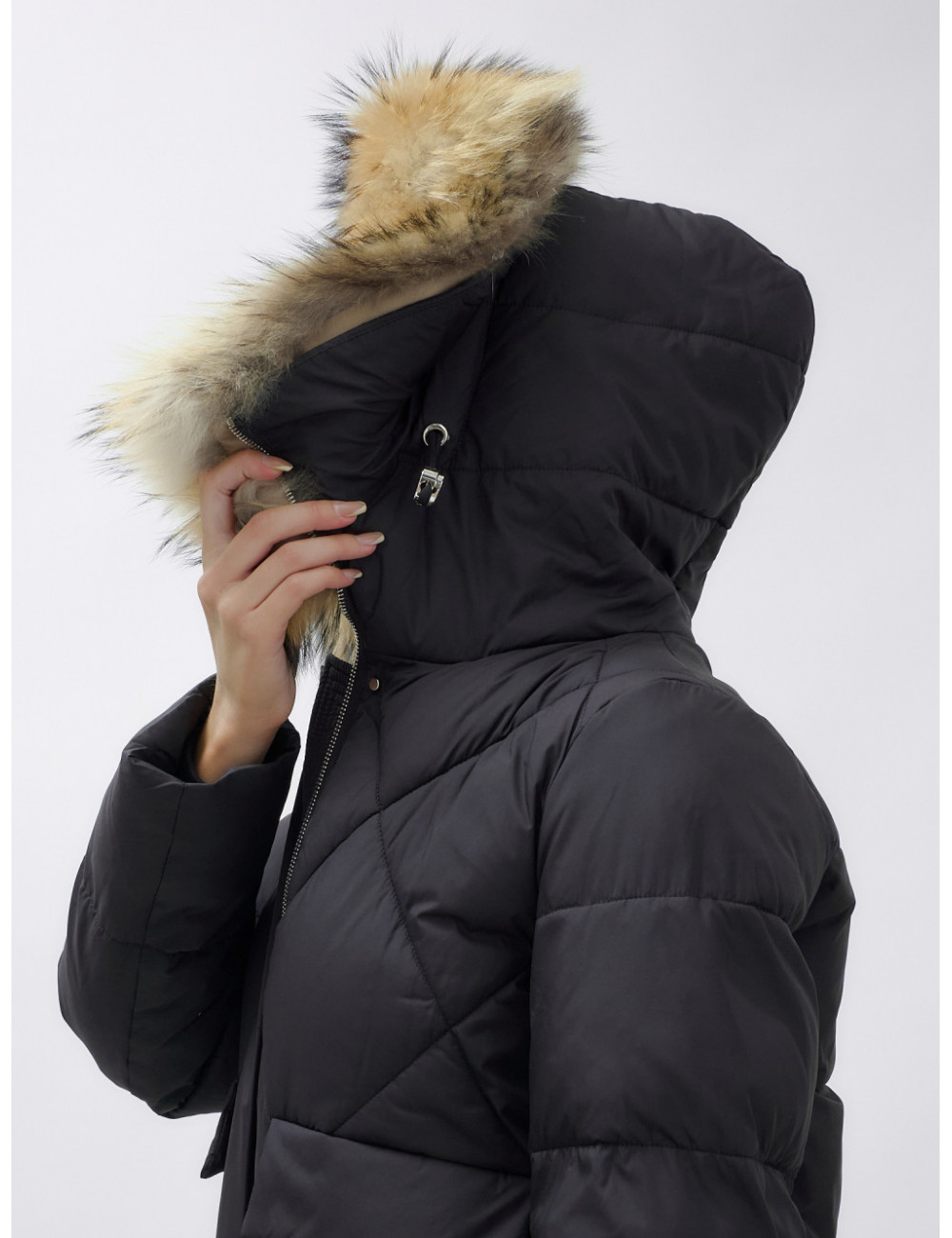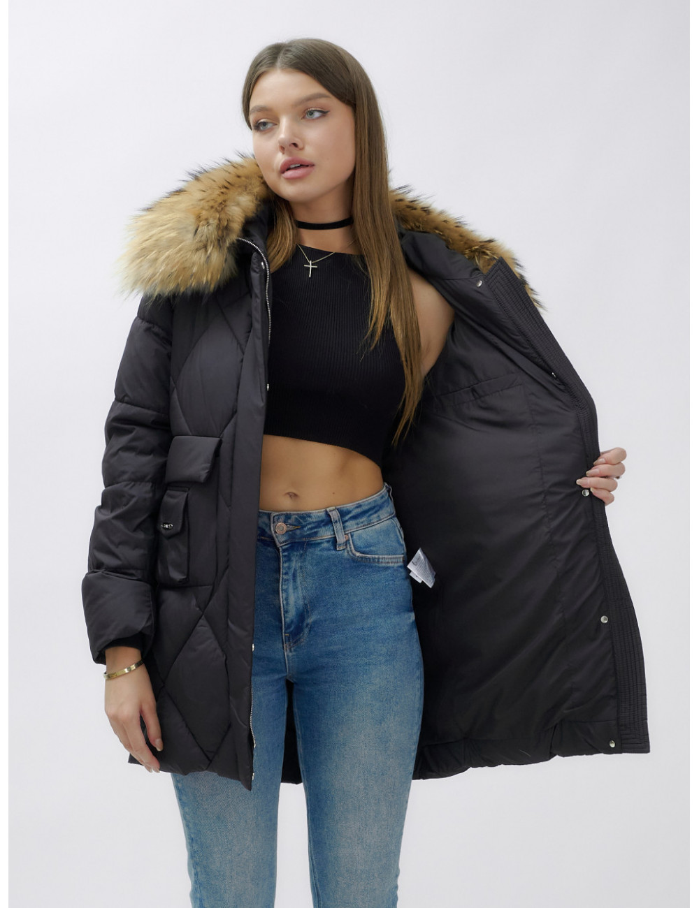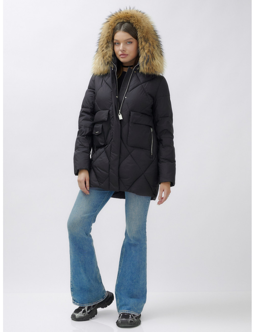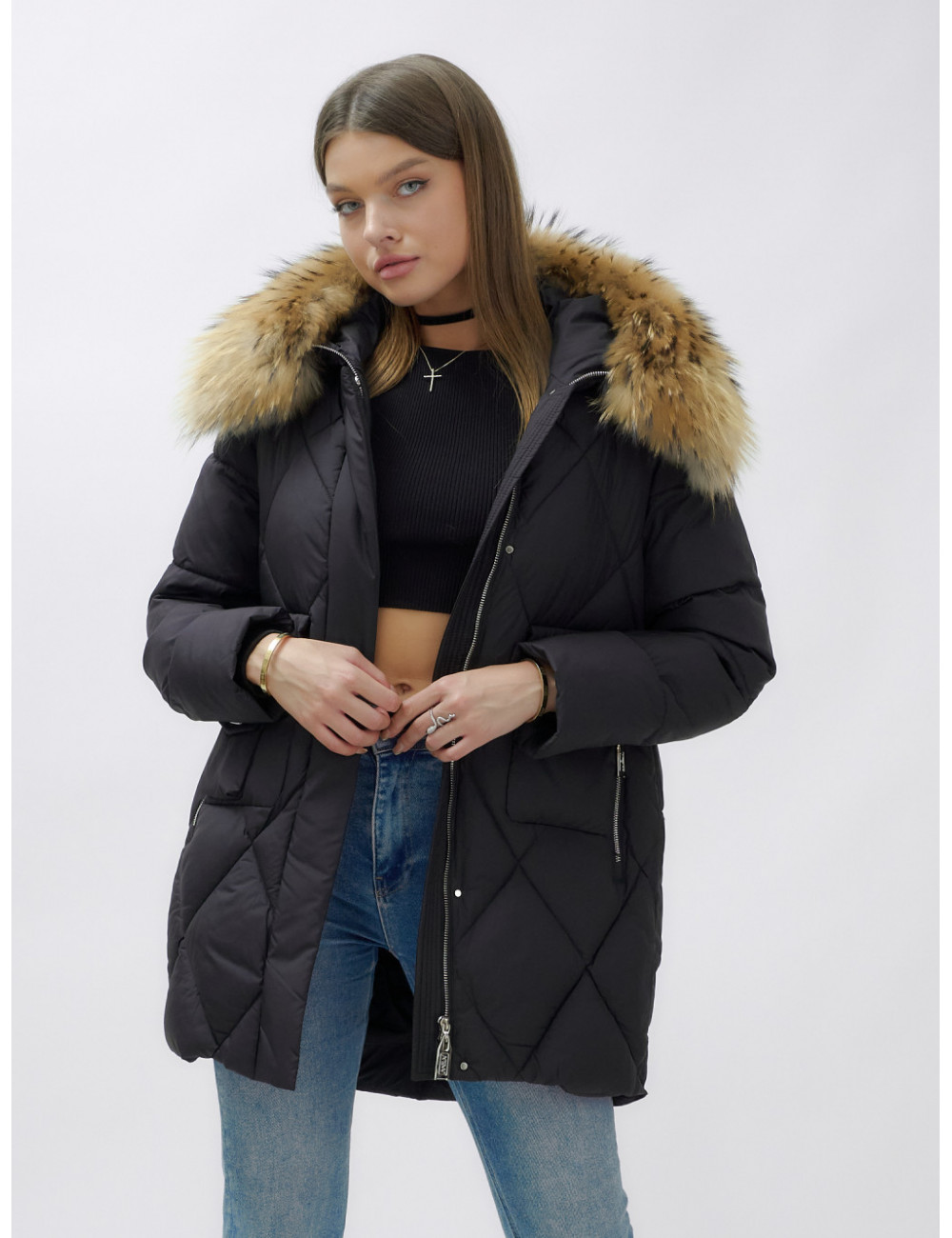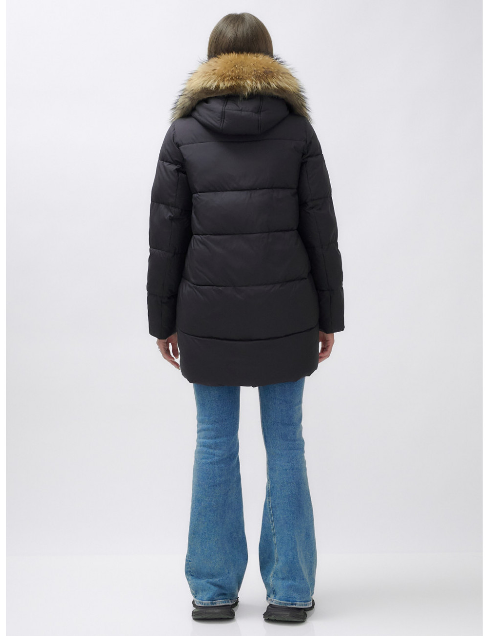 Для сохранения формы и материала пуховика рекомендуется химчистка. При необходимости можно использовать сухую чистку, но обязательно следуйте указаниям на ярлыке. Доставка по Москве и Московской области Пуховик женский зимний с мехом енота премиум-класса, чёрный