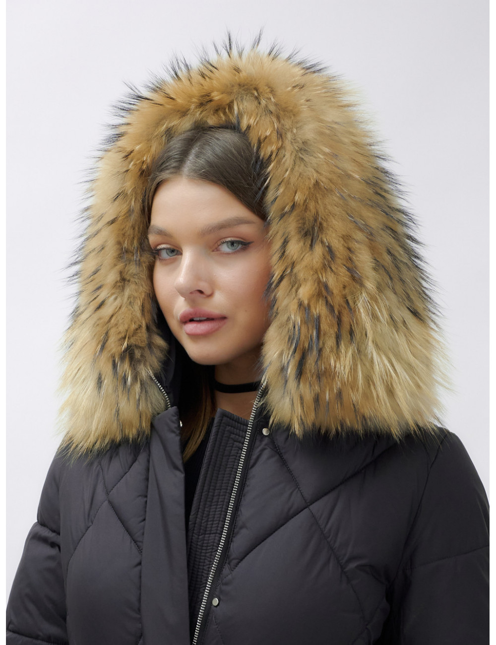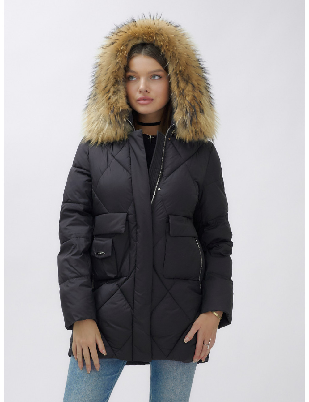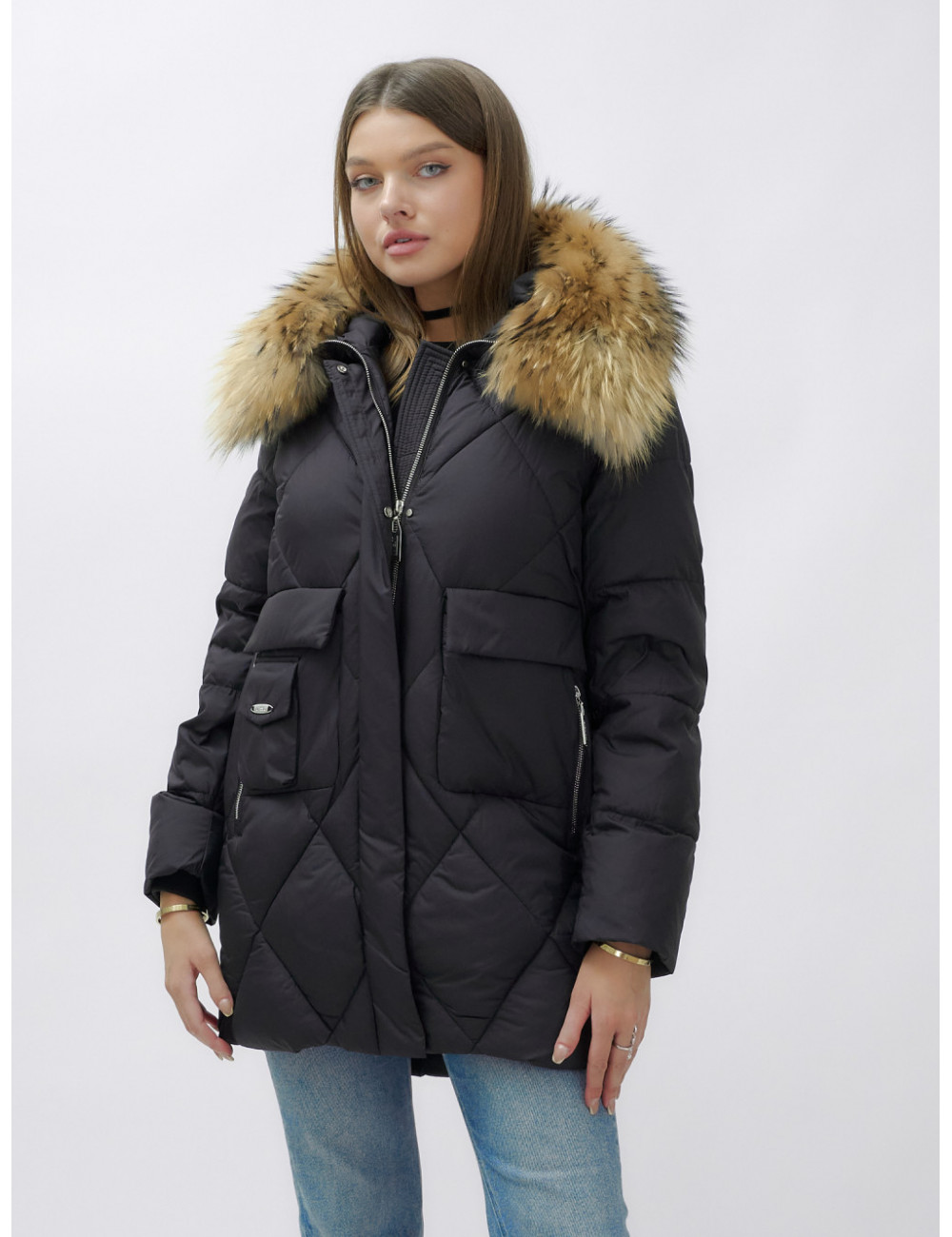 Пуховик для женщин премиум-класса с натуральным мехом енота