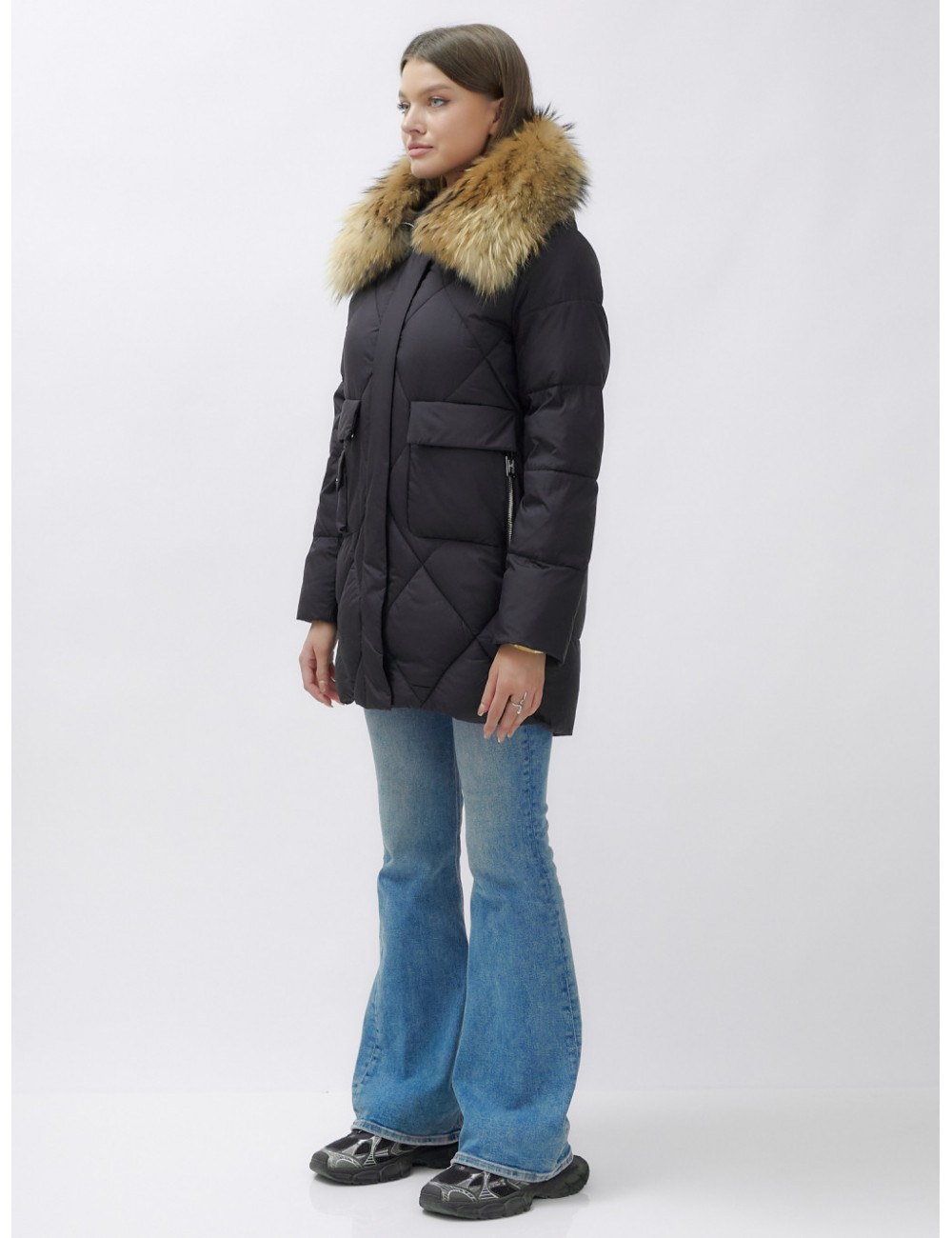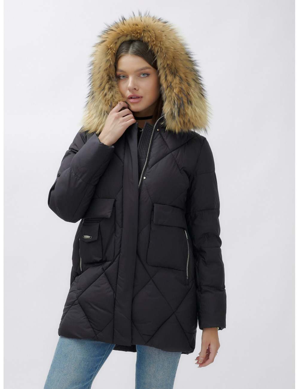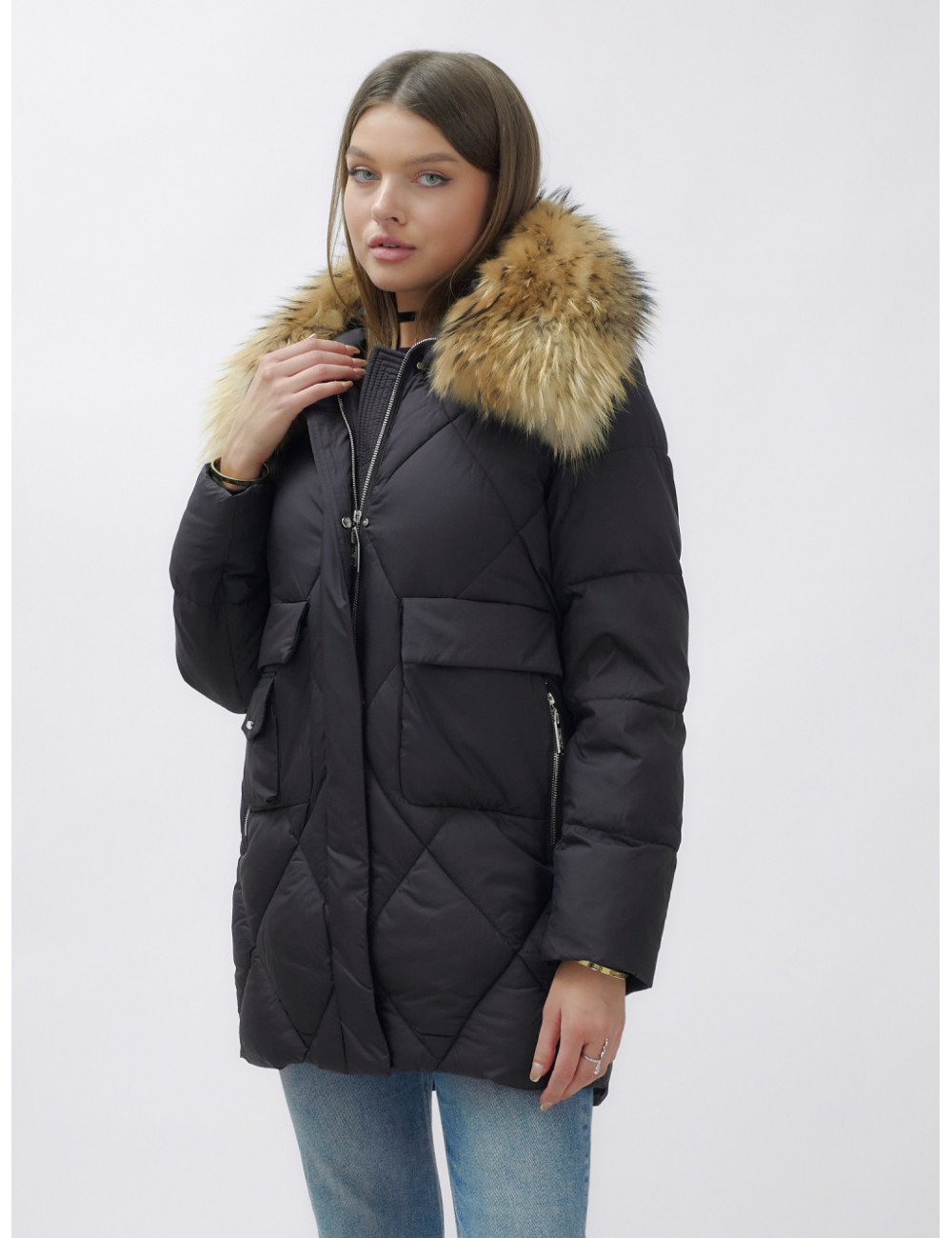 Пуховик для женщин премиум-класса с натуральным мехом енота