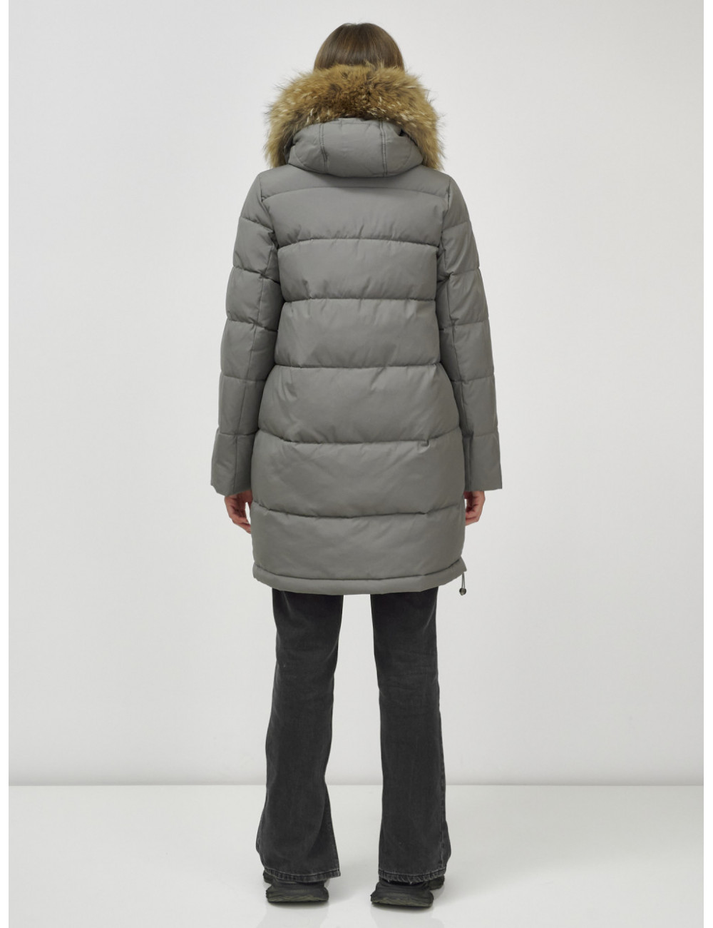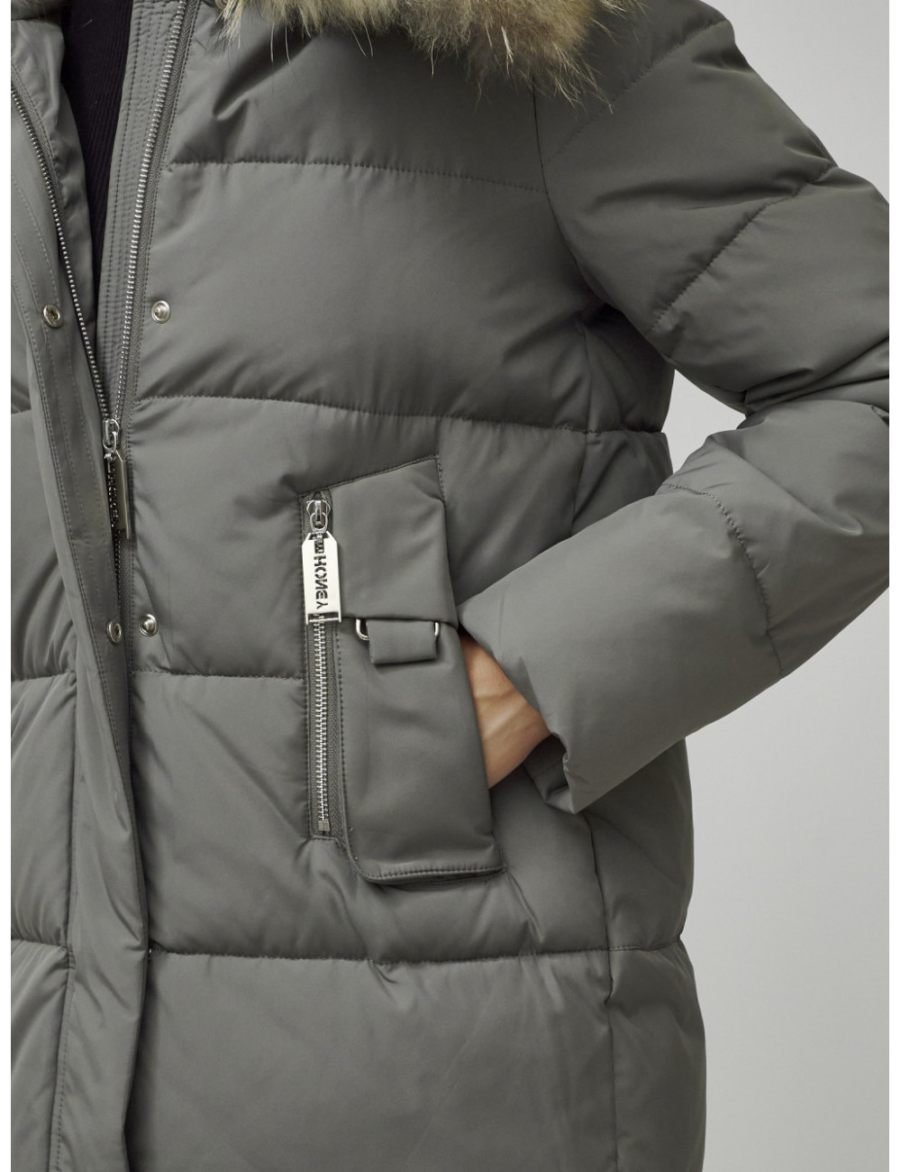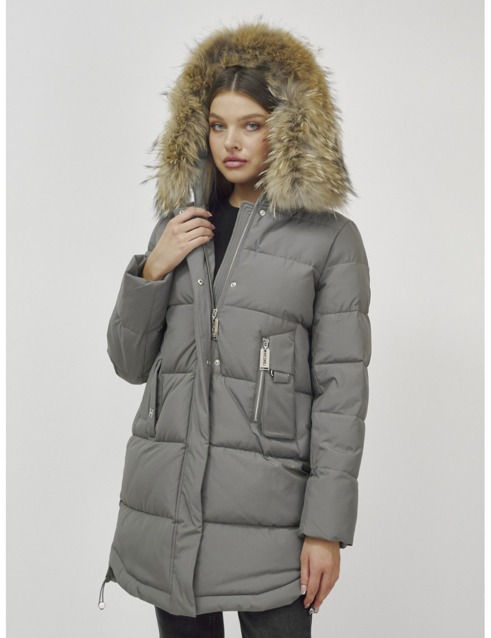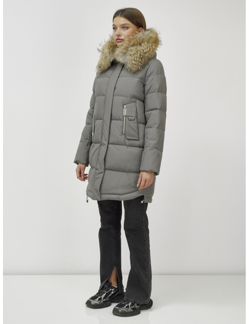 Пуховик можно сочетать с джинсами, брюками, платьями и юбками. Добавьте к нему шапку и перчатки из аналогичного материала для создания гармоничного образа. Доставка по Москве и Московской области Пуховик женский зимний с мехом енота премиум-класса хаки