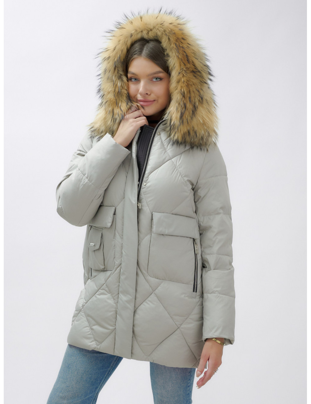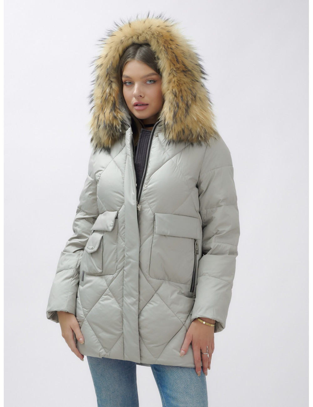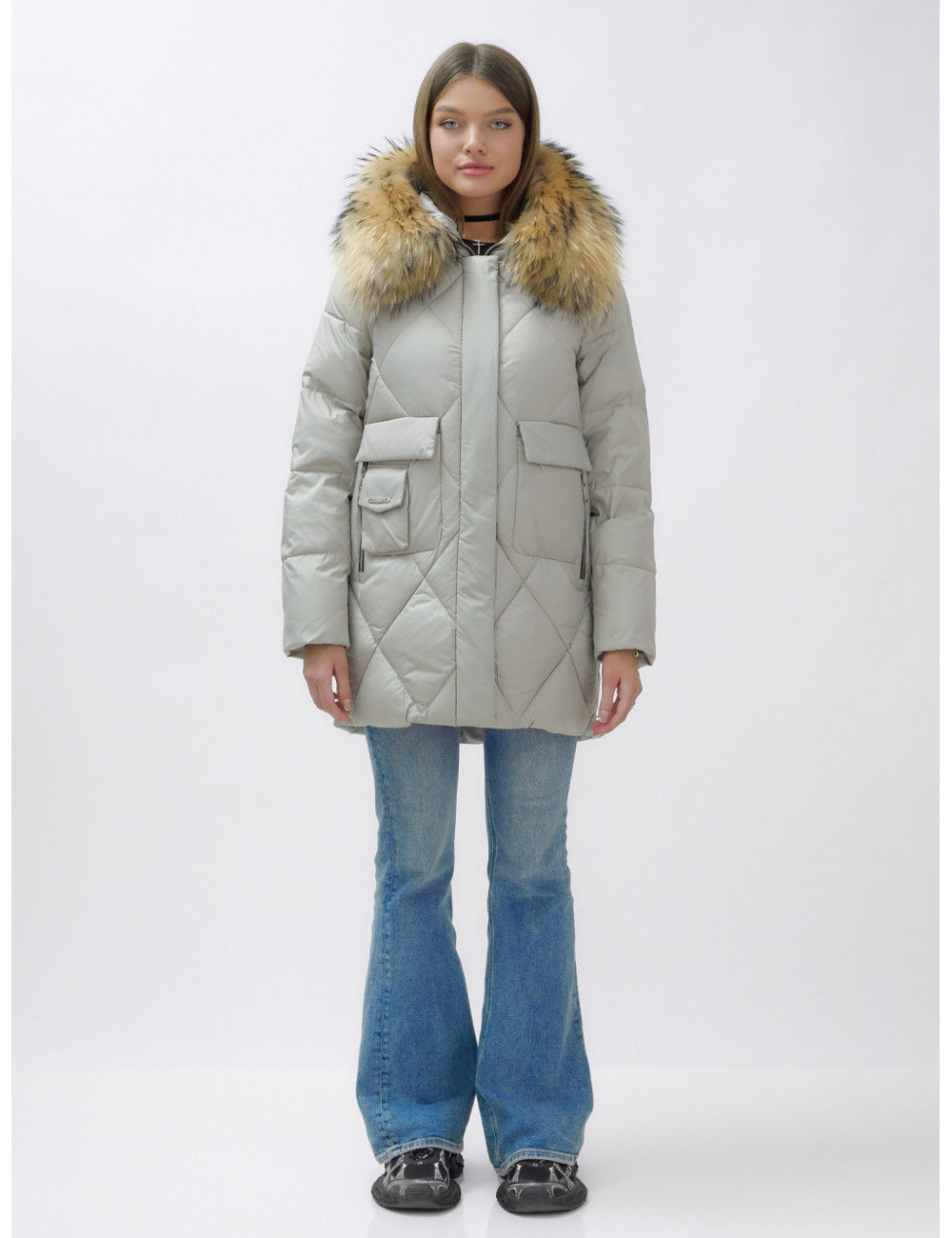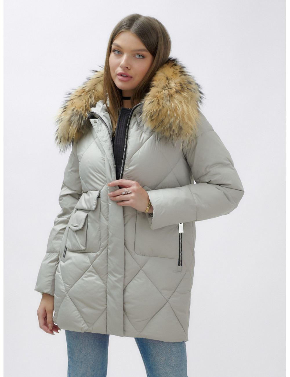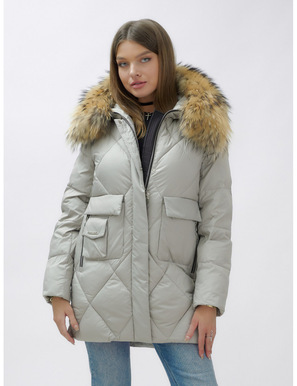 Не упустите шанс проявить свой вкус и стиль в холодное время года! Доставка по Москве и Московской области Пуховик женский зимний с мехом енота премиум-класса, серый.