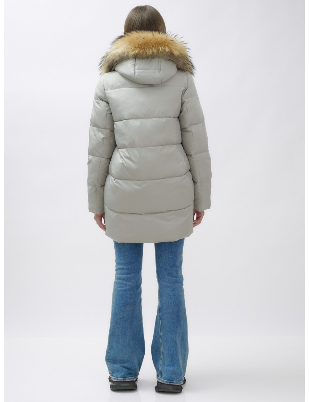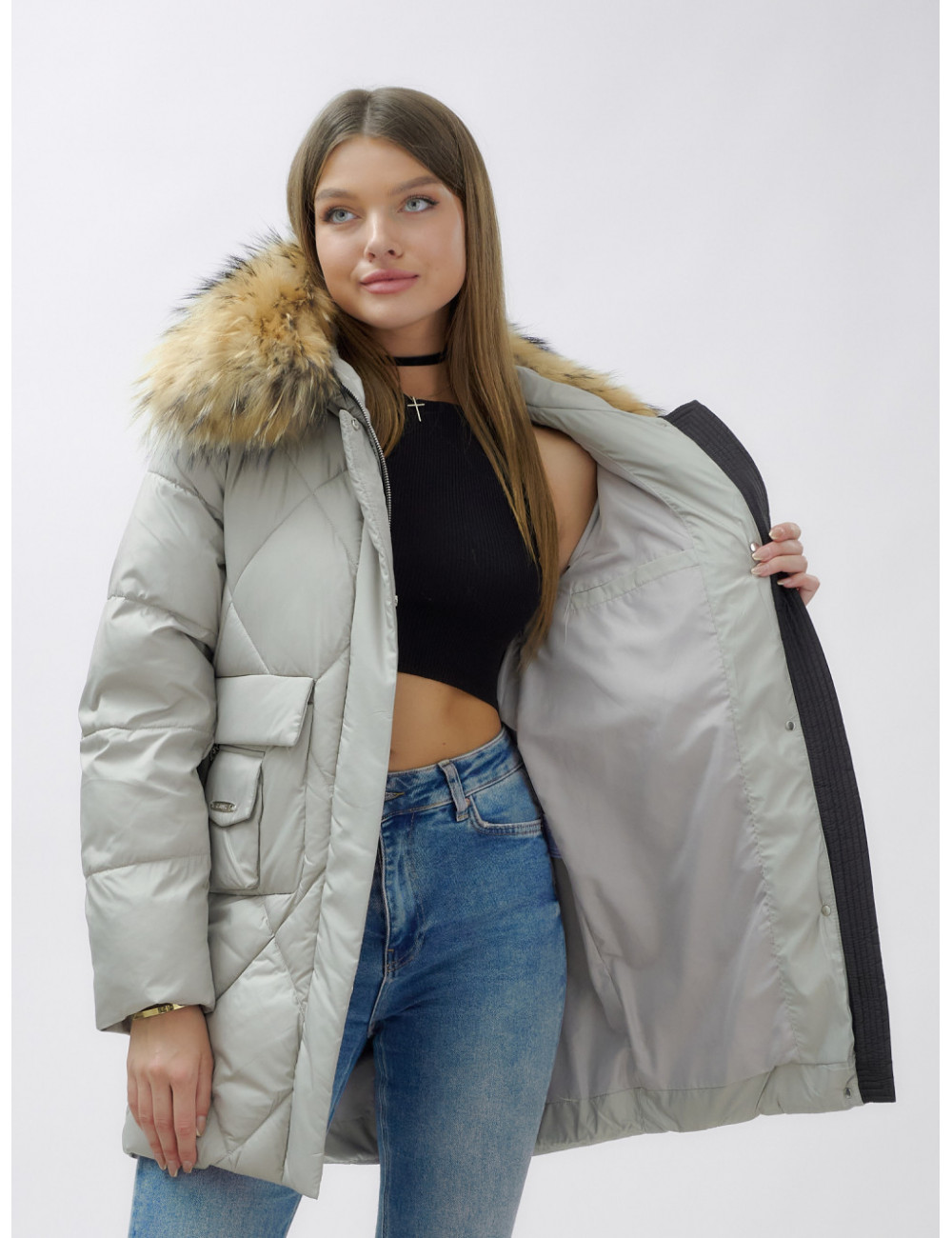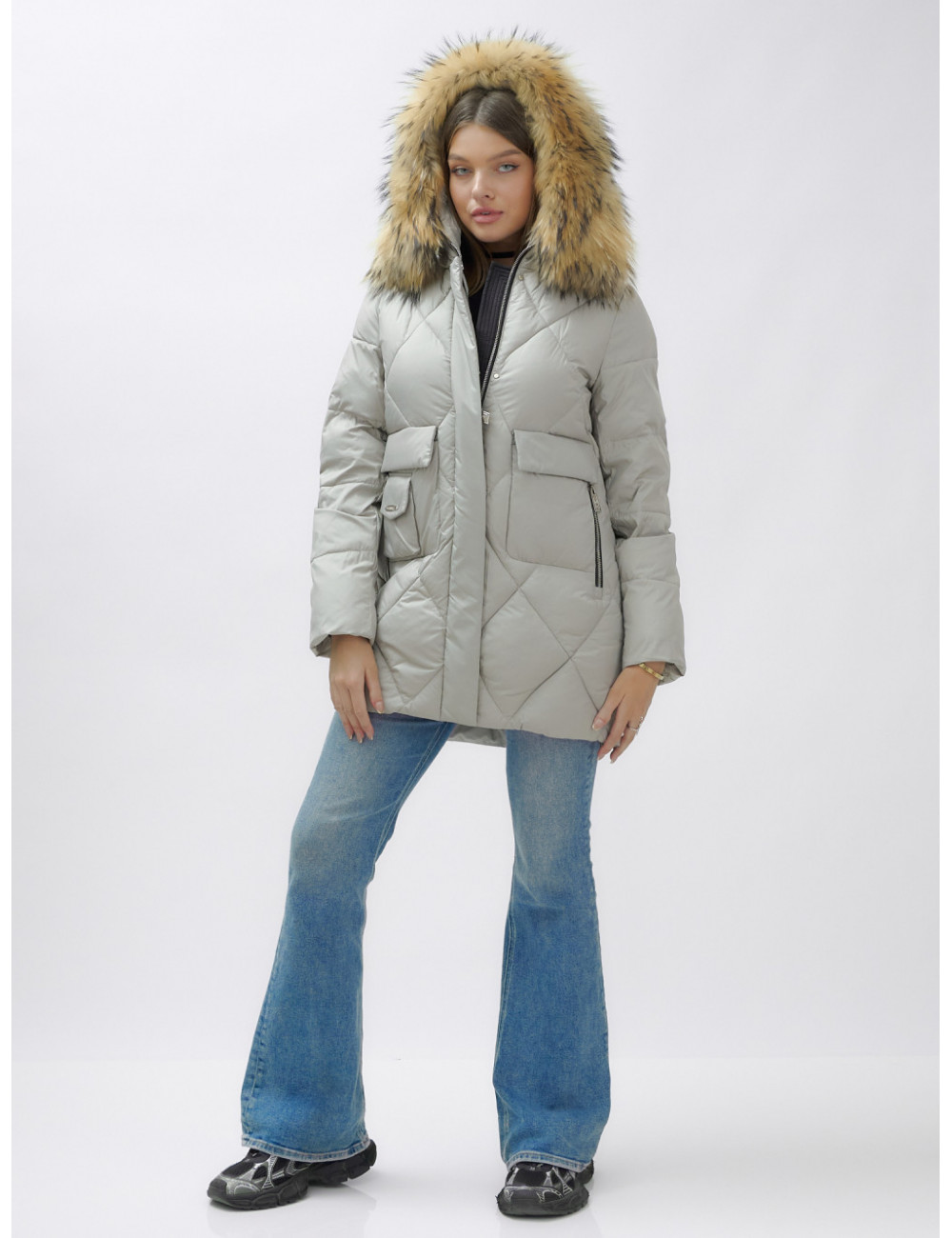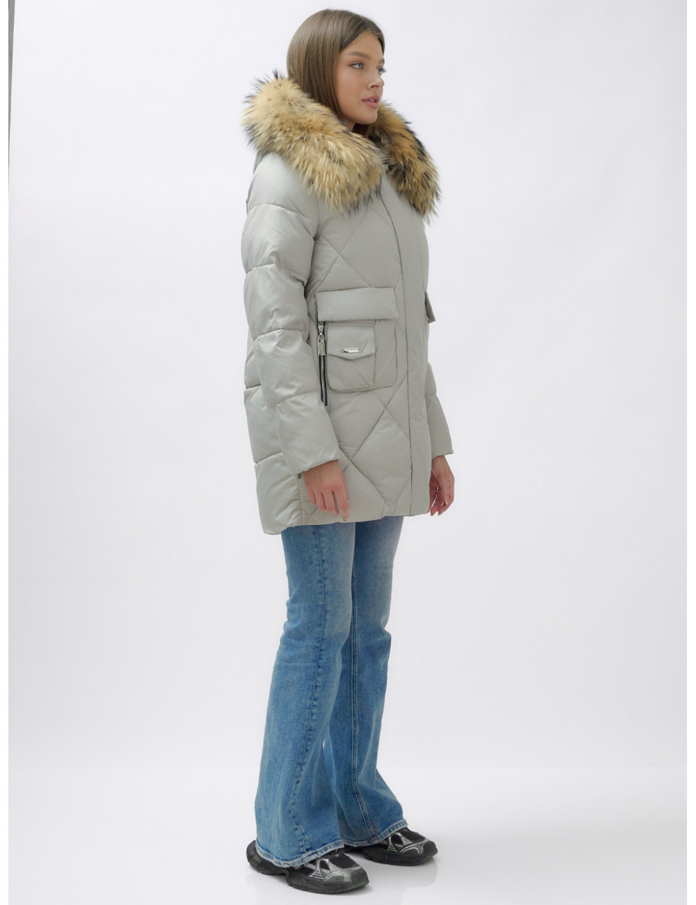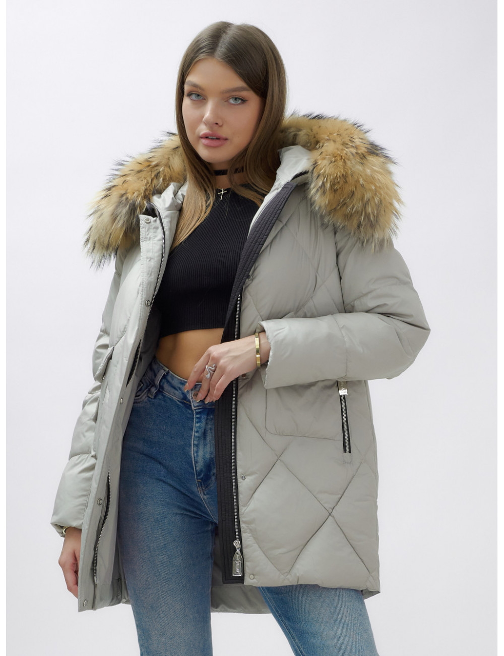 Не упустите шанс проявить свой вкус и стиль в холодное время года! Доставка по Москве и Московской области Пуховик женский зимний с мехом енота премиум-класса, серый.