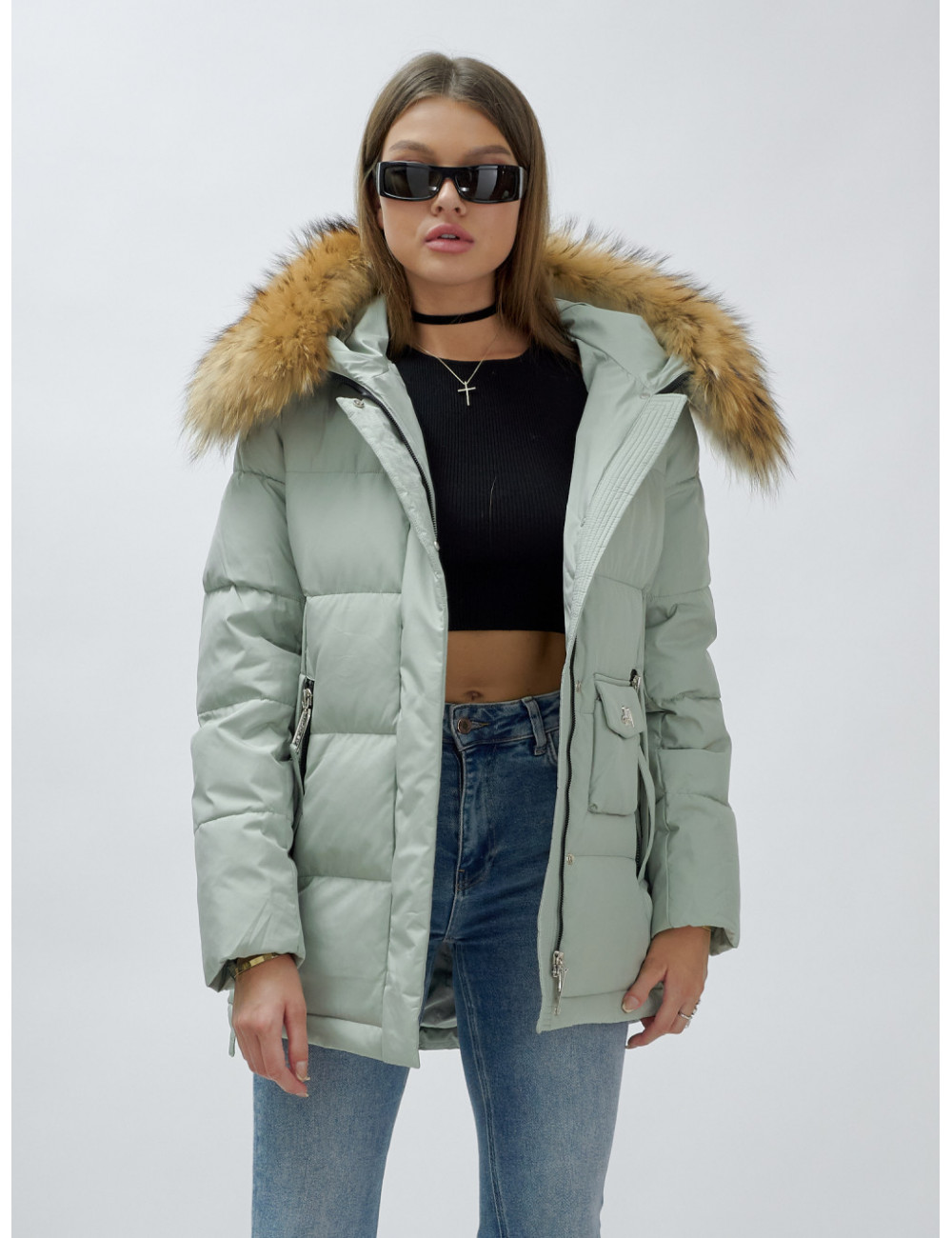 Пуховик женский зимний премиум-класса с натуральным мехом енота