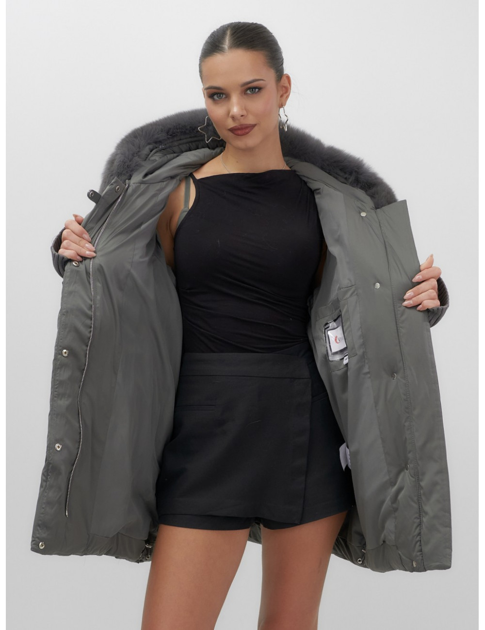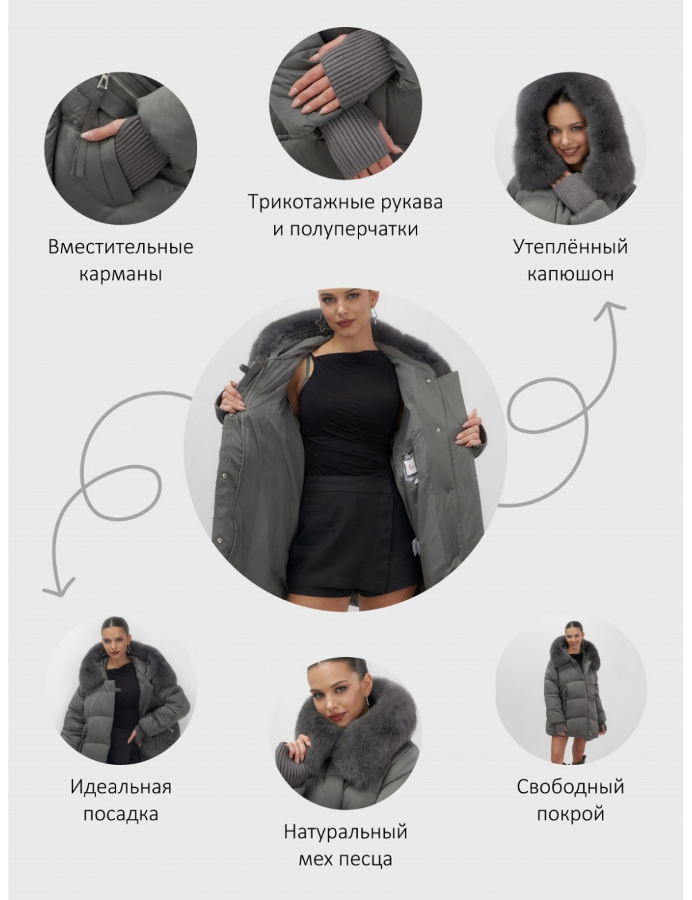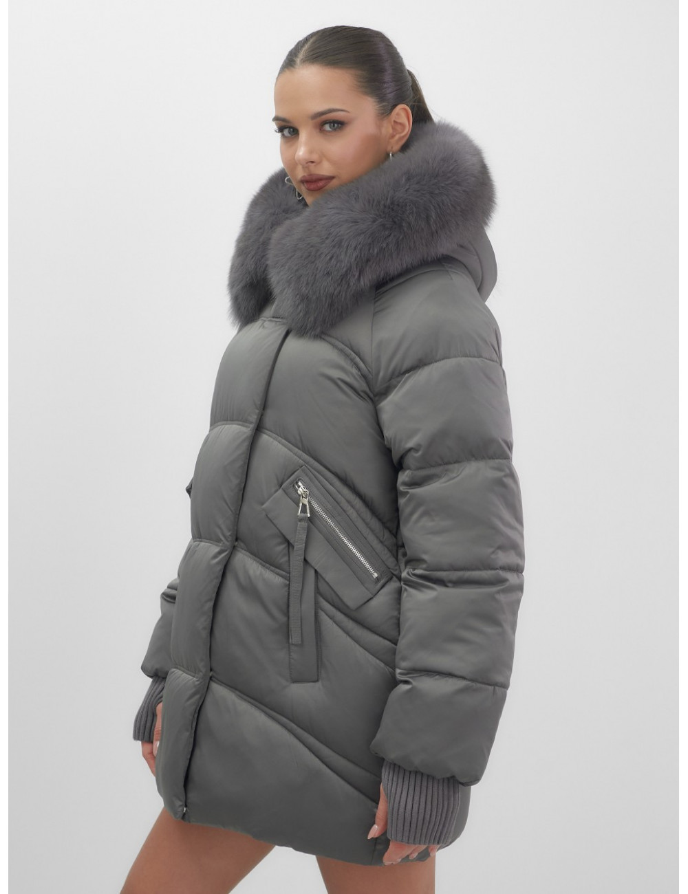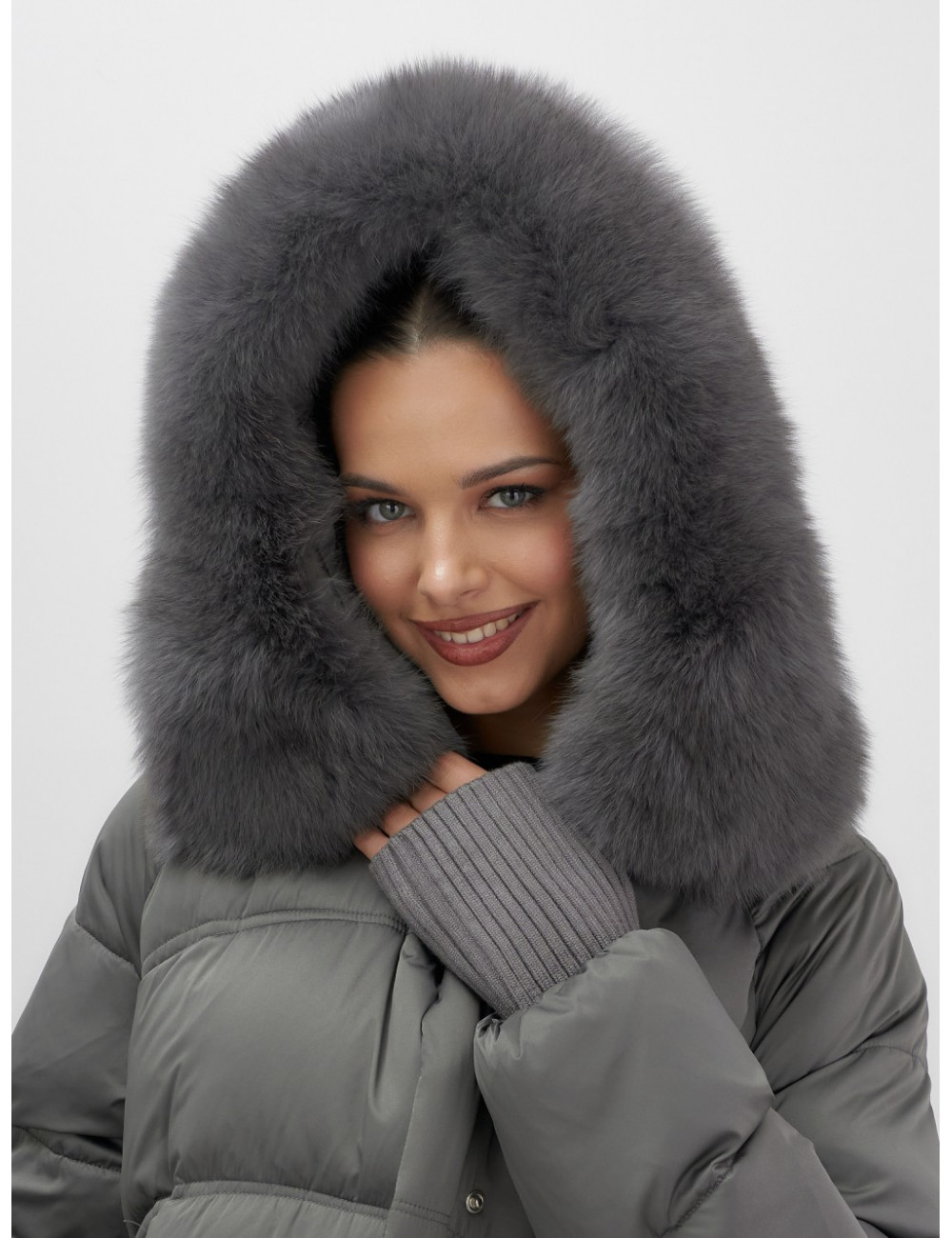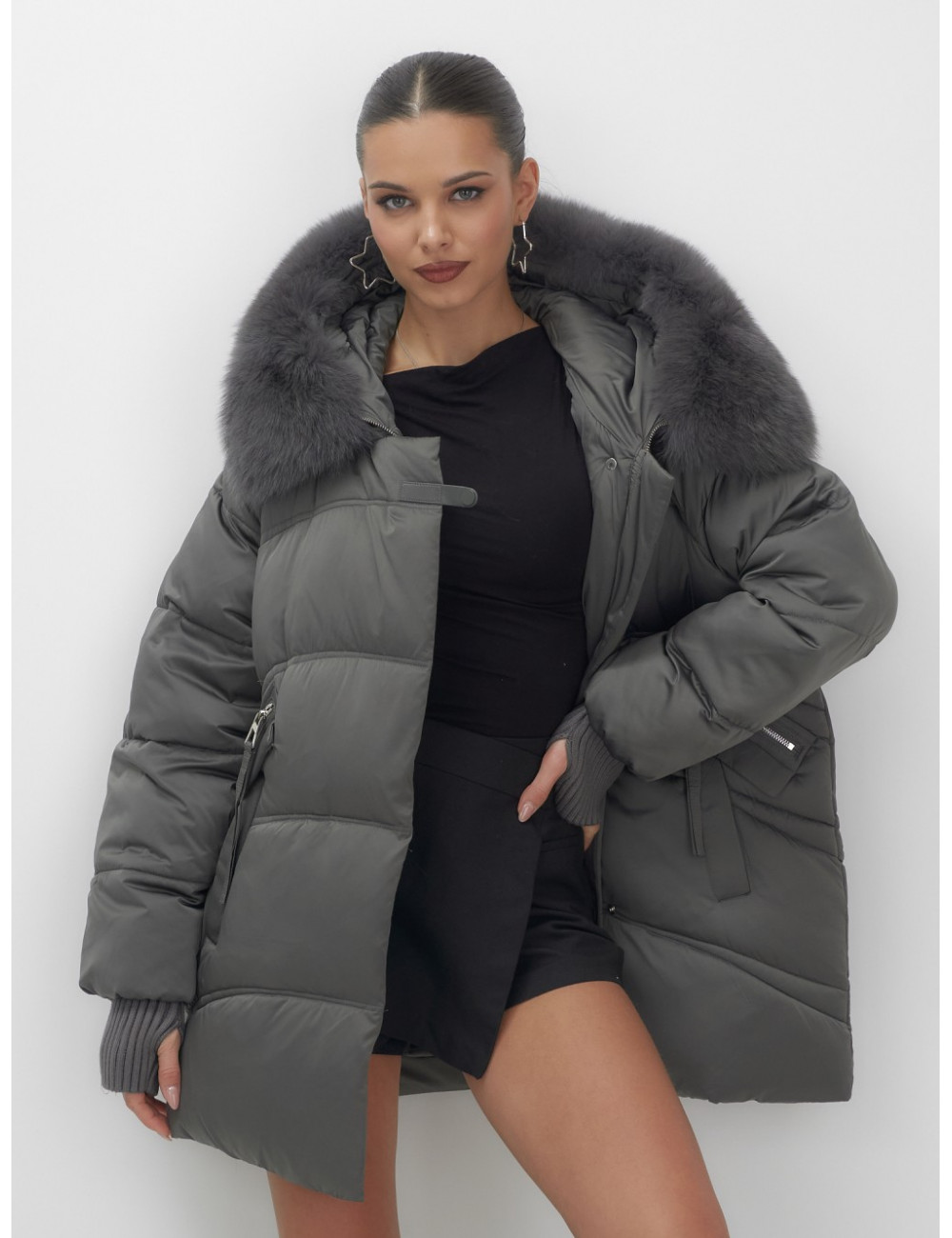 Пуховик прекрасно сочетается с джинсами, брюками и юбками. Вы можете создать как повседневный, так и более нарядный образ, добавив стильные аксессуары и подходящую обувь. Доставка по Москве и Московской области Женский зимний пуховик с мехом и капюшоном, тёмно-серый.