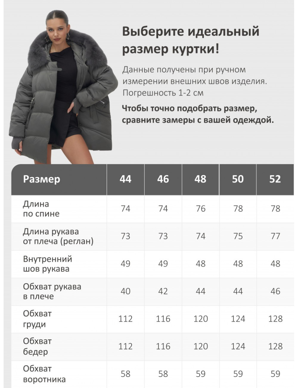 - Крой: свободный крой и длина до бедра создают идеальные пропорции для размеров 44–52. Профессиональный крой гарантирует безупречную посадку для роста 155–185 см.