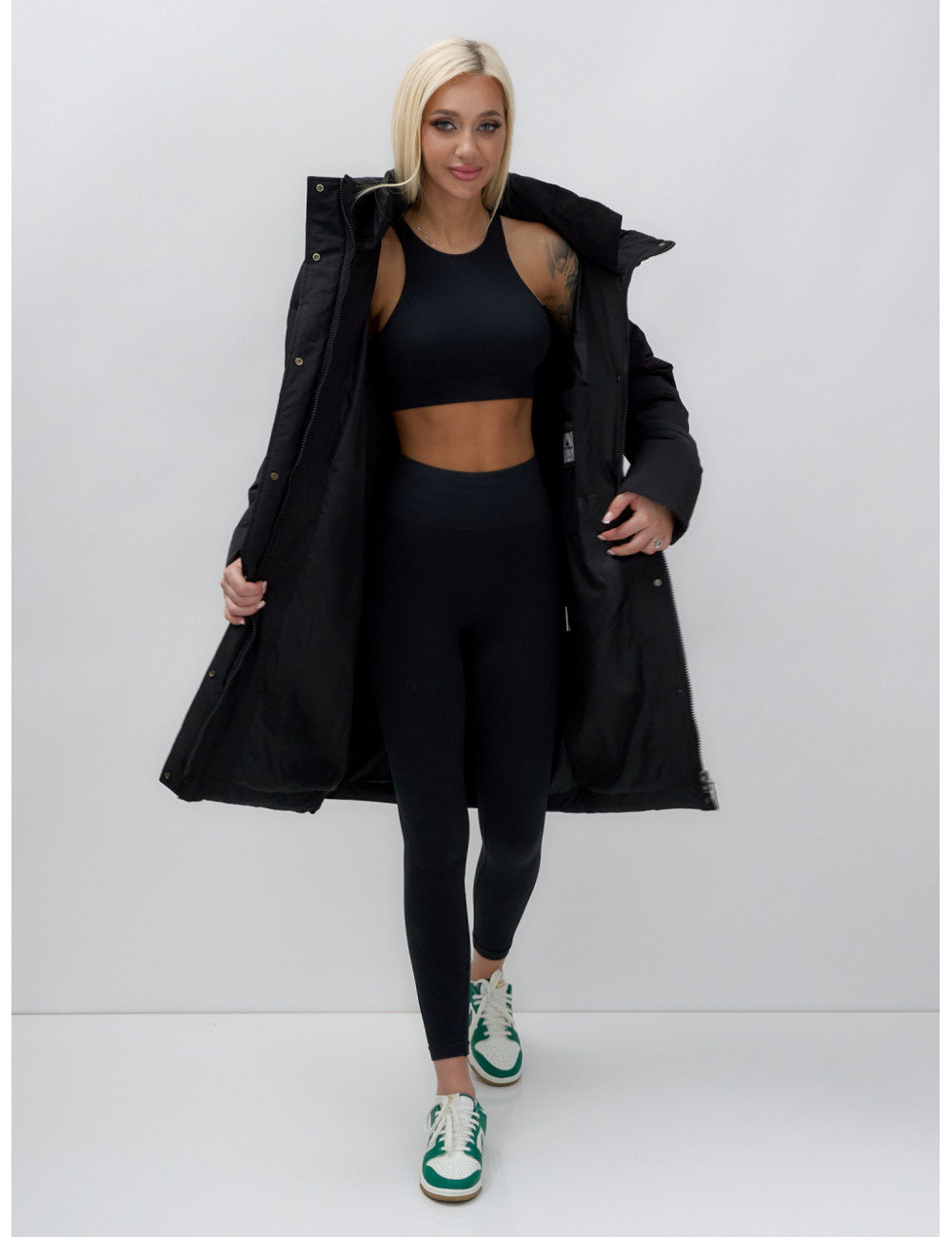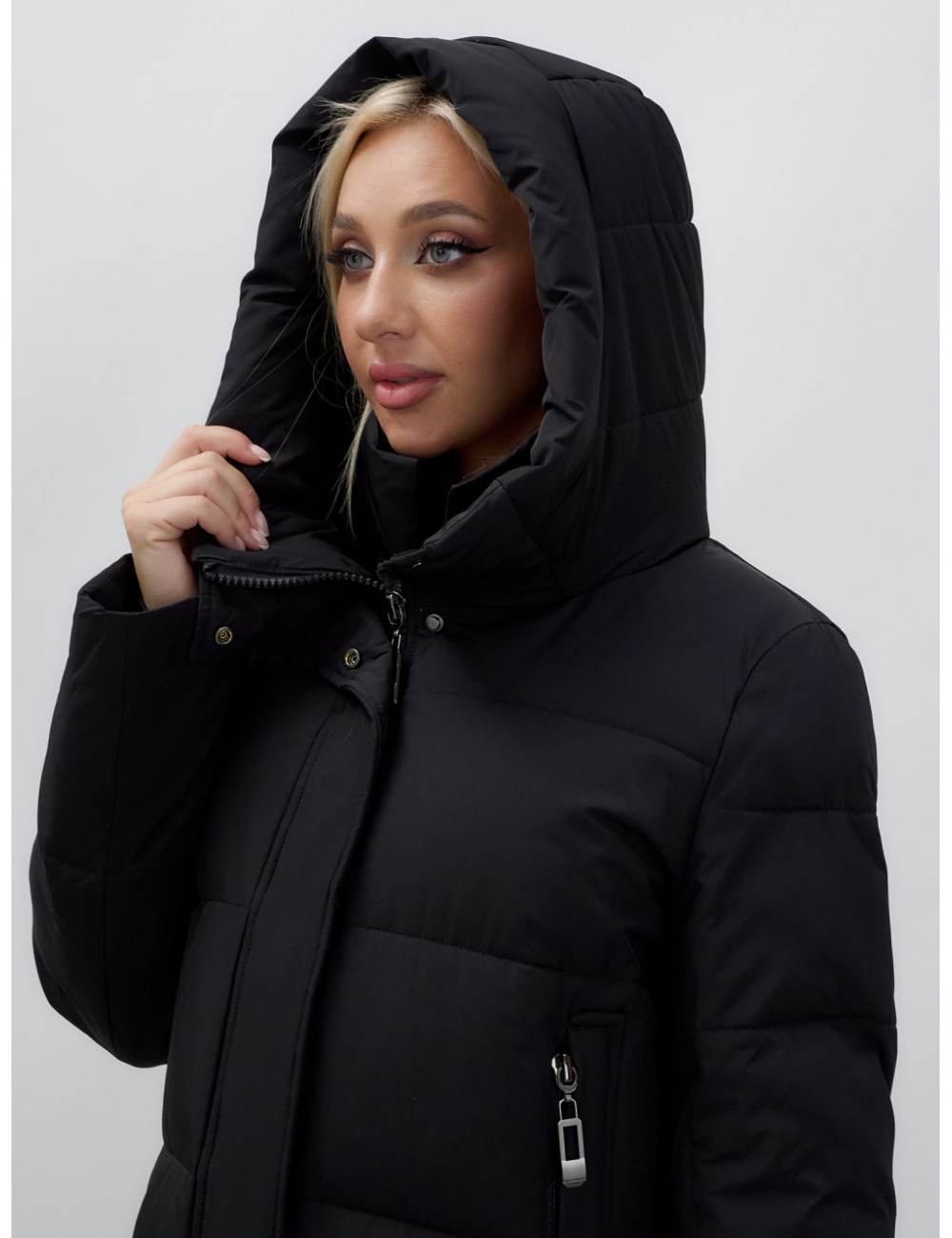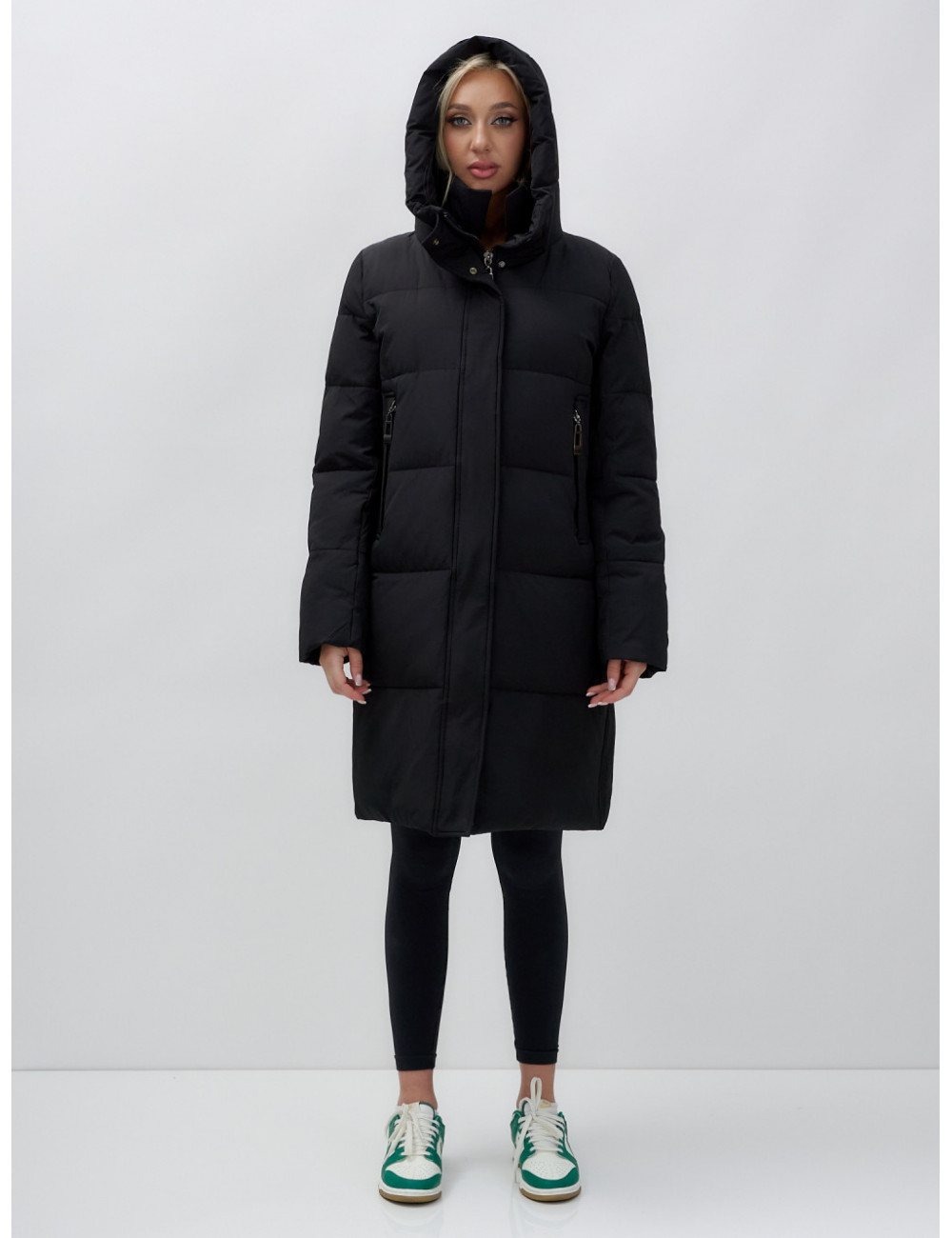 Этот пуховик станет отличным дополнением к вашему зимнему гардеробу. Он будет хорошо смотреться с джинсами, брюками или платьями. Вы можете создать стильный и комфортный образ, сочетая пуховик с тёплыми шапкой и перчатками. Доставка по Москве и Московской области Пуховик женский зимний удлинённый с капюшоном, чёрный.