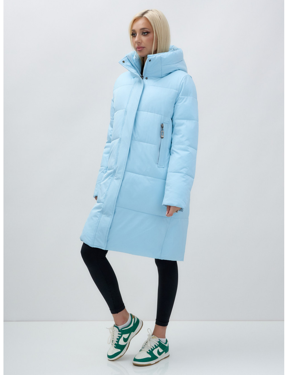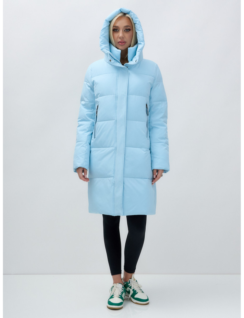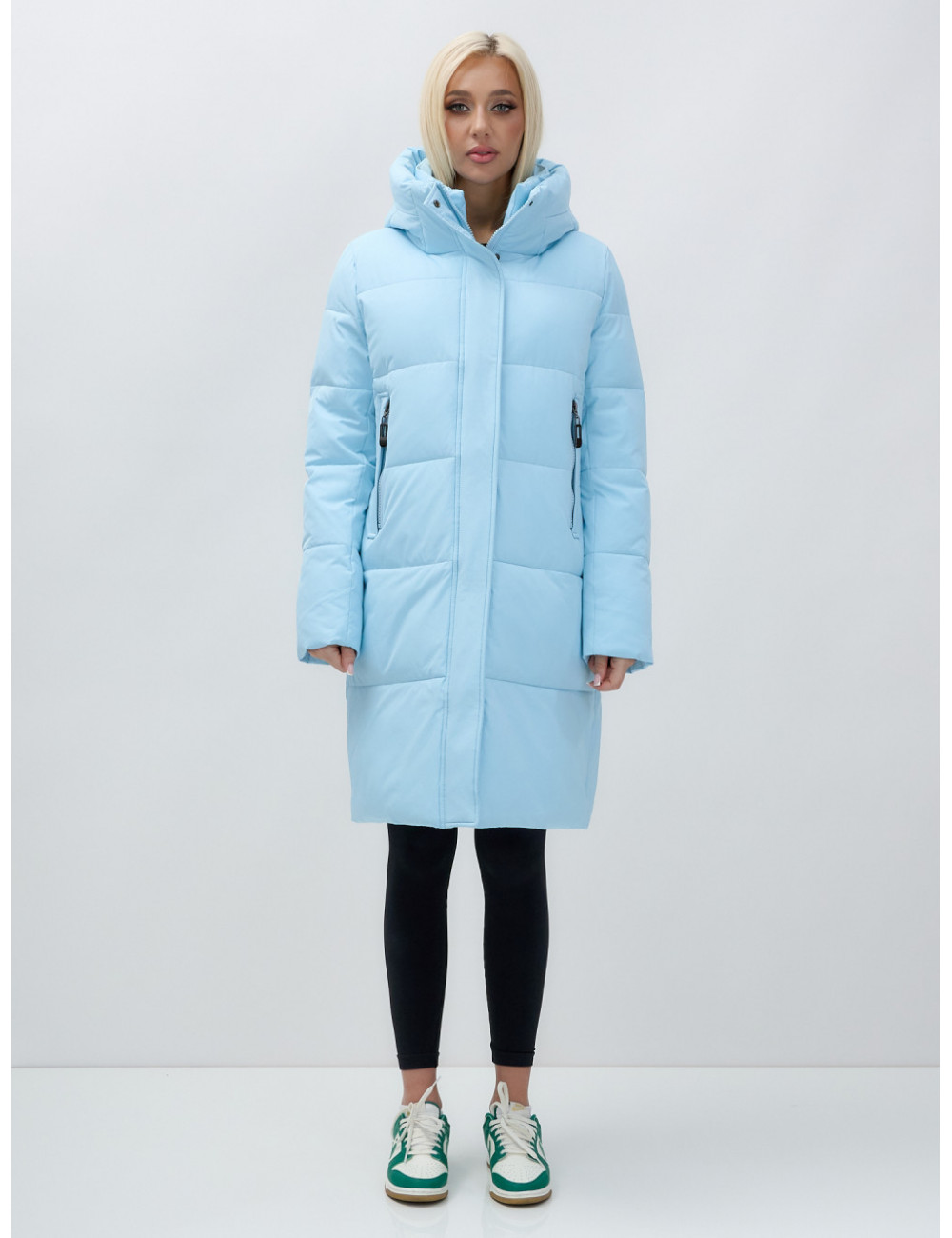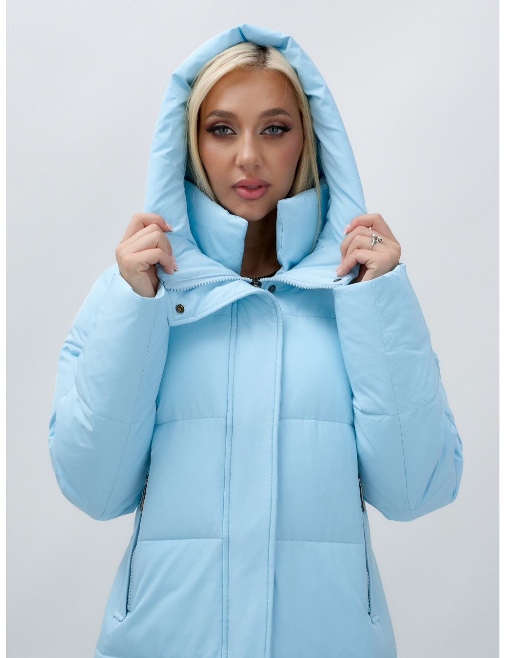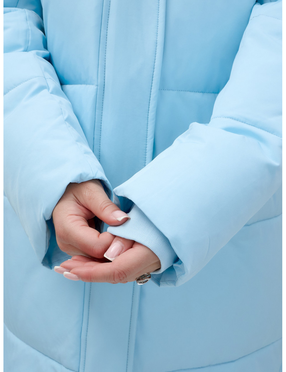 Пуховик прекрасно сочетается с джинсами, брюками и юбками. Вы можете создать множество стильных образов, дополнив пуховик шапкой и шарфом из аналогичного материала или тёплой обувью на удобной подошве. Доставка по Москве и Московской области Пуховик зимний женский с капюшоном удлинённый стёганый голубой