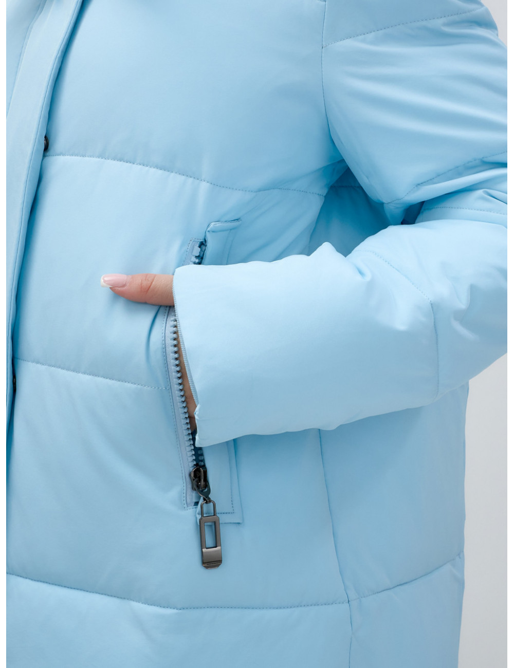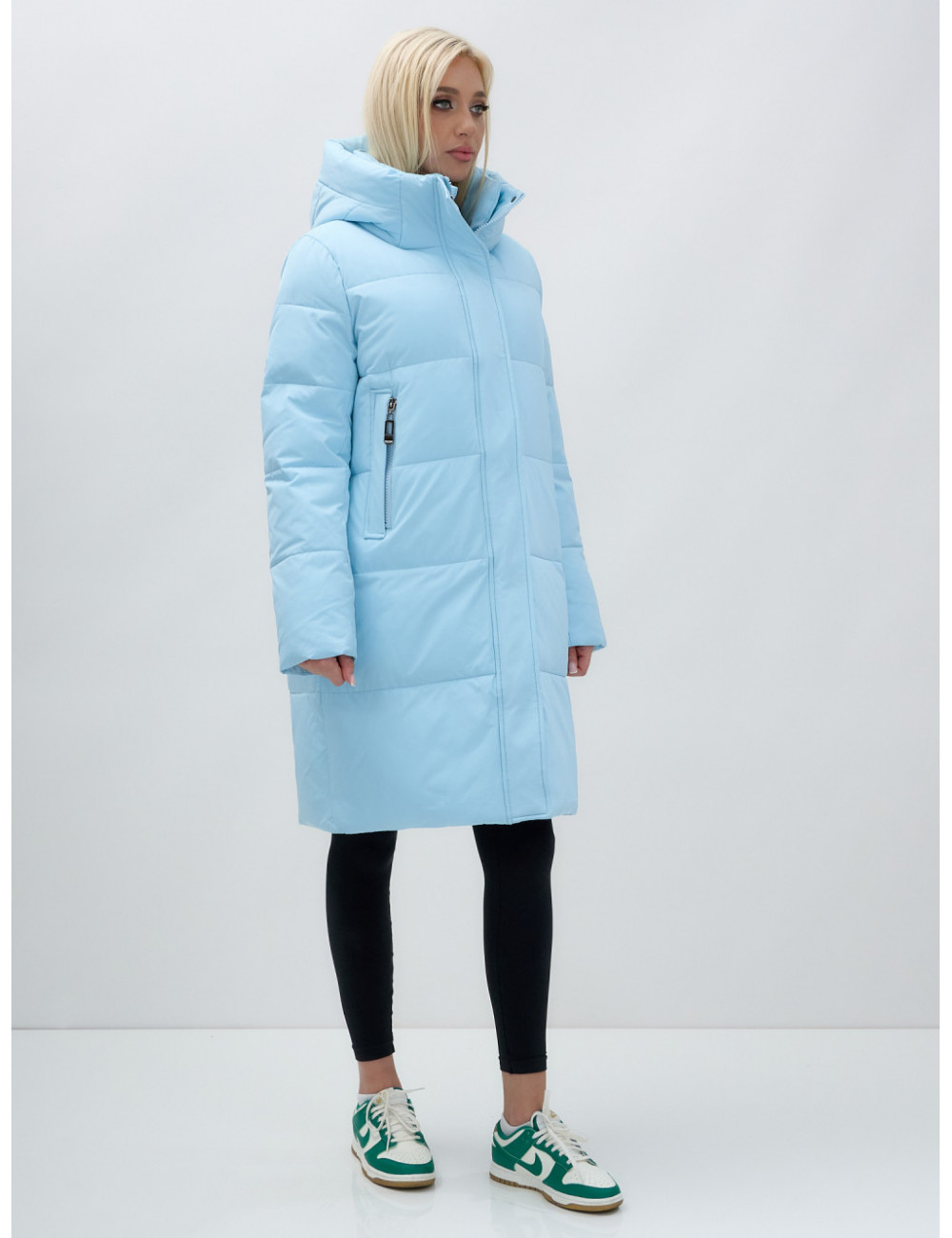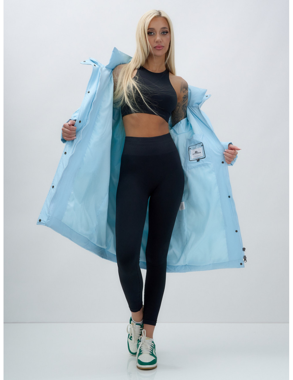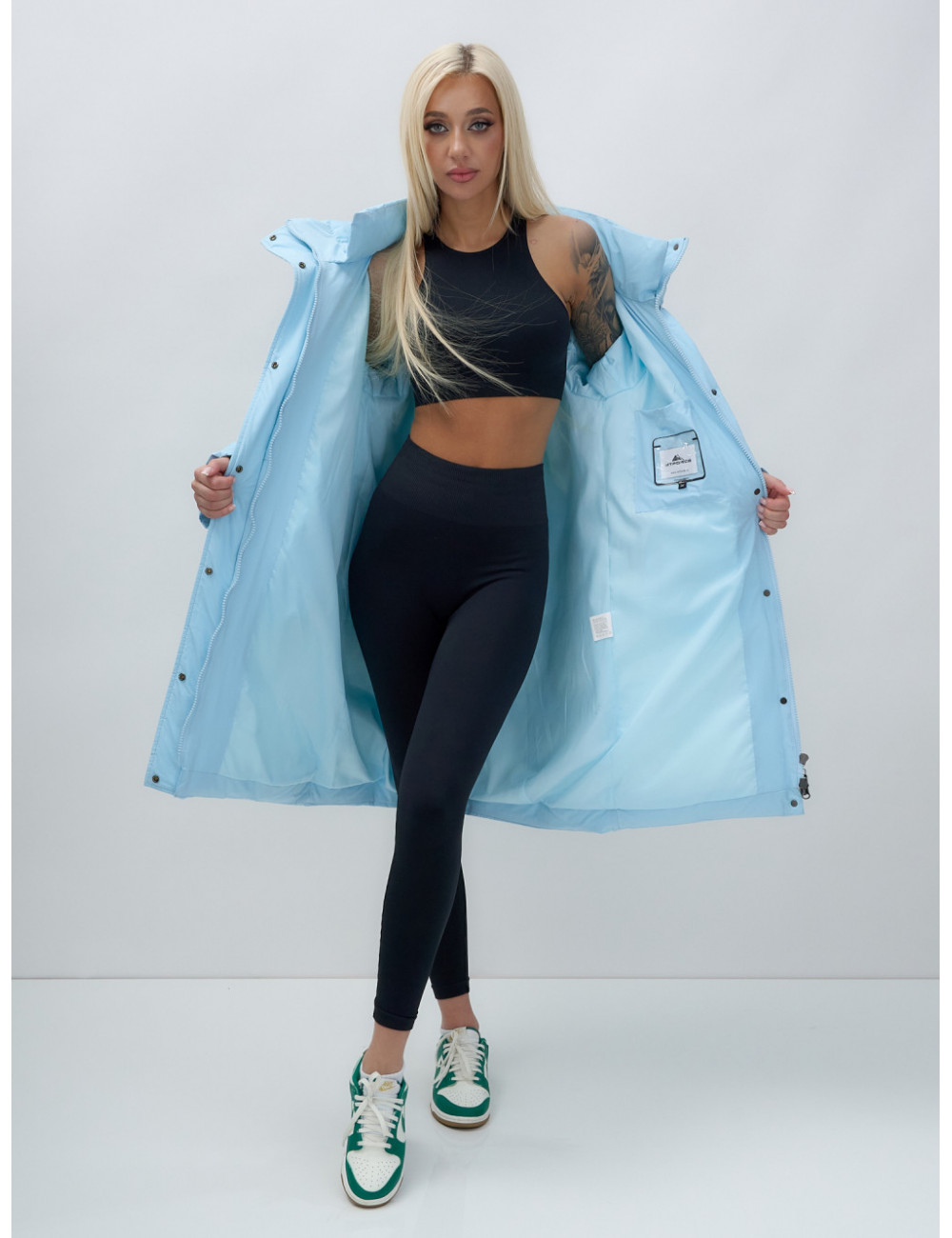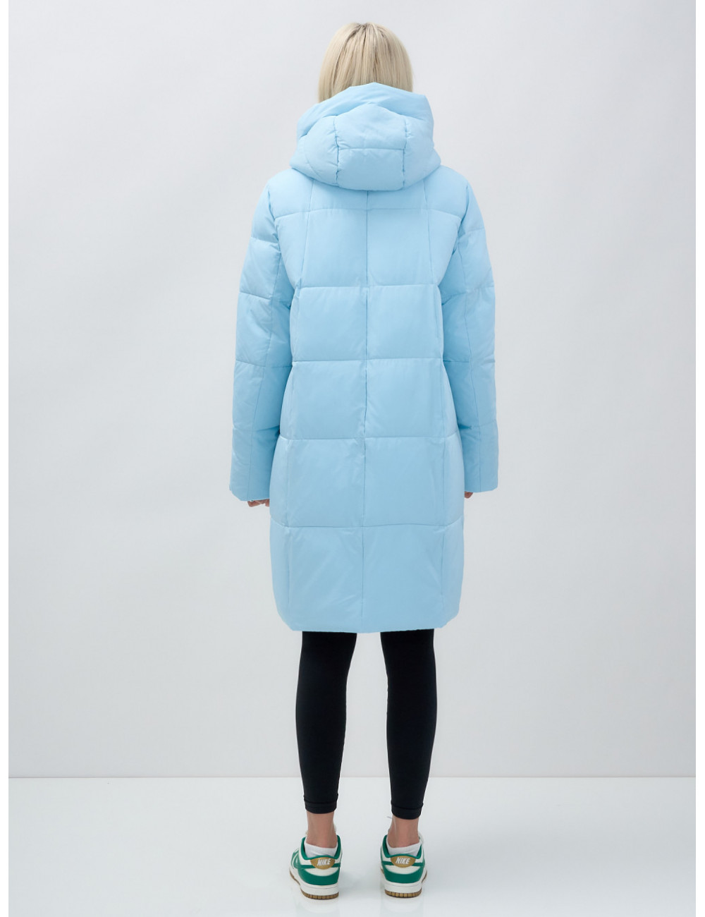 Пуховик прекрасно сочетается с джинсами, брюками и юбками. Вы можете создать множество стильных образов, дополнив пуховик шапкой и шарфом из аналогичного материала или тёплой обувью на удобной подошве. Доставка по Москве и Московской области Пуховик зимний женский с капюшоном удлинённый стёганый голубой