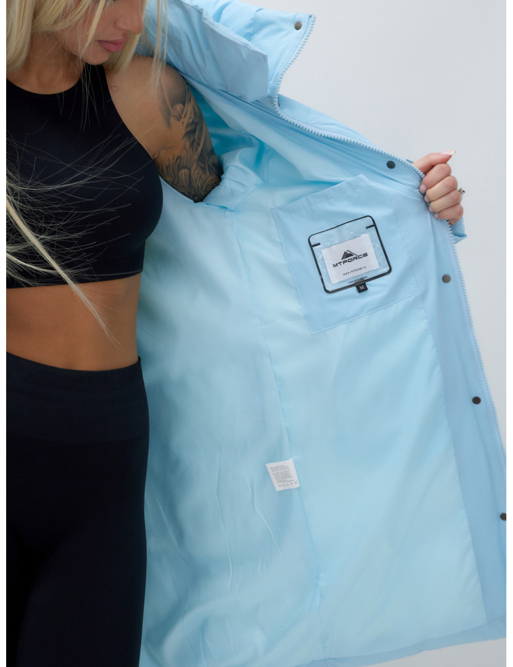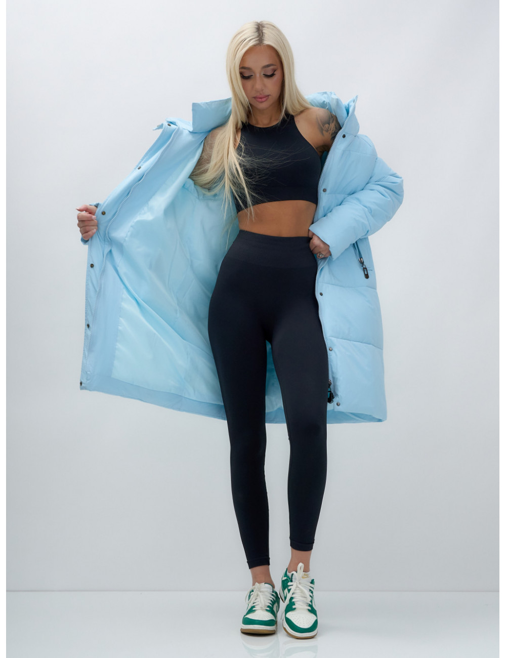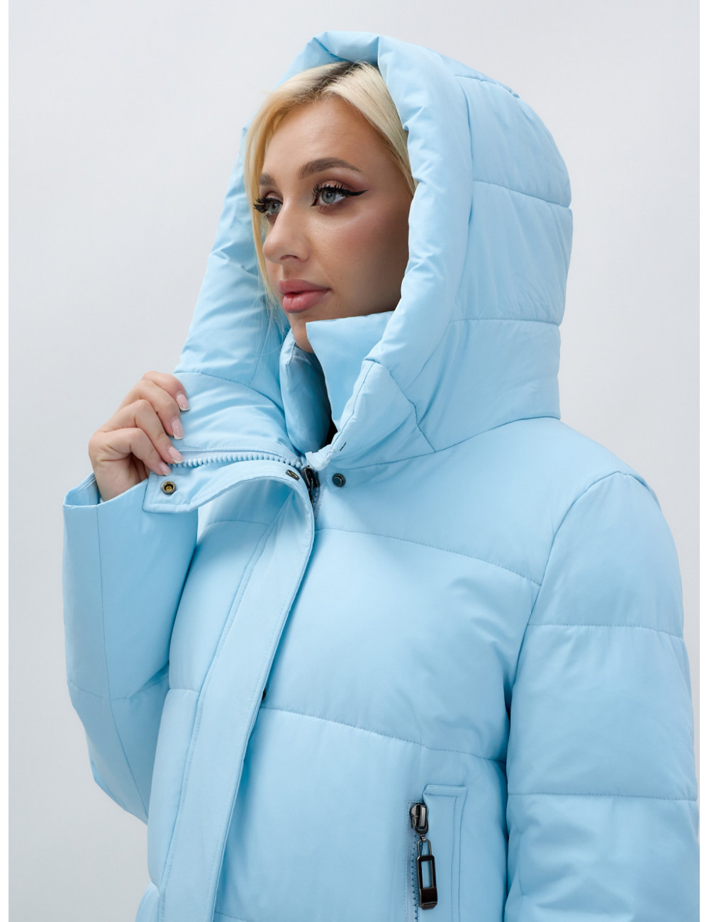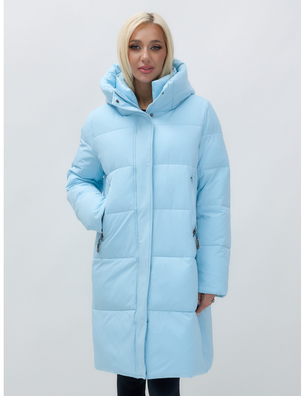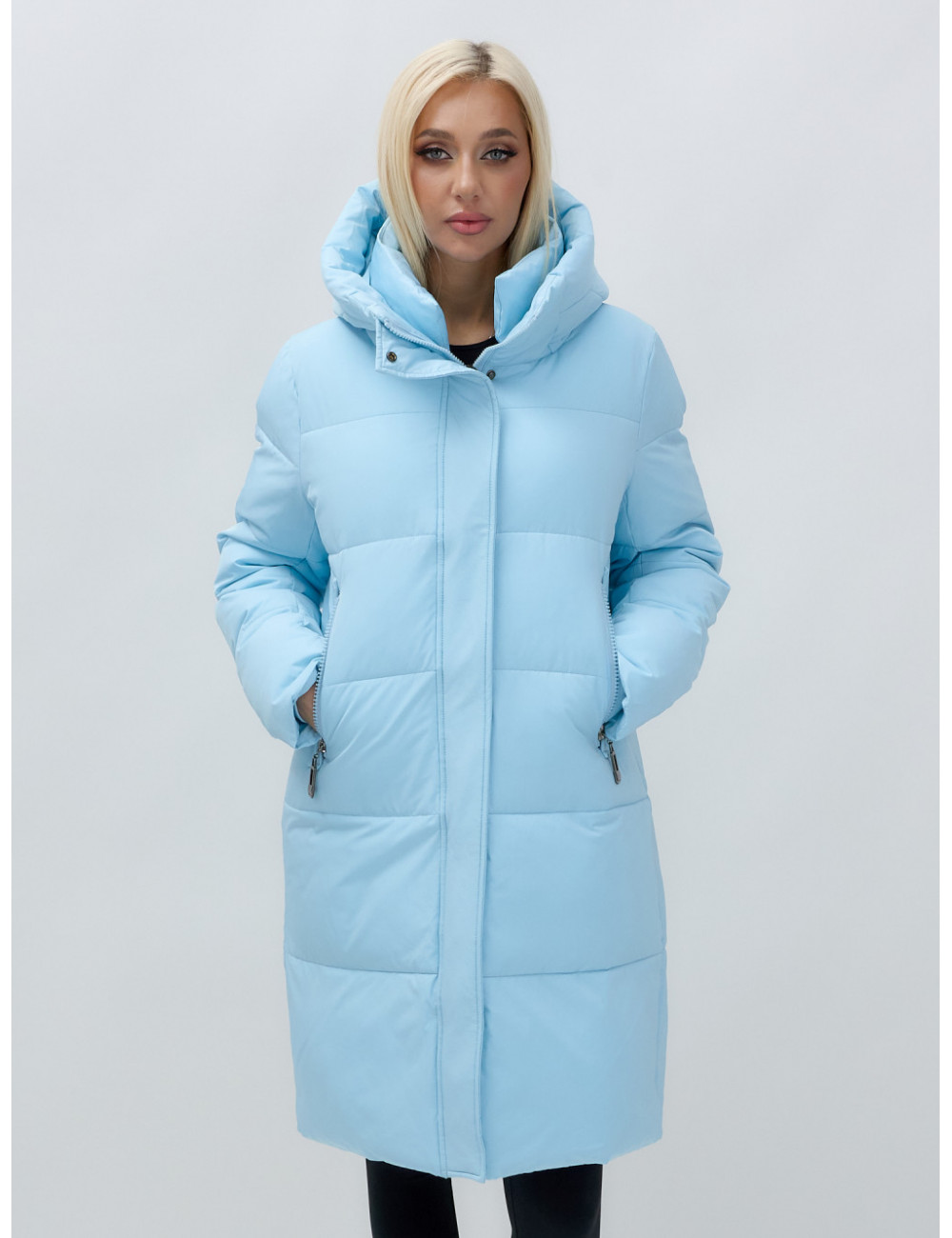 Пуховик прекрасно сочетается с джинсами, брюками и юбками. Вы можете создать множество стильных образов, дополнив пуховик шапкой и шарфом из аналогичного материала или тёплой обувью на удобной подошве. Доставка по Москве и Московской области Пуховик зимний женский с капюшоном удлинённый стёганый голубой