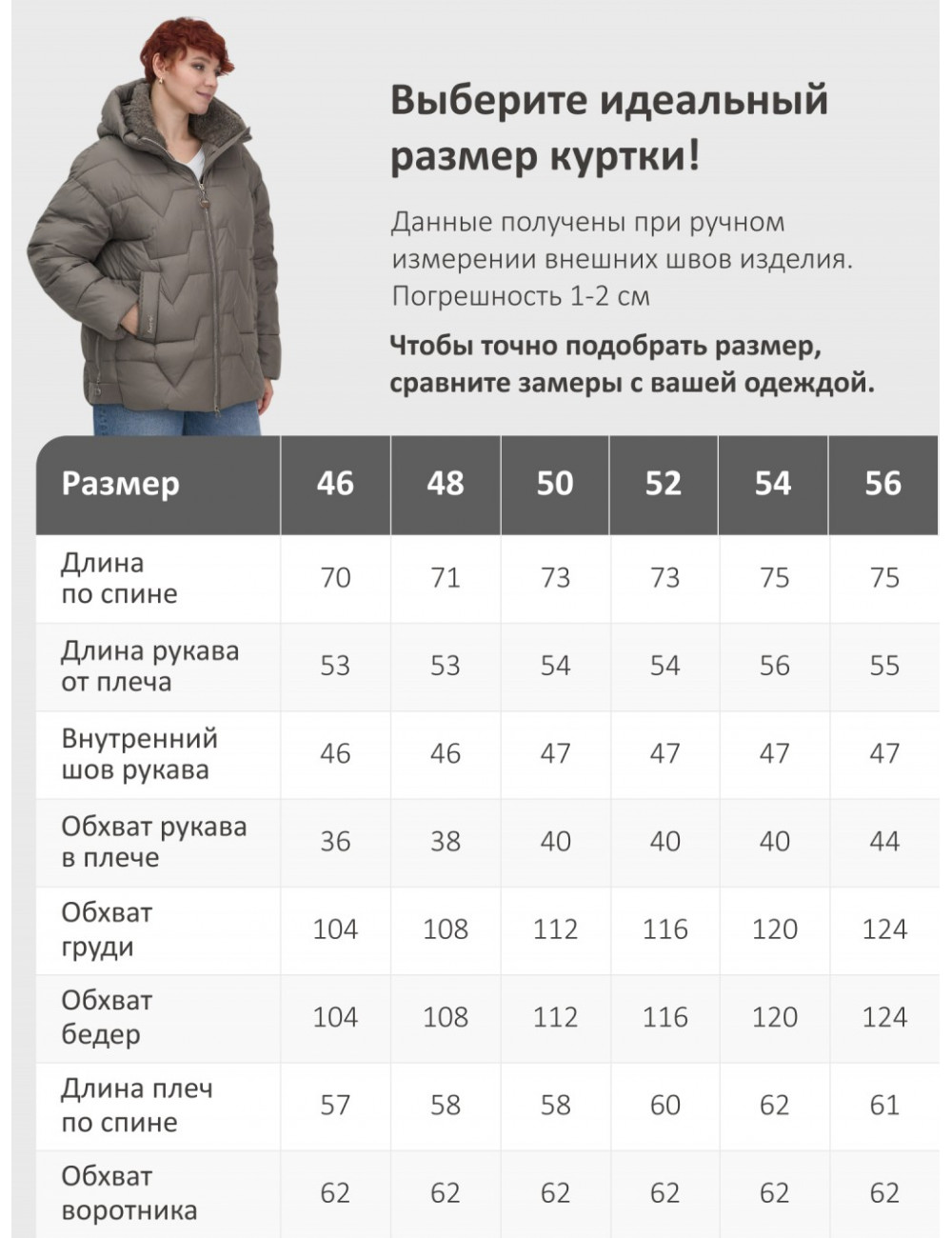 Откройте для себя новый уровень зимнего комфорта с нашим эксклюзивным пуховиком! Создан специально для женщин, которые ценят стиль и практичность. Размерный ряд от 46 до 56 и диапазон роста 155–185 см позволяет каждой найти свою идеальную модель.