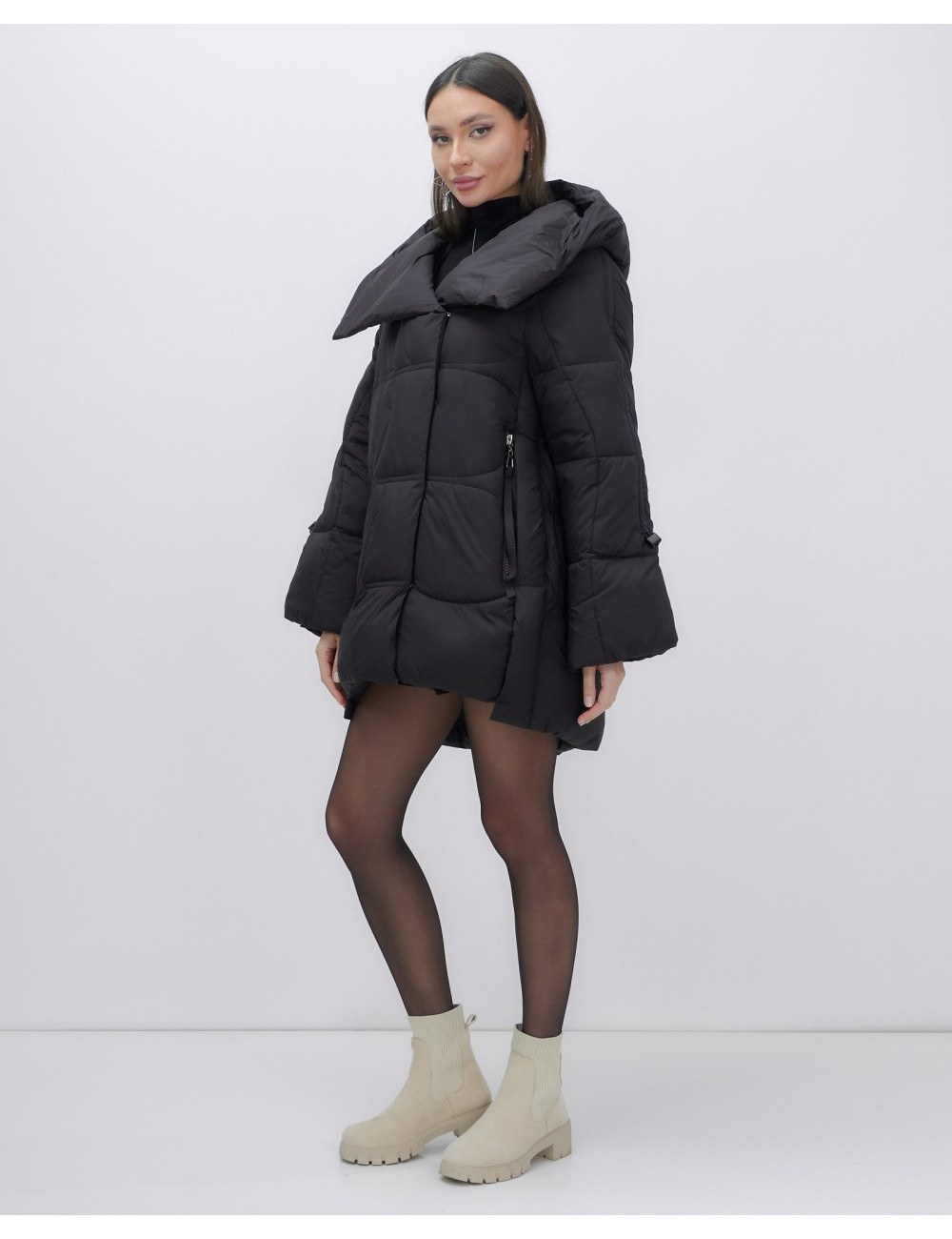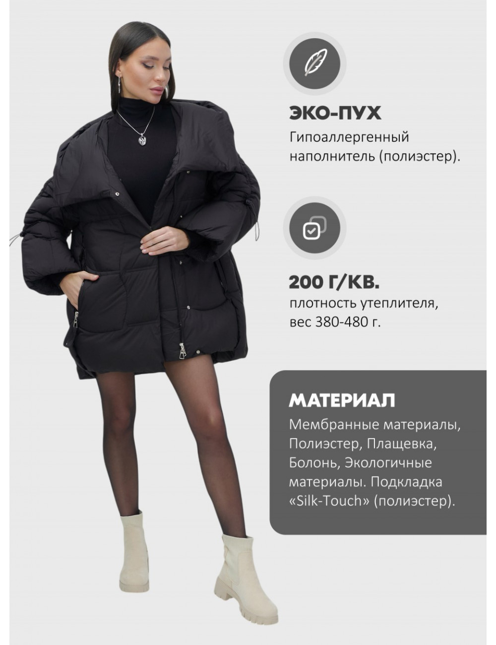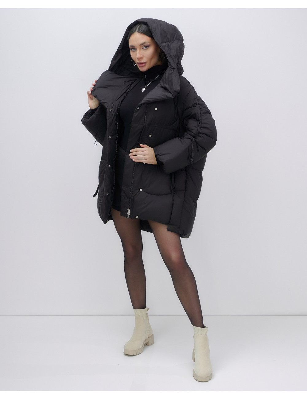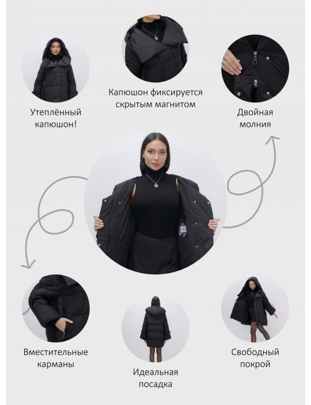 Пуховик отлично сочетается с джинсами, брюками, юбками и платьями. Добавьте к нему шапку и перчатки для создания стильного зимнего образа. Доставка по Москве и Московской области Женский модный чёрный пуховик с большим капюшоном.