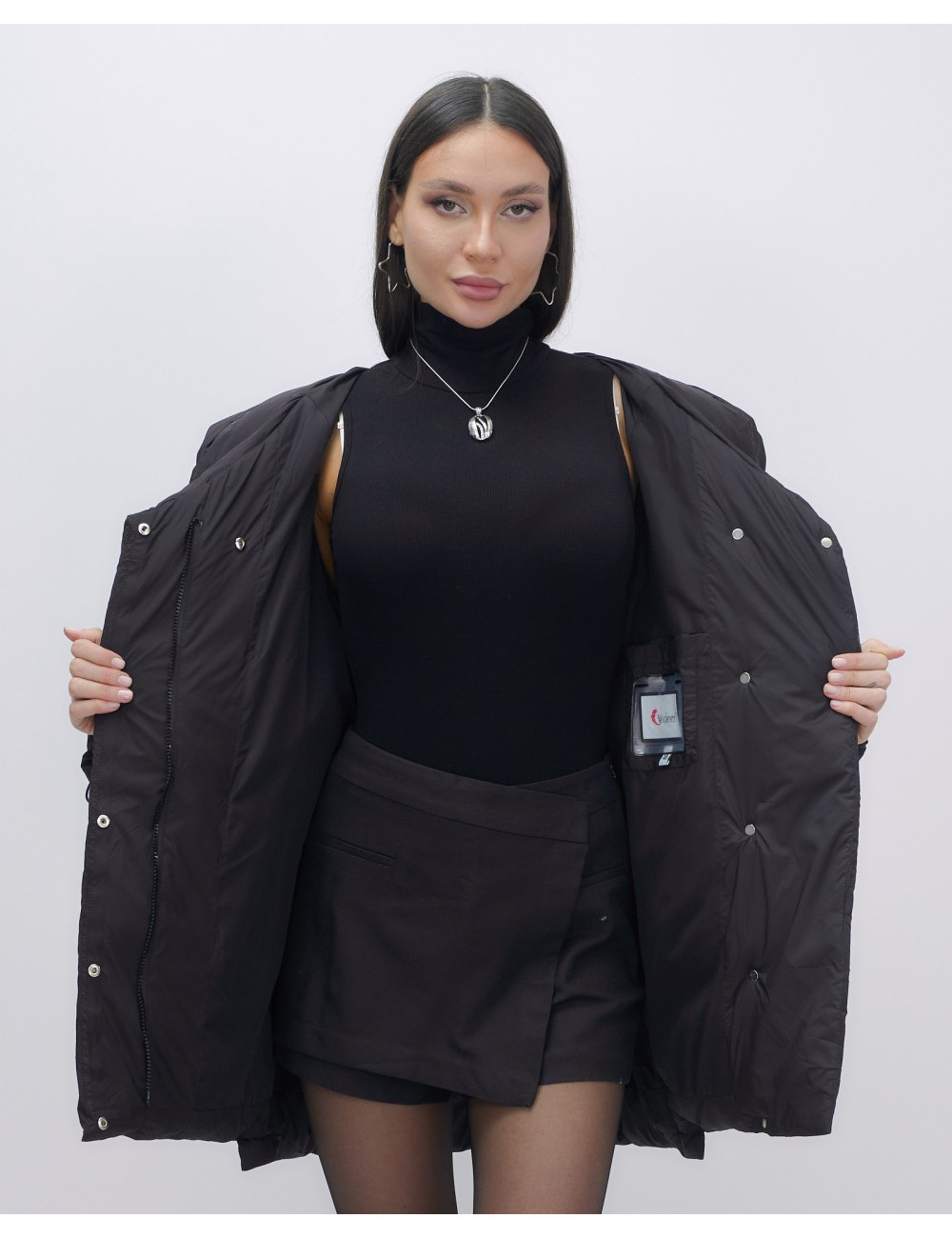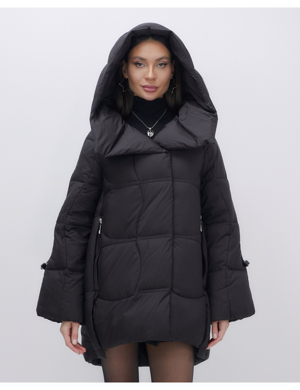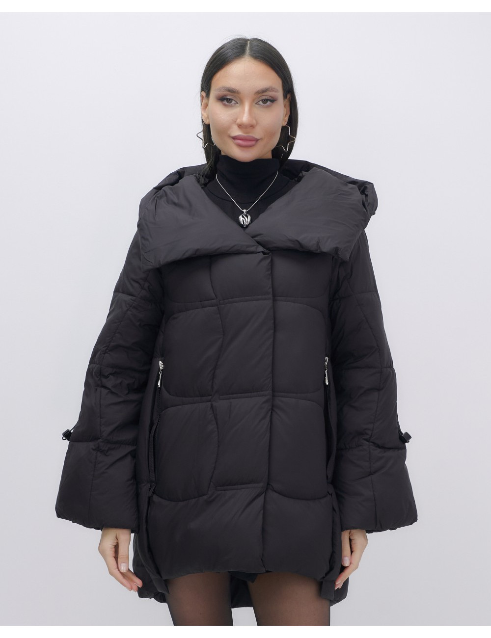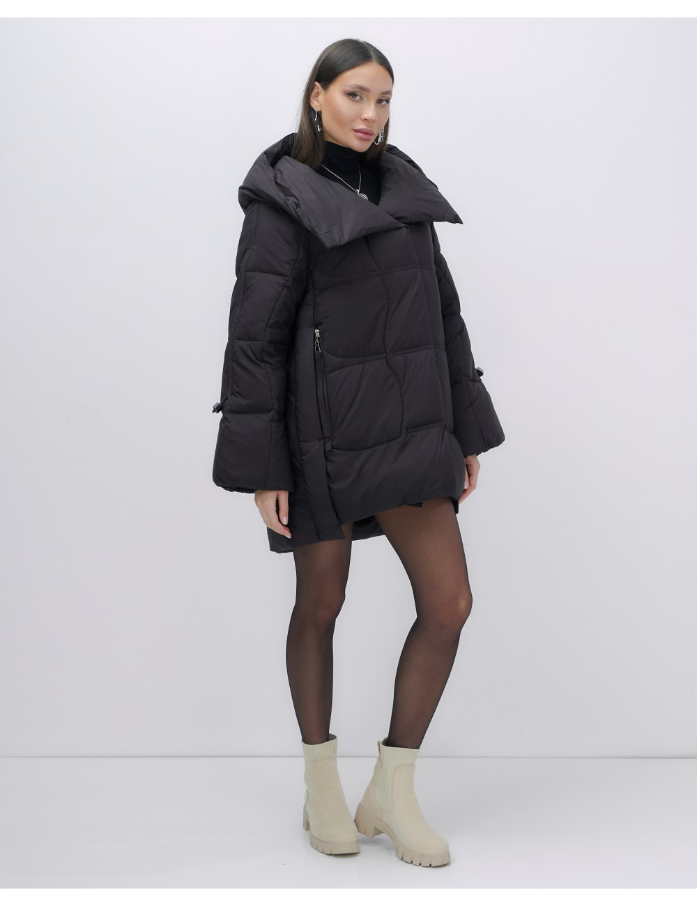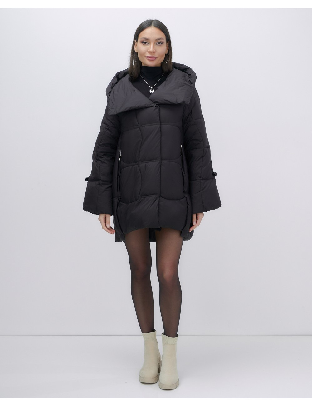 Пуховик отлично сочетается с джинсами, брюками, юбками и платьями. Добавьте к нему шапку и перчатки для создания стильного зимнего образа. Доставка по Москве и Московской области Женский модный чёрный пуховик с большим капюшоном.