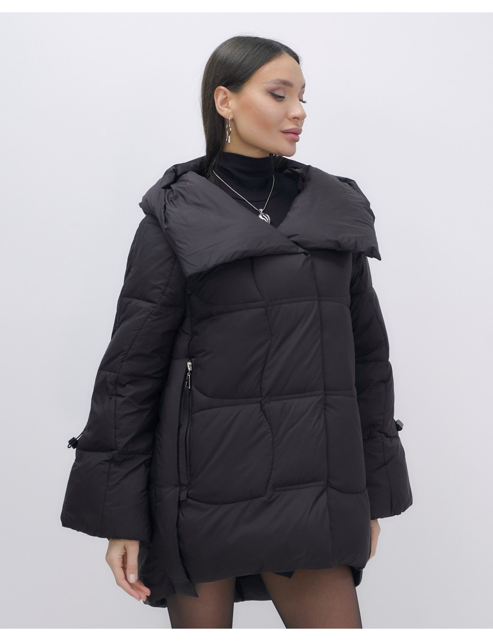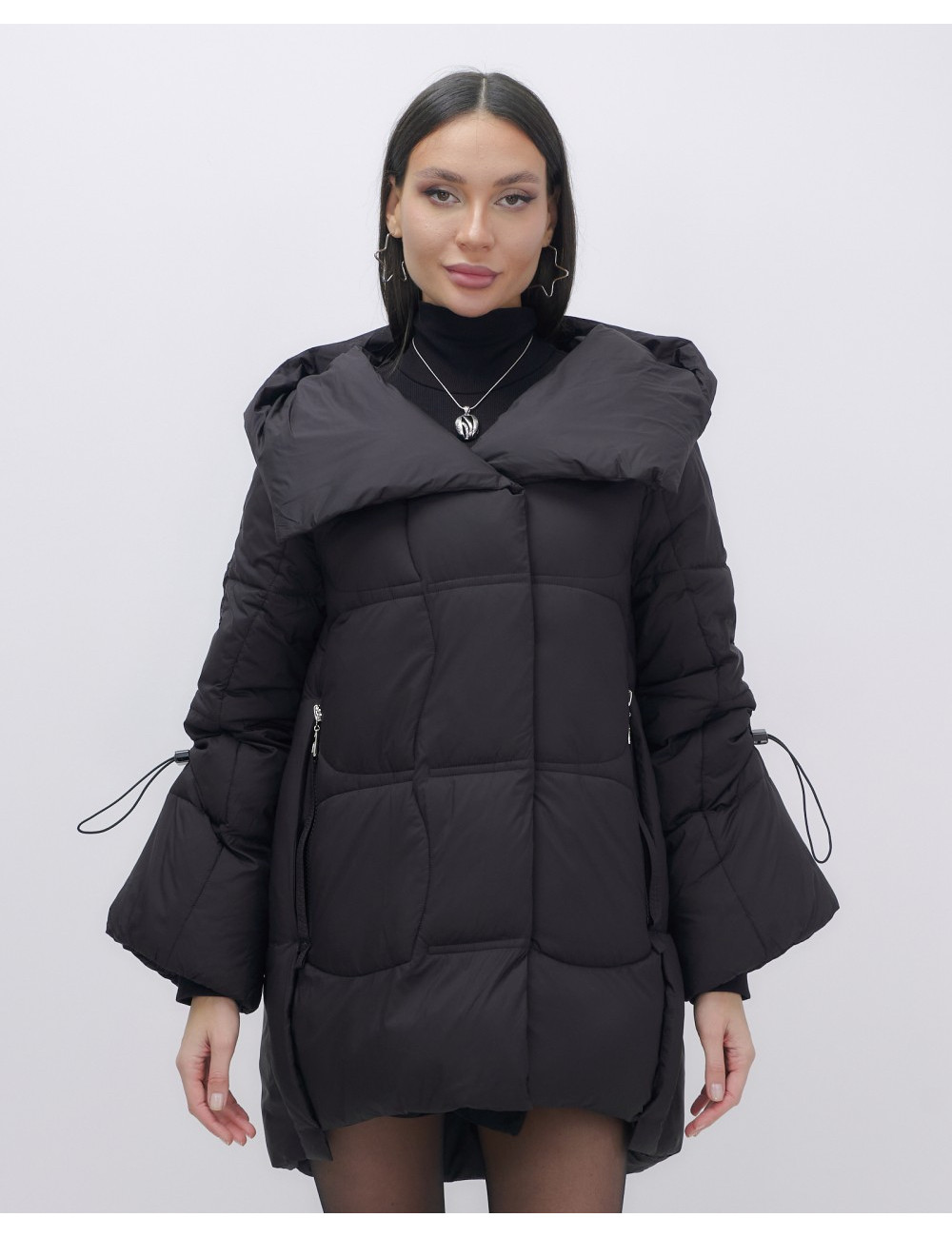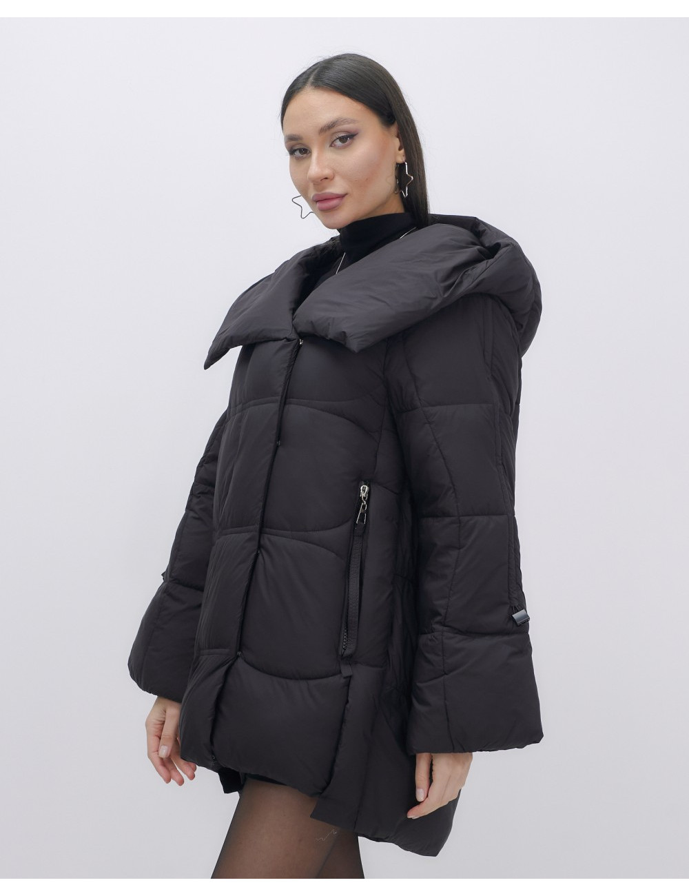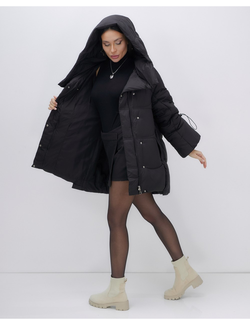 Пуховик отлично сочетается с джинсами, брюками, юбками и платьями. Добавьте к нему шапку и перчатки для создания стильного зимнего образа. Доставка по Москве и Московской области Женский модный чёрный пуховик с большим капюшоном.