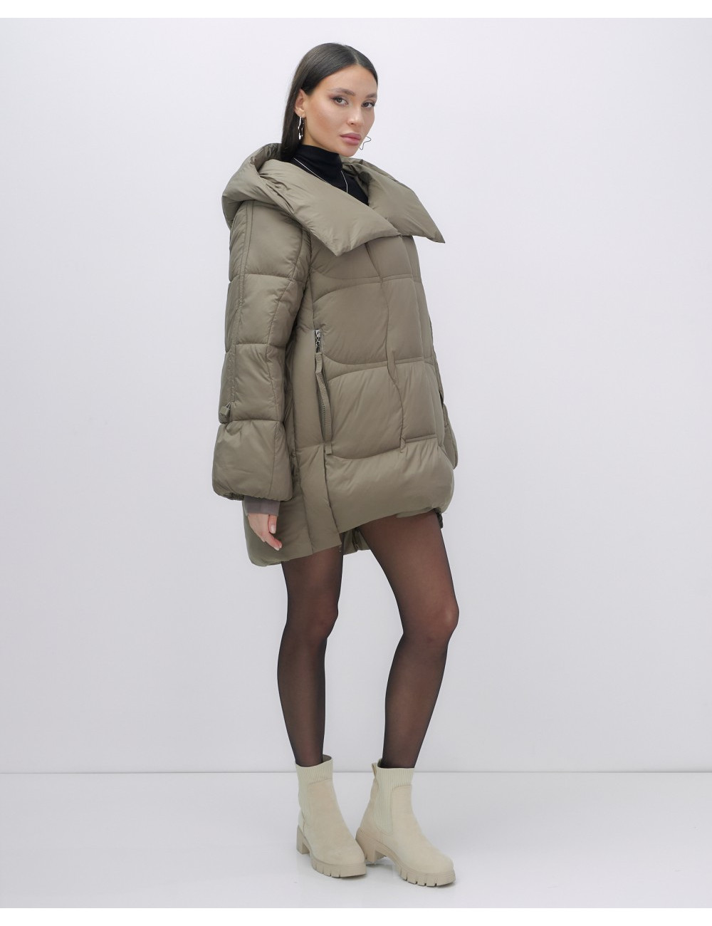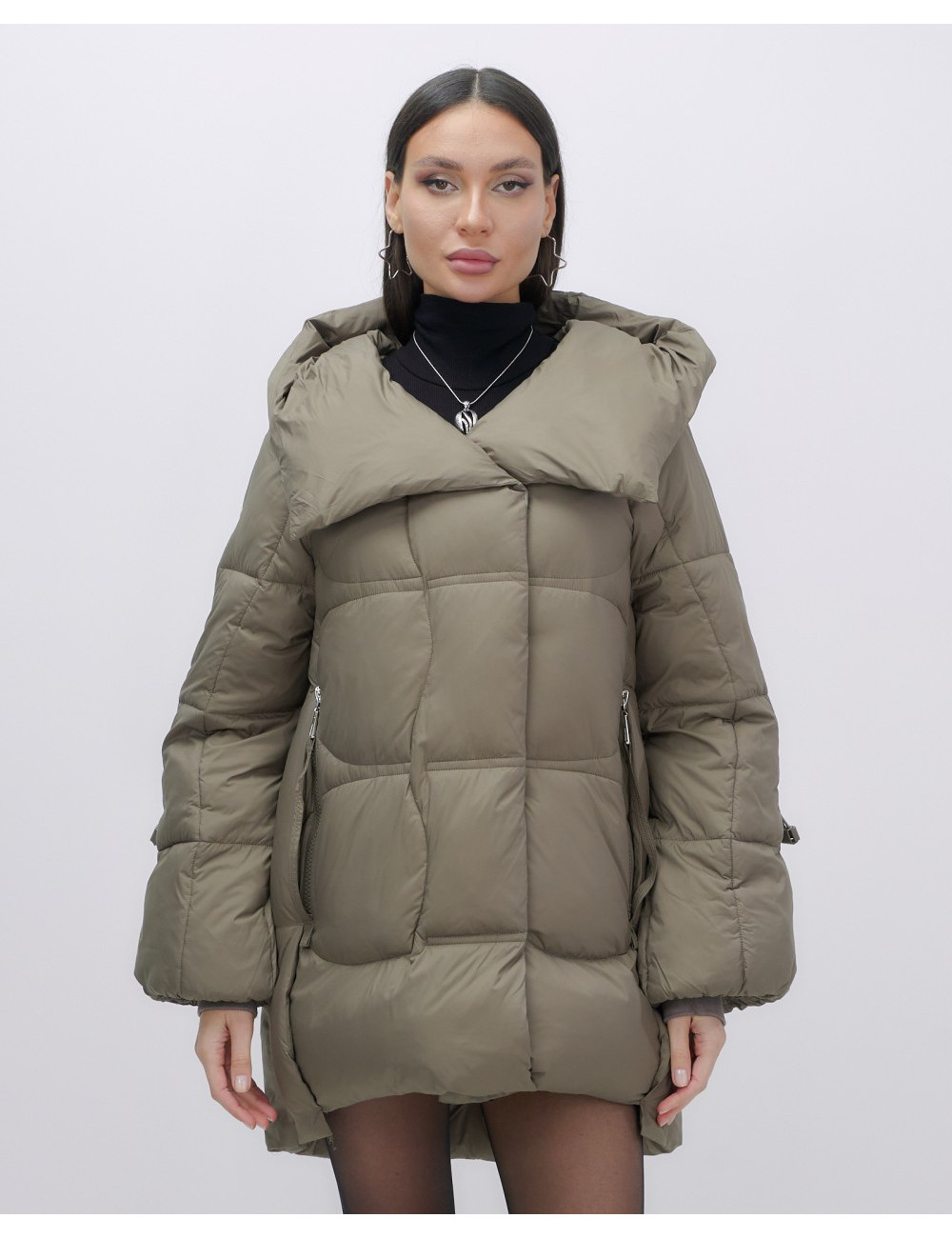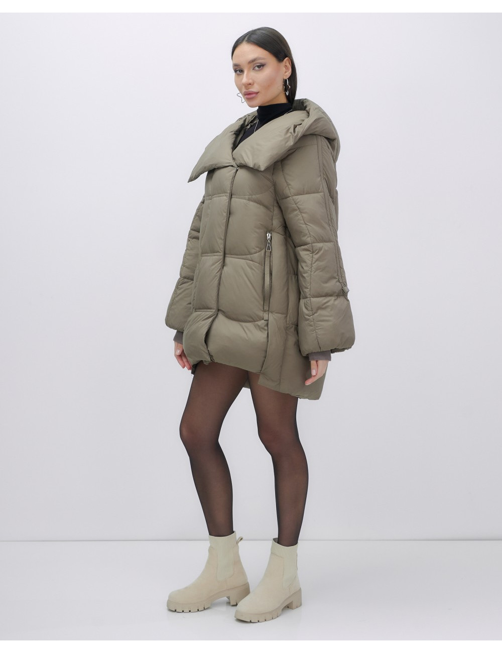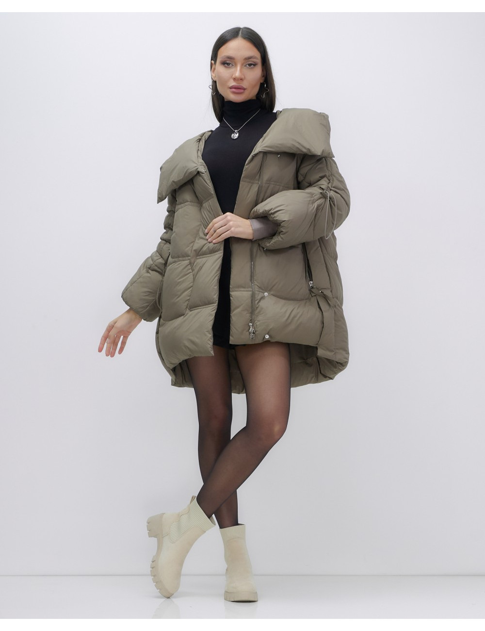 Капюшон и молния придают пуховику стильный вид.